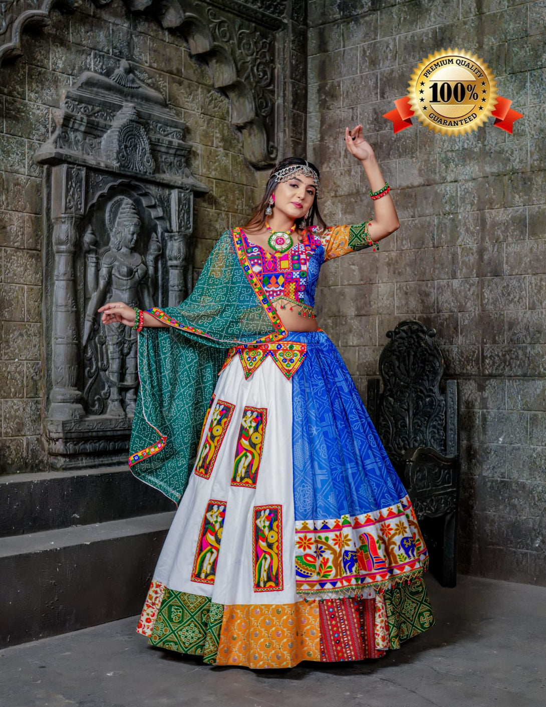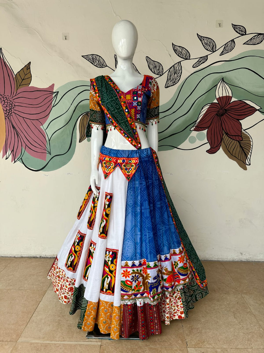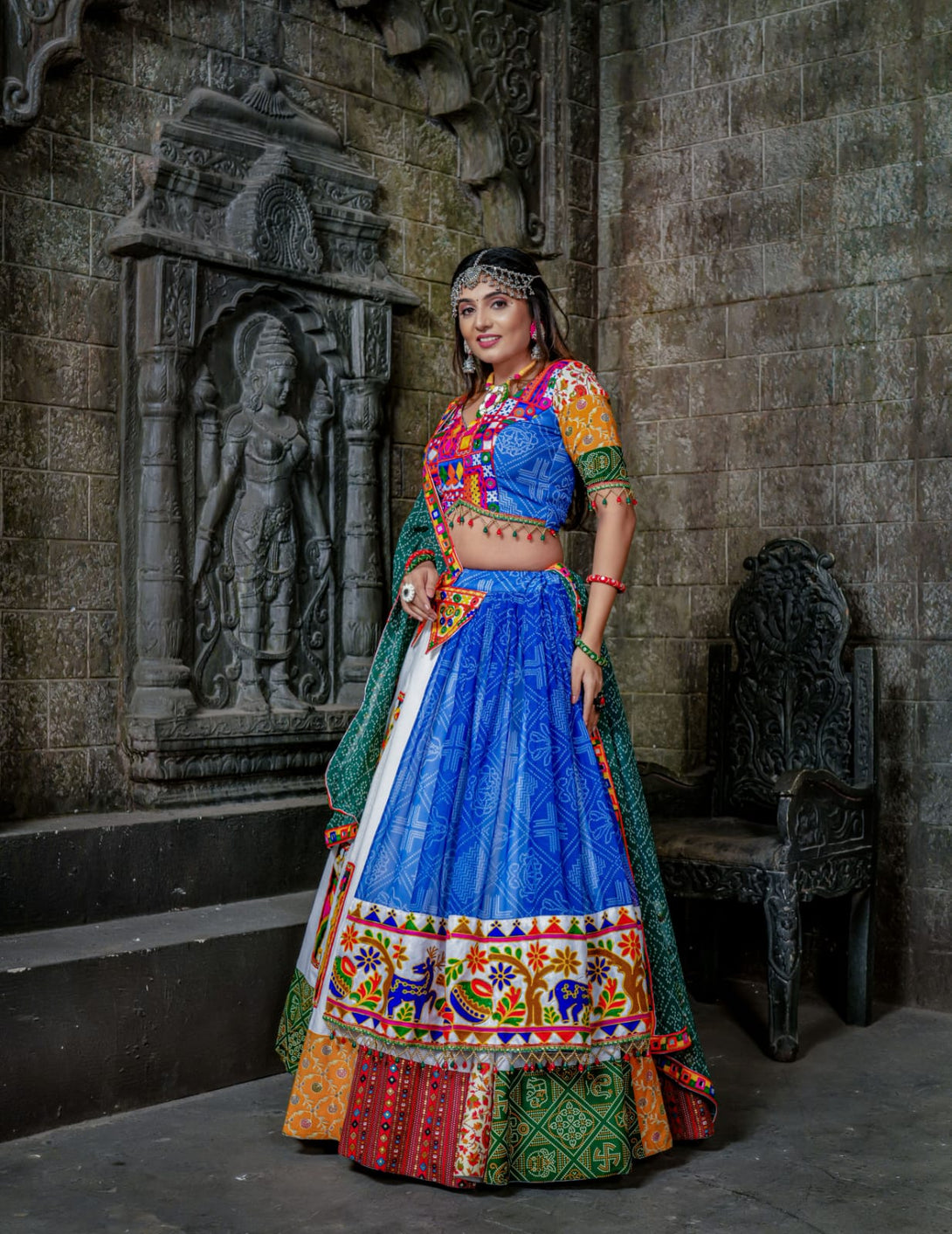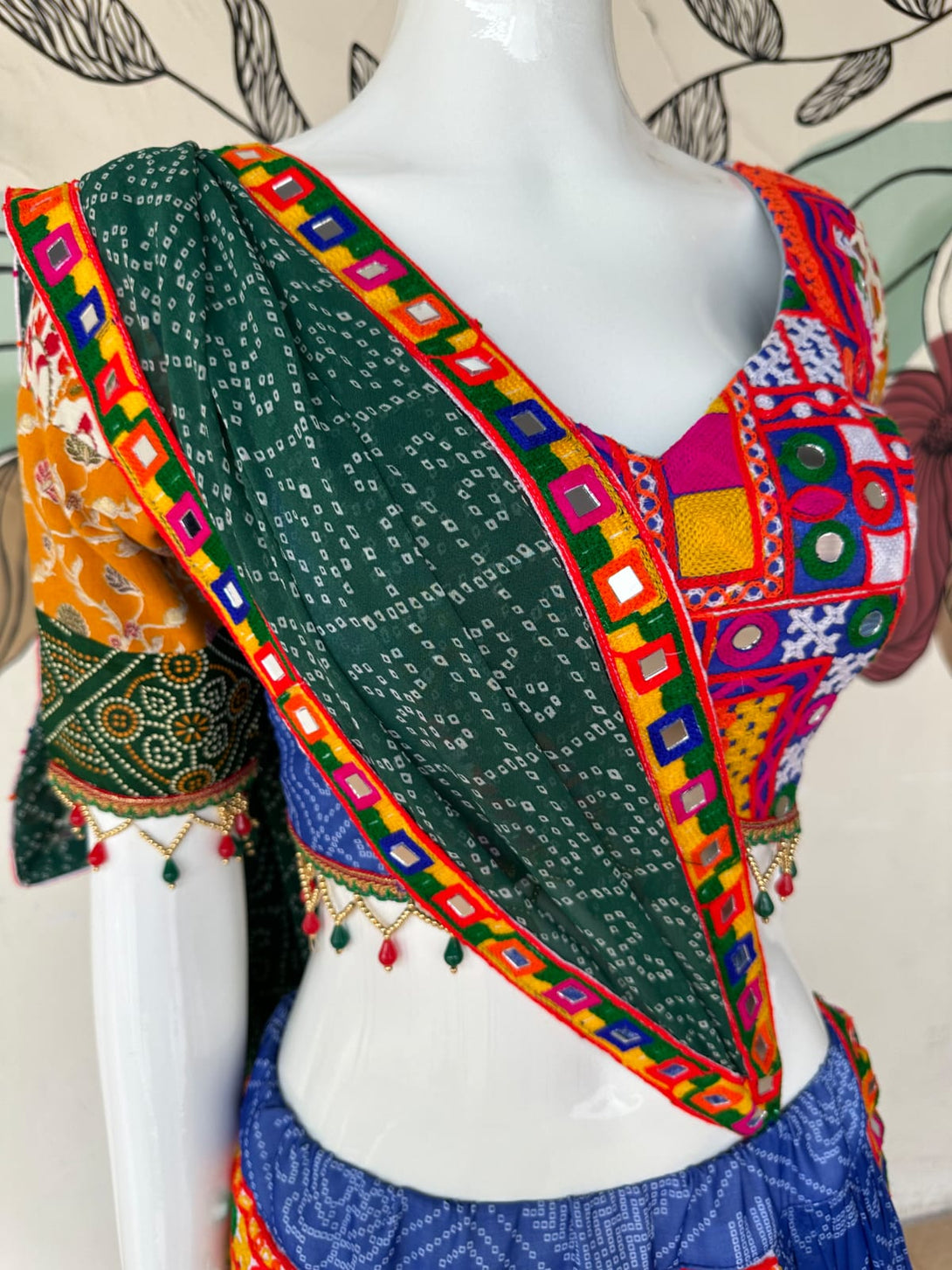 Heavy Georgette & Cotton Blue Bandhani Navratri Lehenga Choli