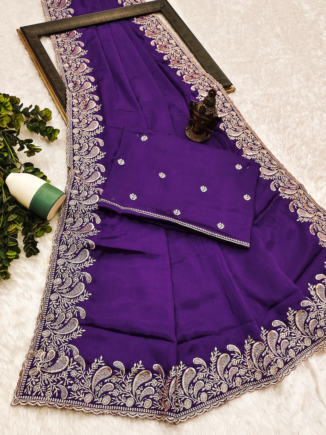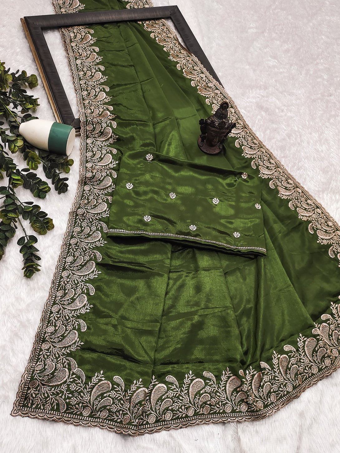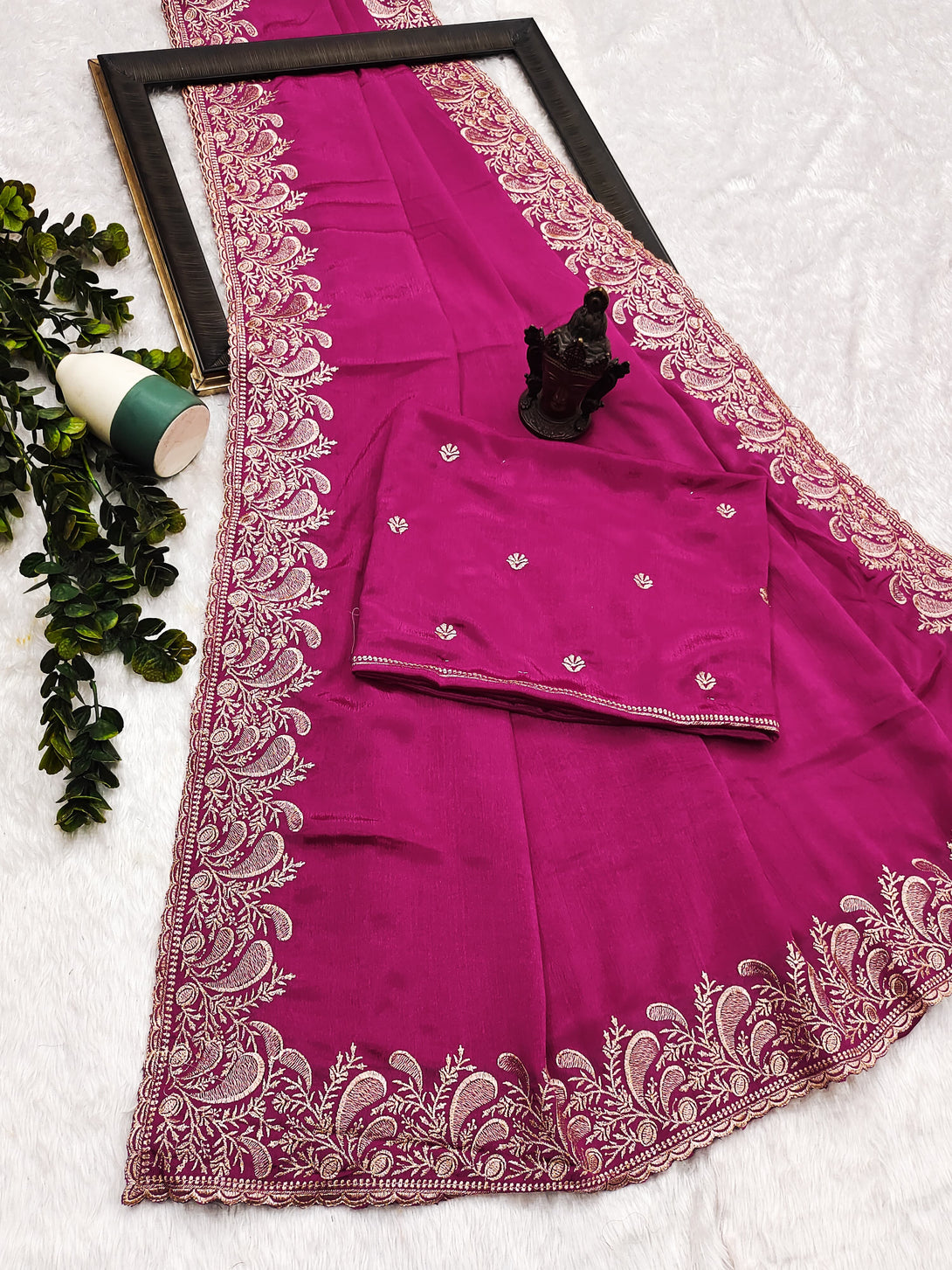 SATIN-SOFT, PURE CHINON SILK FABRIC SAREE