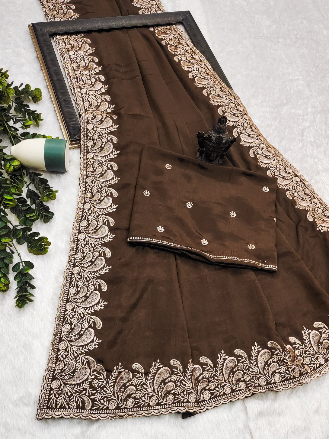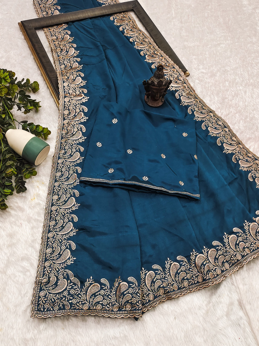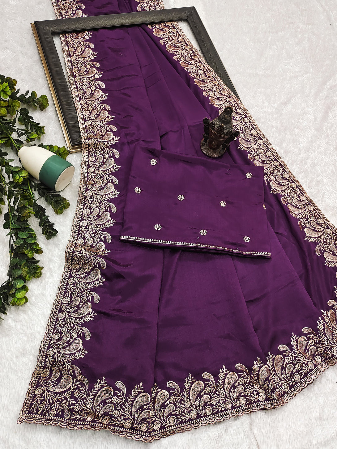 SATIN-SOFT, PURE CHINON SILK FABRIC SAREE