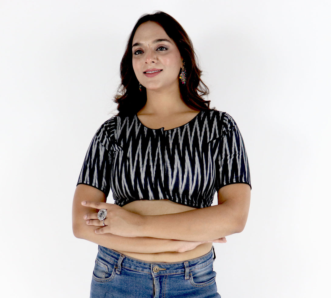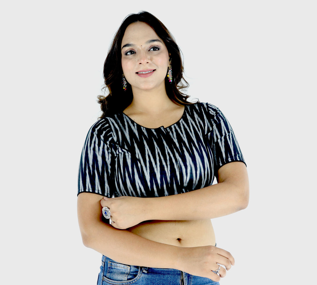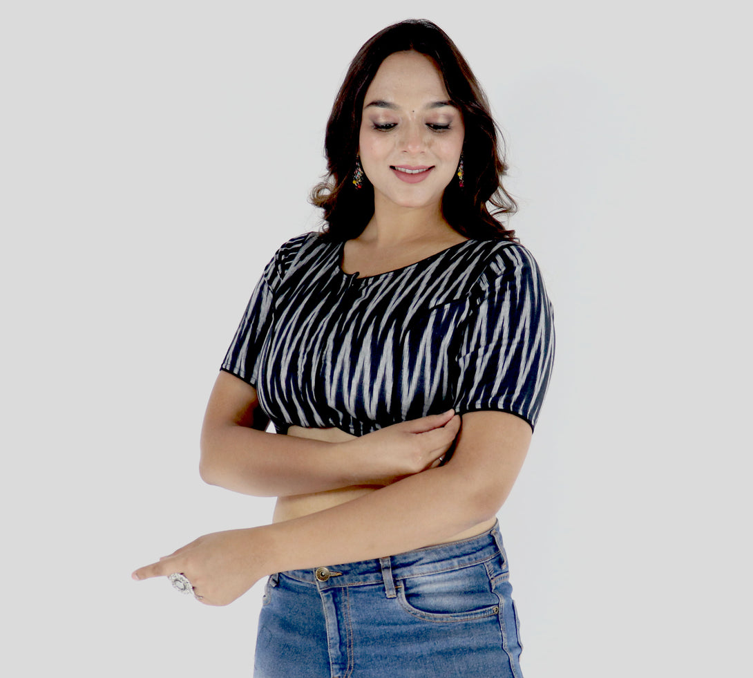 Step into the world of timeless grace with our Ikkat Handloom Cotton BoatNeck Blouse. This Alterable Readymade Blouse is meticulously crafted from Cotton Weaving, offering a comfortable and breathable fit. The BoatNeck design adds a touch of classic elegance, making it a versatile choice for various occasions. With a Non-Padded silhouette and convenient Hook front Open, this blouse effortlessly combines style and comfort. Embrace the artistry of handloom weaving with this Ikkat masterpiece that redefines your fashion statement. Elevate your ensemble with the subtle charm of this Cotton BoatNeck Blouse, designed for those who appreciate the fusion of tradition and modern style.