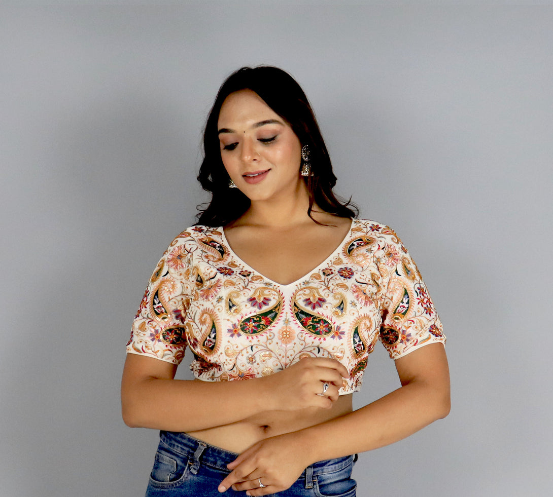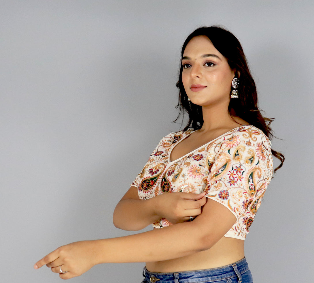 "Deep Neck Dream: Designer Cotton Beauty Blouse"