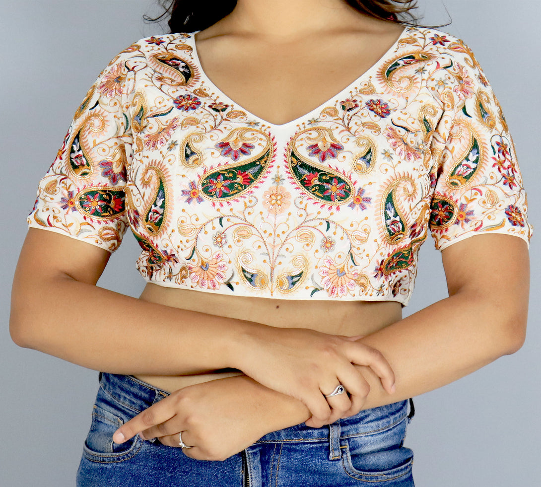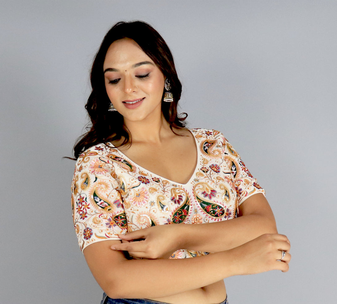 Make your saree look effortlessly stylish with our Georgette Blouse adorned with Chikankari Work. The Western Design and 12-inch sleeves add a contemporary touch, making it perfect for modern fashion enthusiasts. The back open design with hooks ensures easy wear and adds a hint of allure. Crafted from high-quality Georgette, this blouse combines traditional craftsmanship with a trendy silhouette. Elevate your ethnic ensemble and stand out at any event with this unique and fashionable blouse. Redefine your saree style with the perfect blend of tradition and modernity.