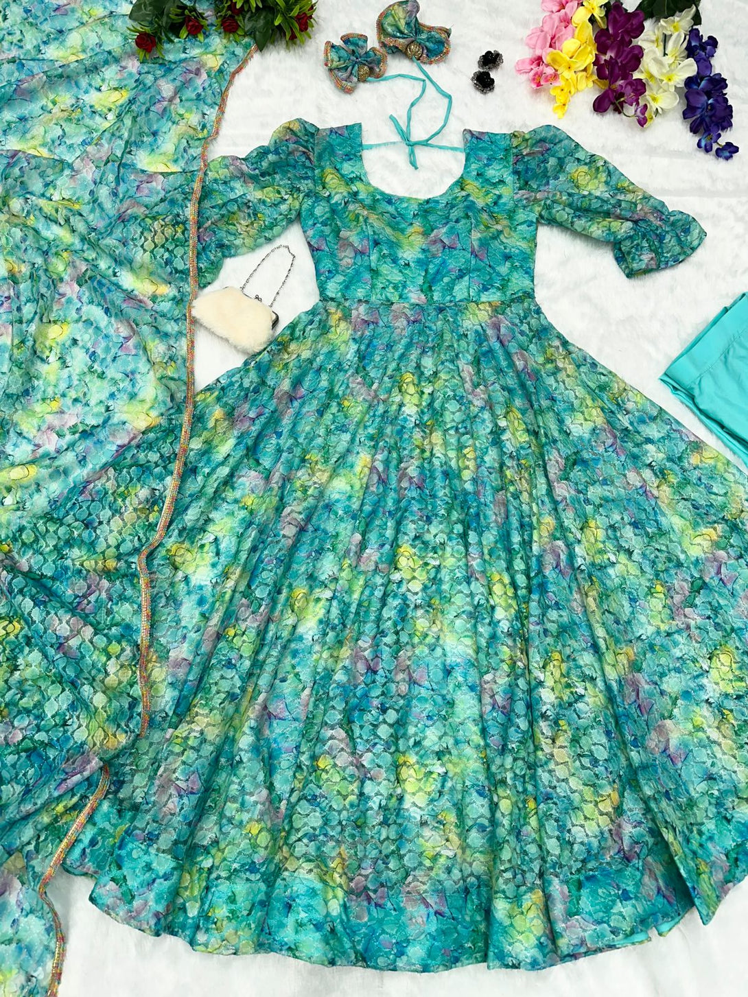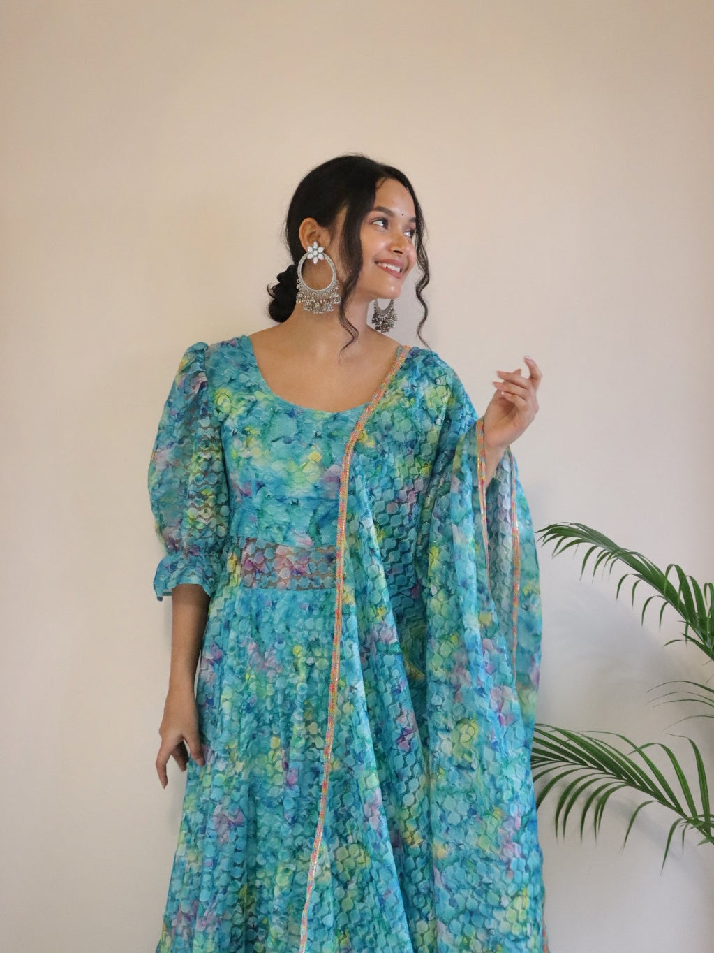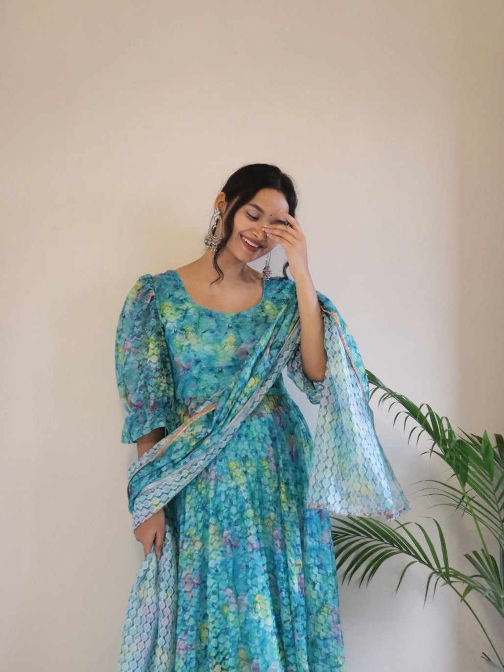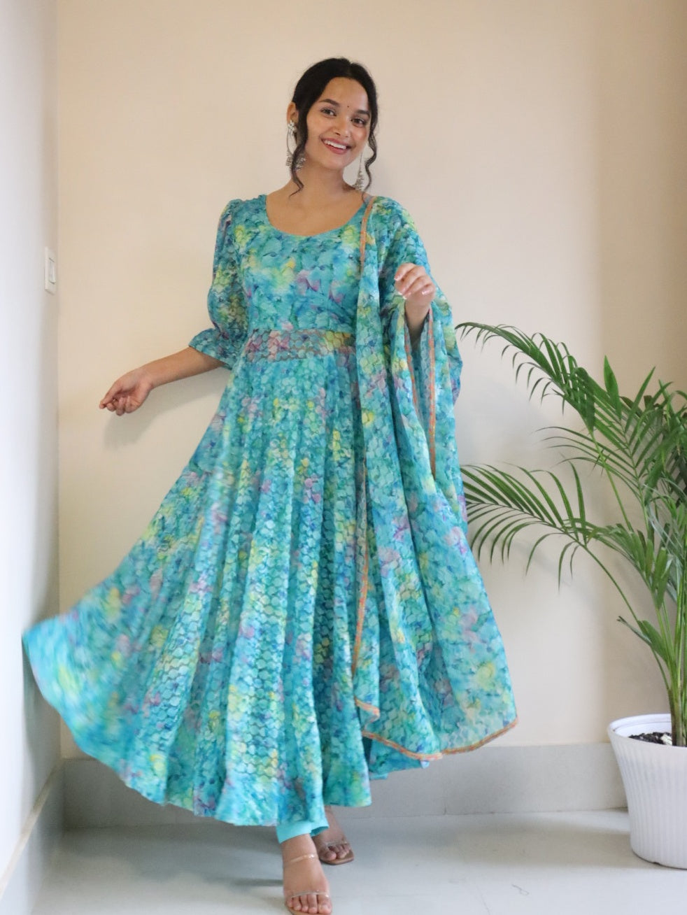 Anarkali - Digital printed French net Anarkali suit with huge flair