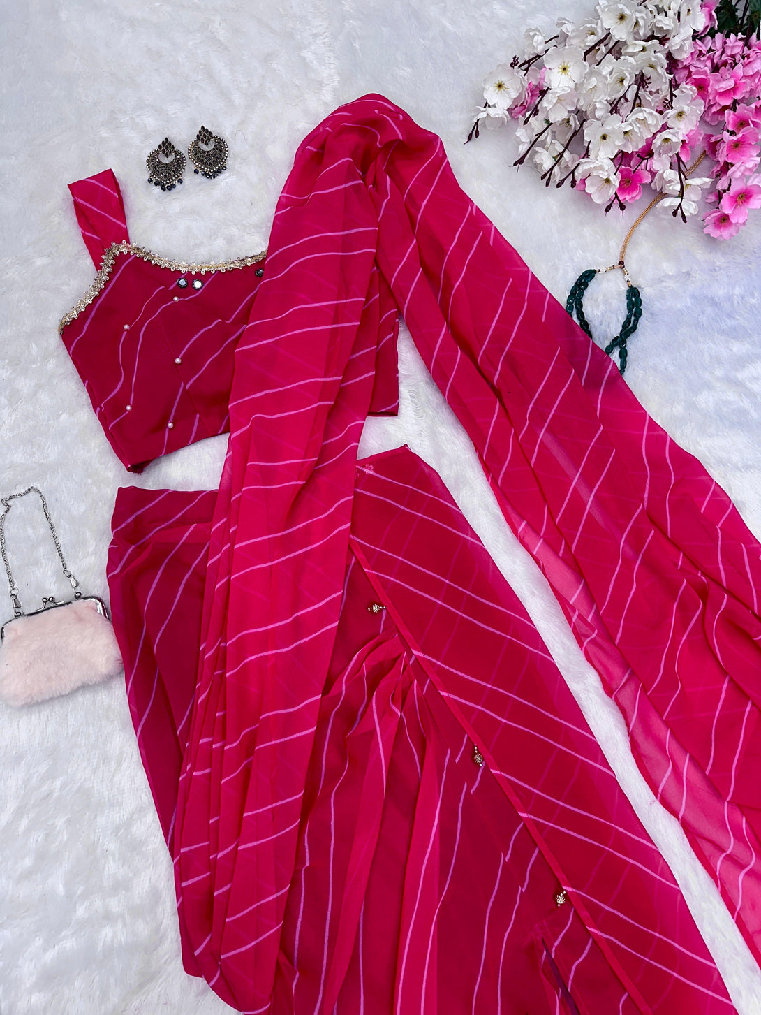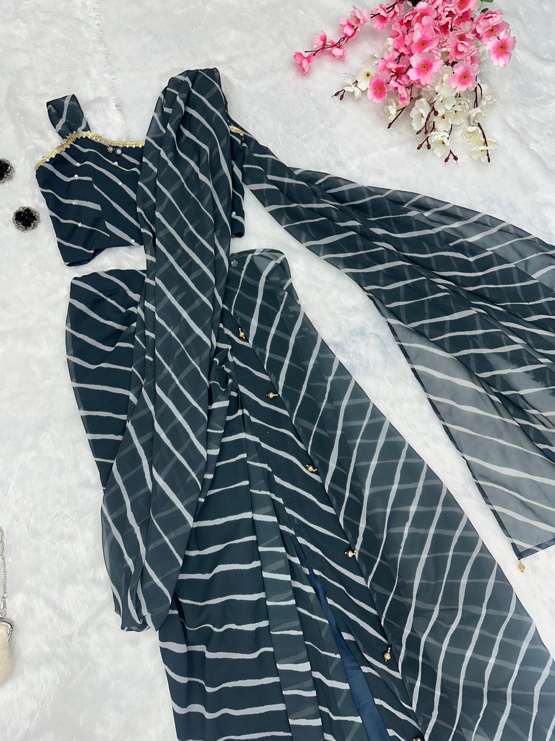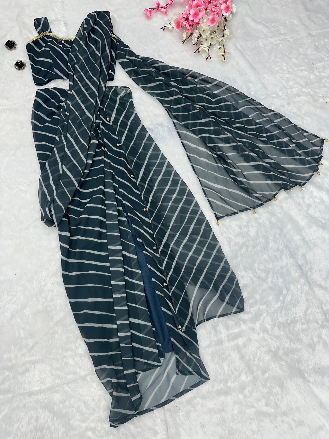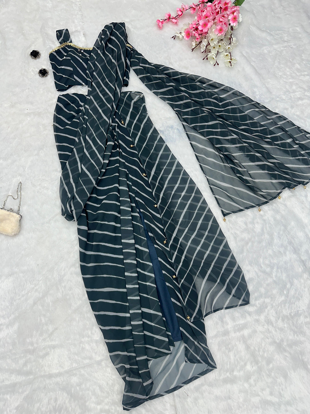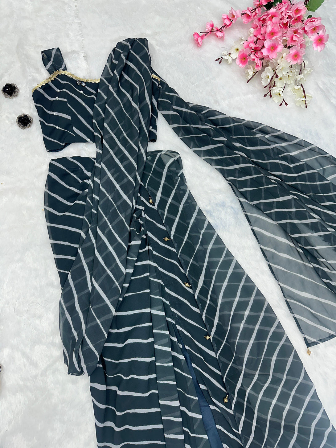 Drape Skirt: Digital printed georgette fabric with an elastic waist at the back for comfort and style.