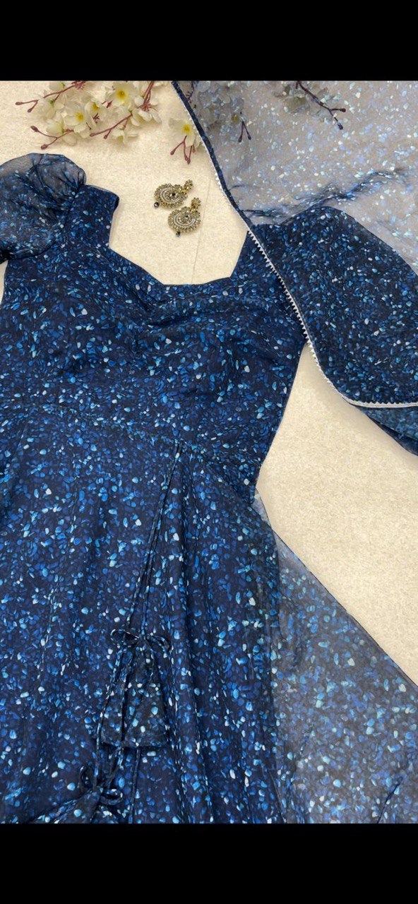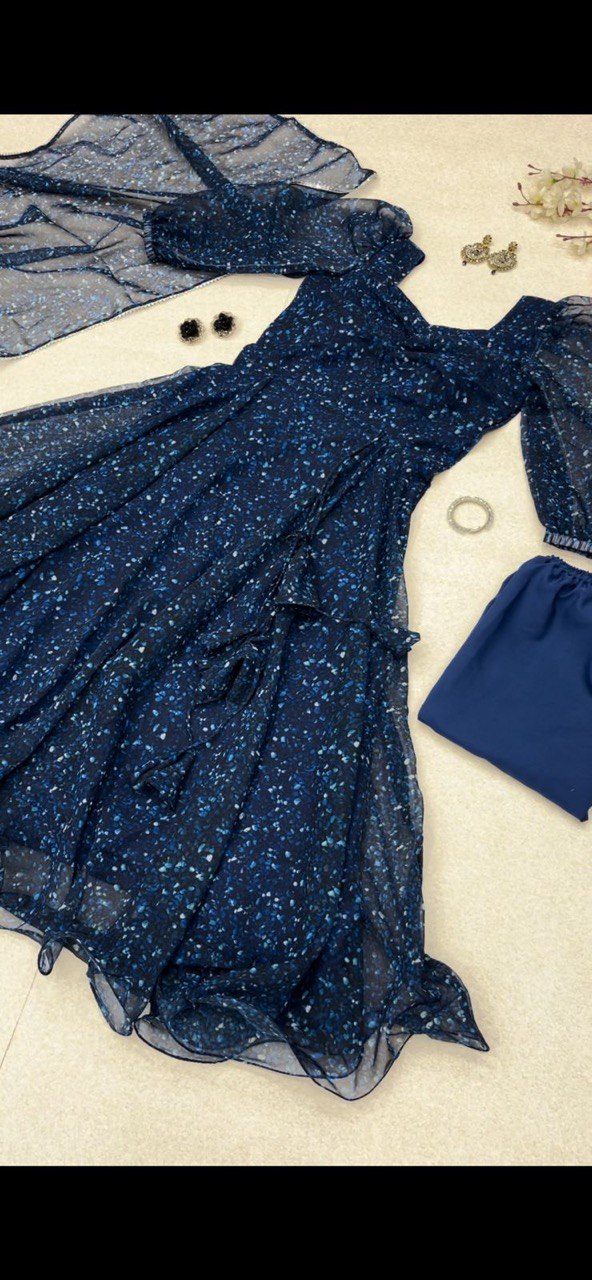 Digital printed Georgette silk Anarkali suit