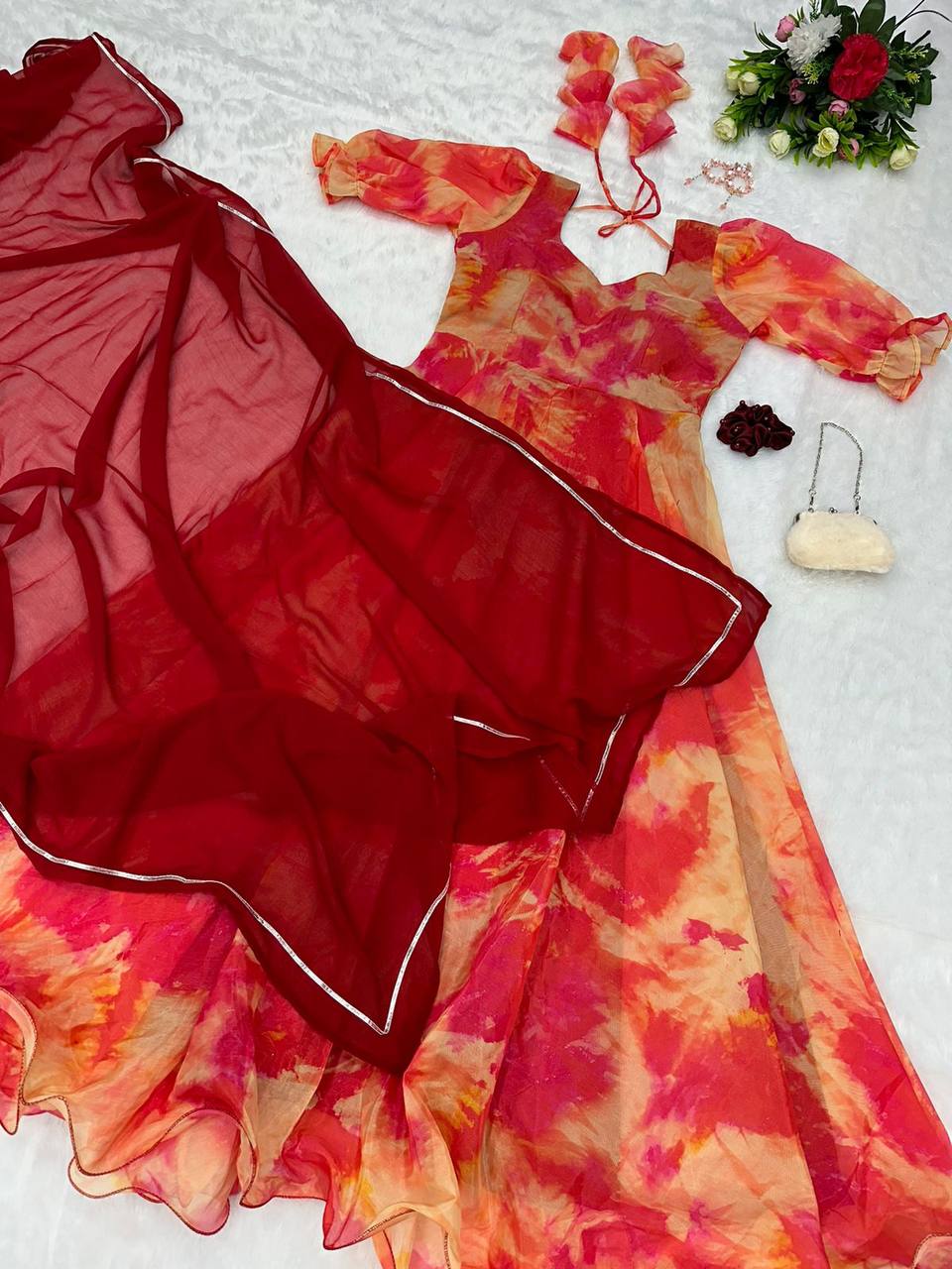 * Anarkali gown* - Digital printed Jimmy organza silk suit with 8mtr huge flair