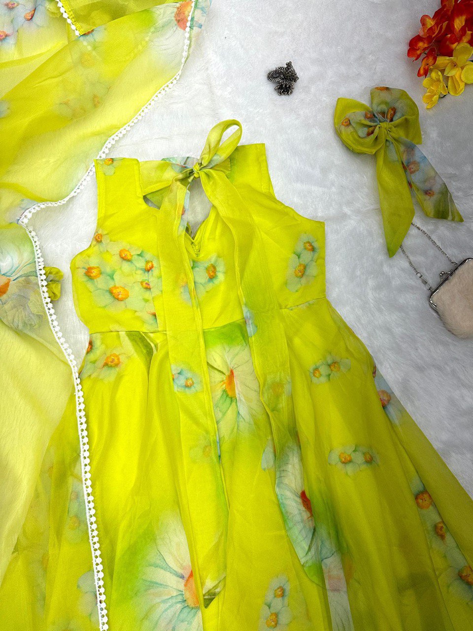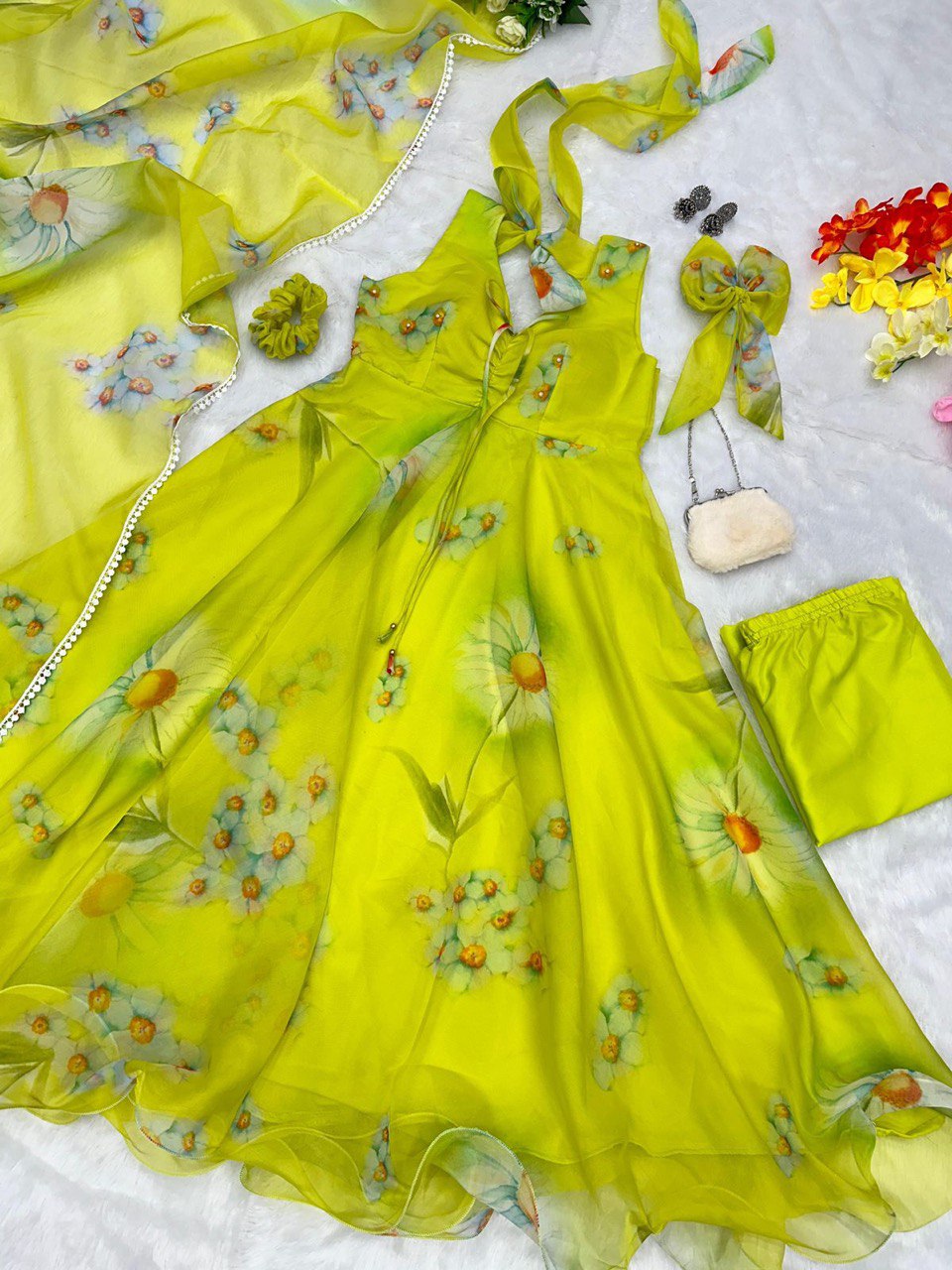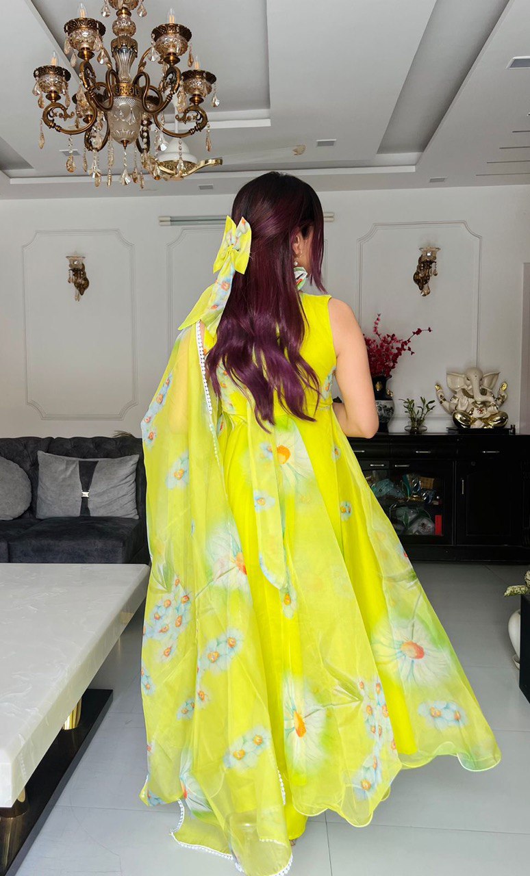 Anarkali - Digital printed organza silk Anarkali suit with huge flair