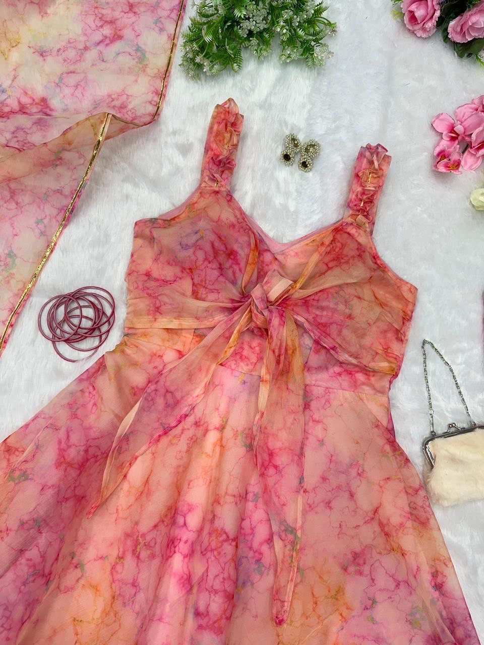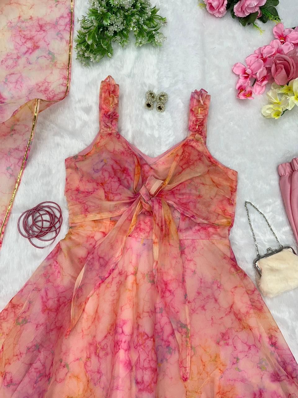 Anarkali - Digital printed organza silk Anarkali suit with huge flair