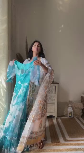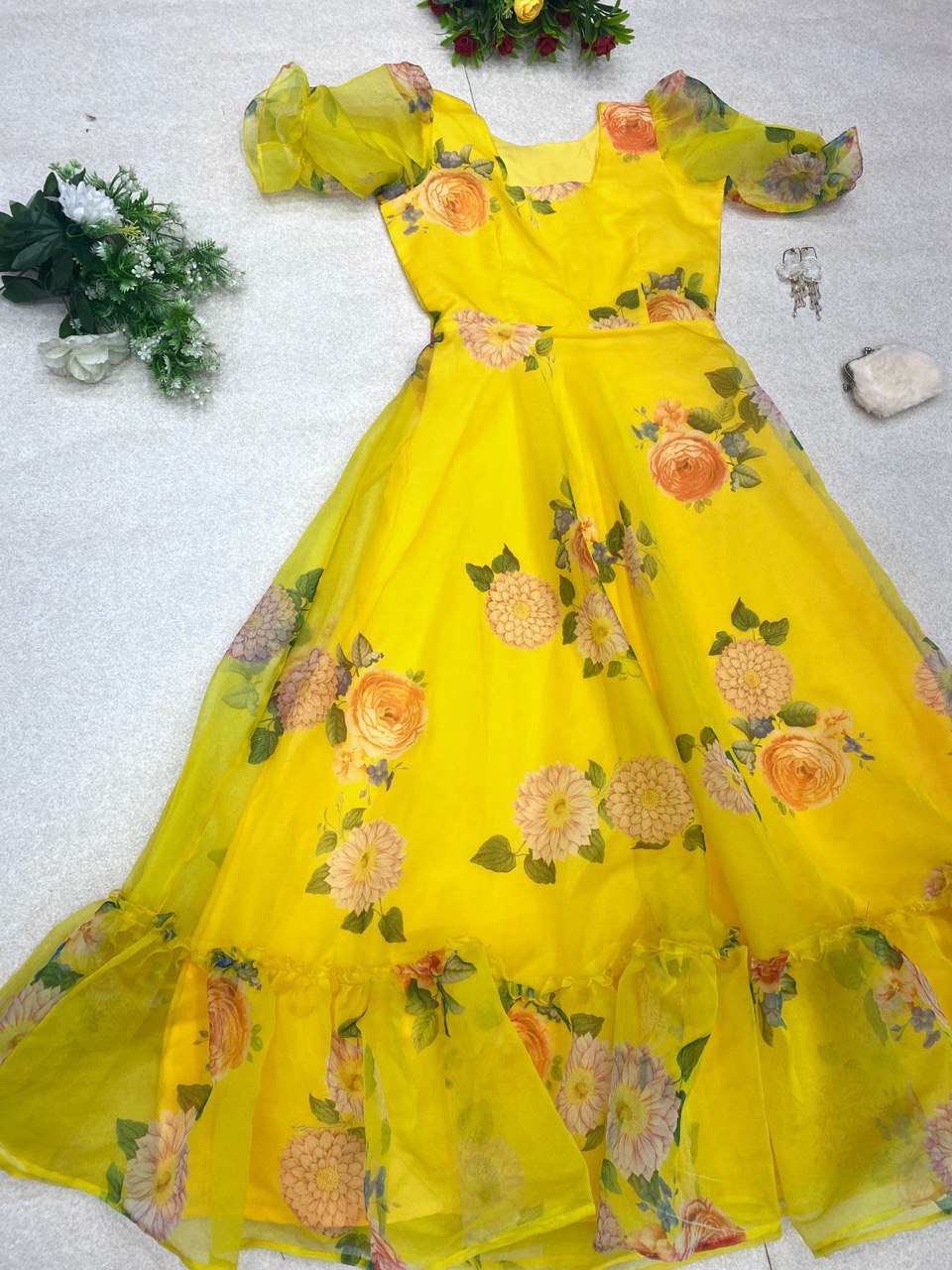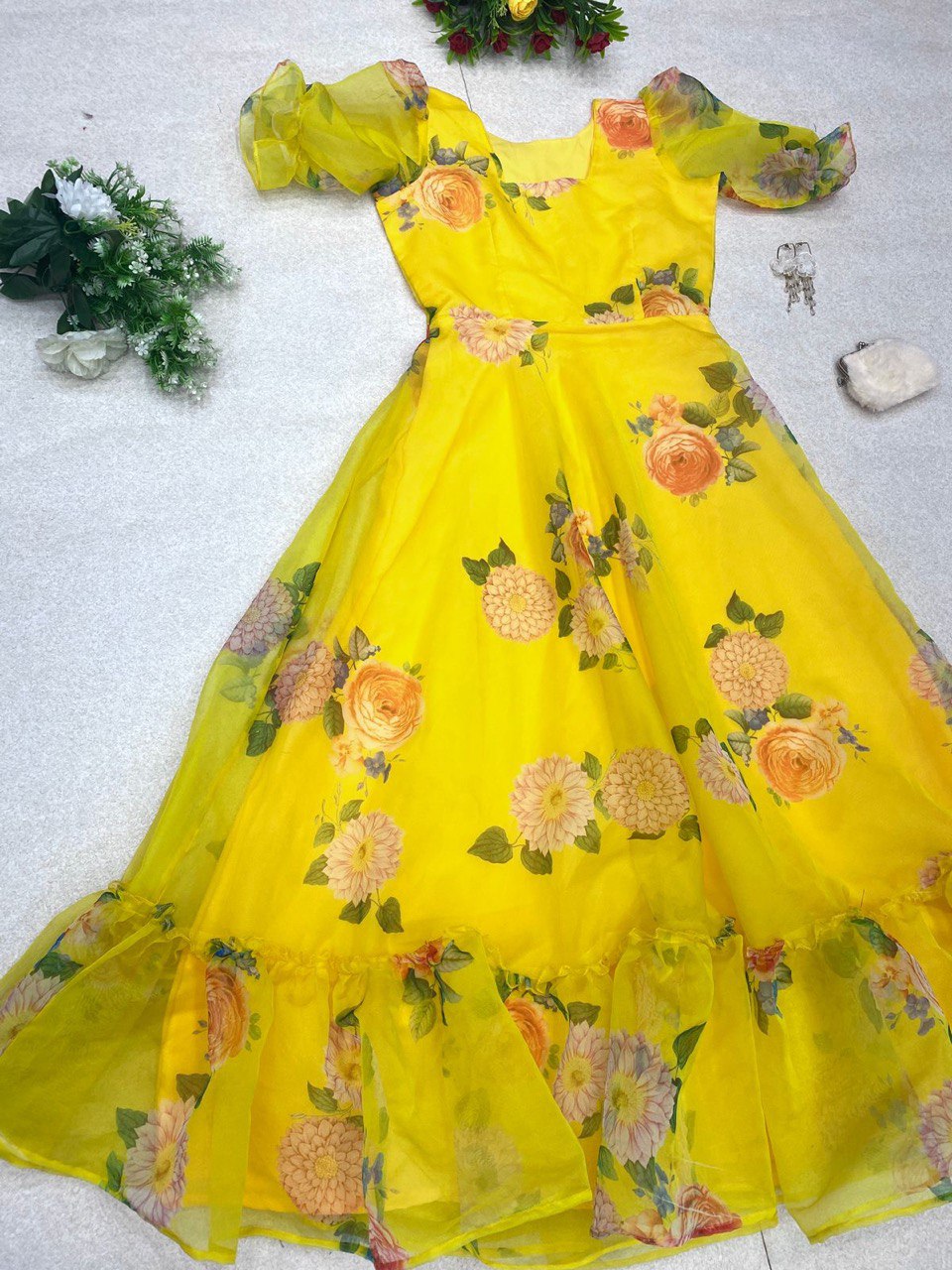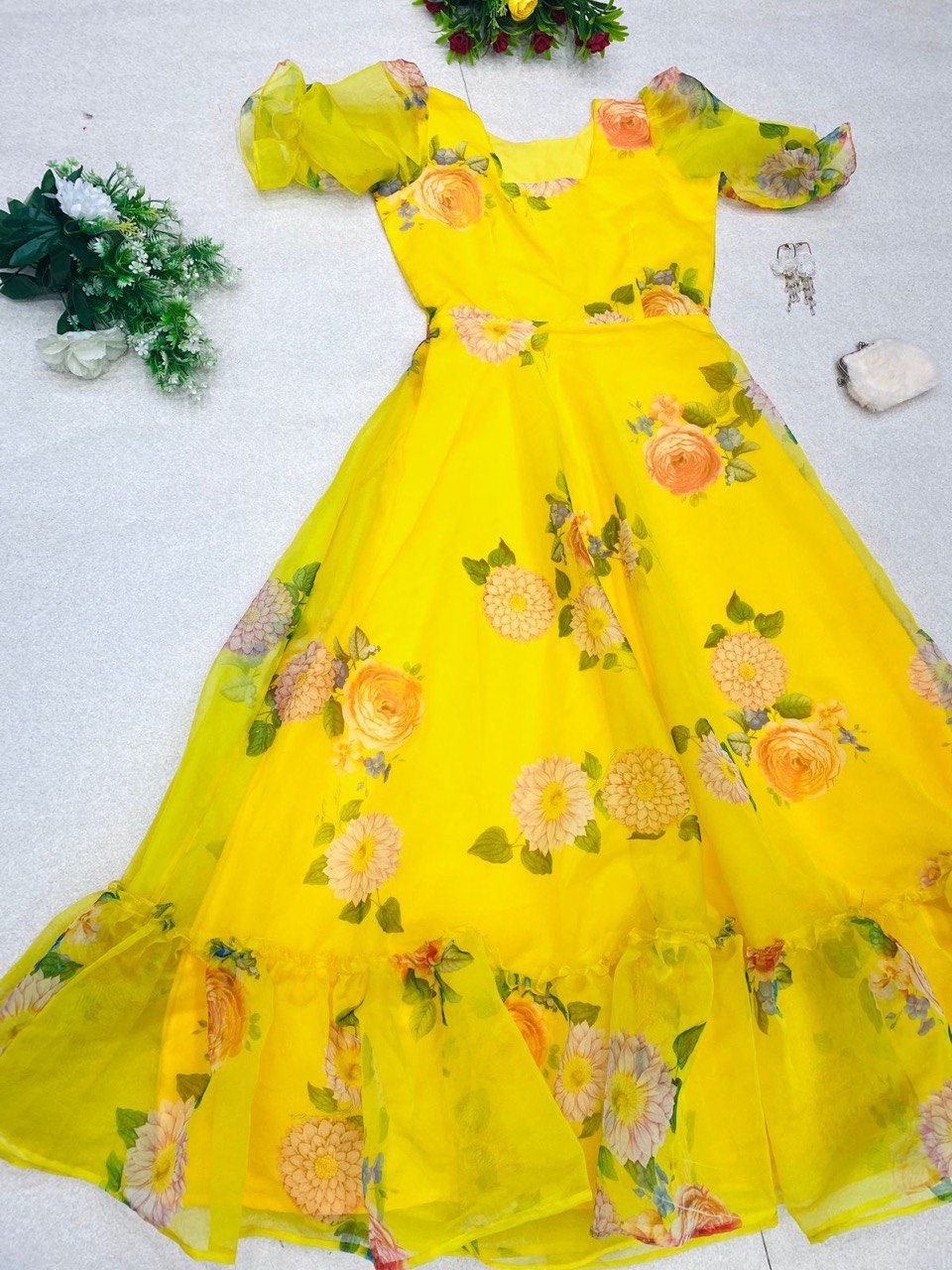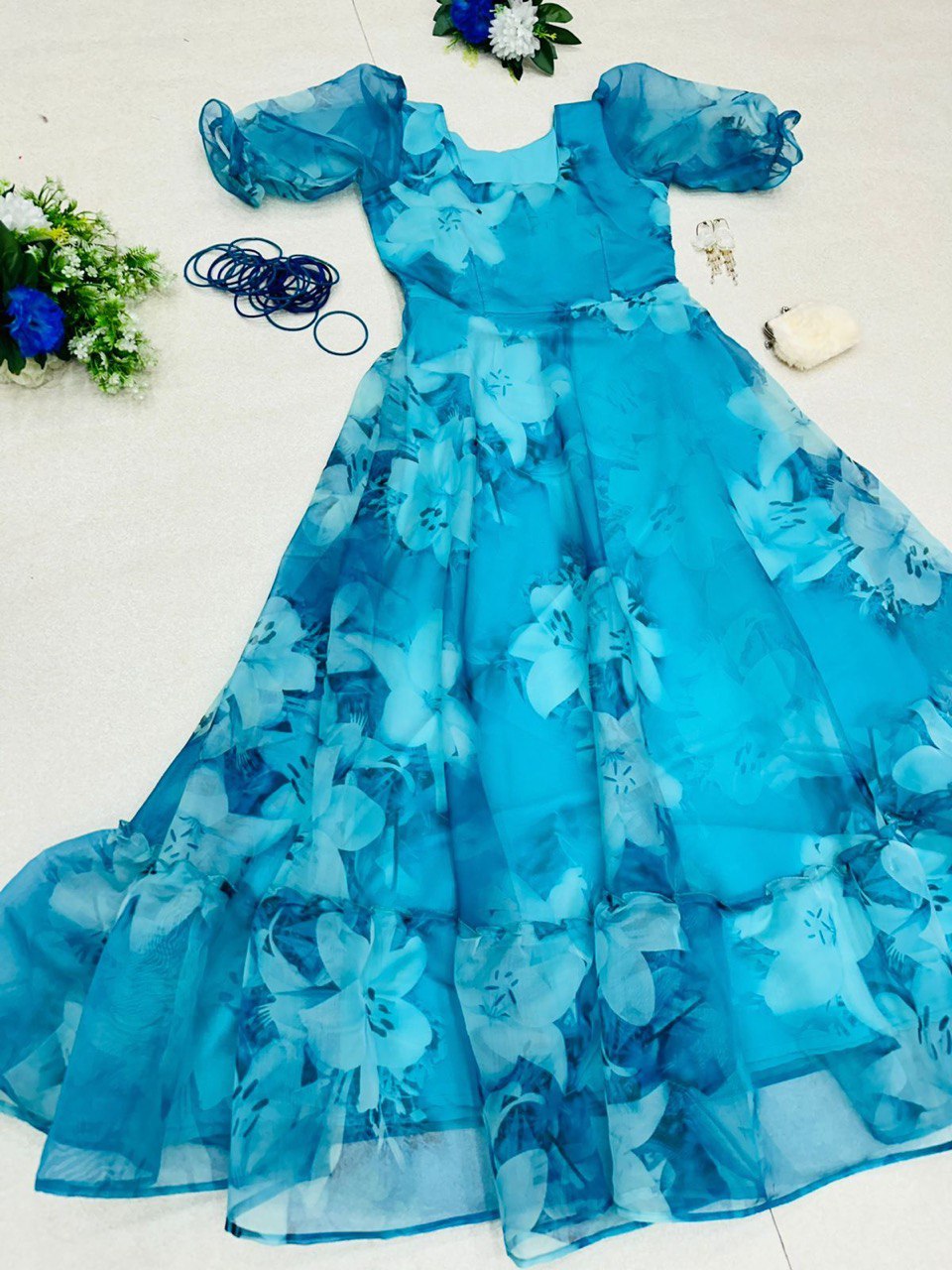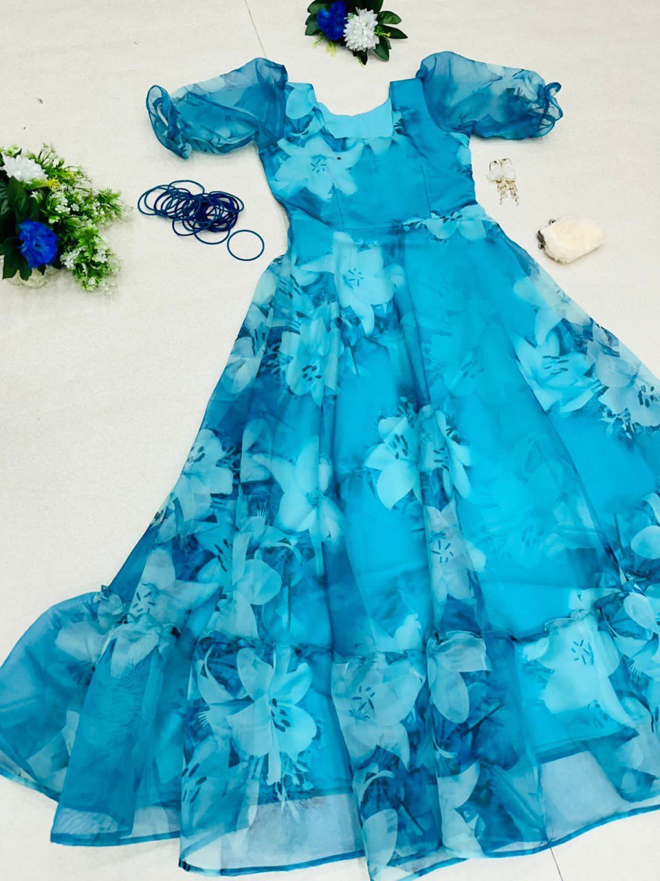 Maxi gown - Digital printed organza silk suit with 6.5mtr huge flair