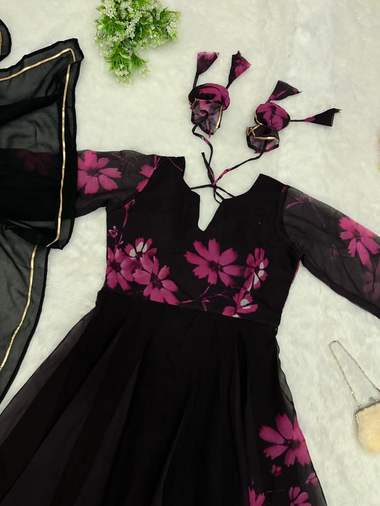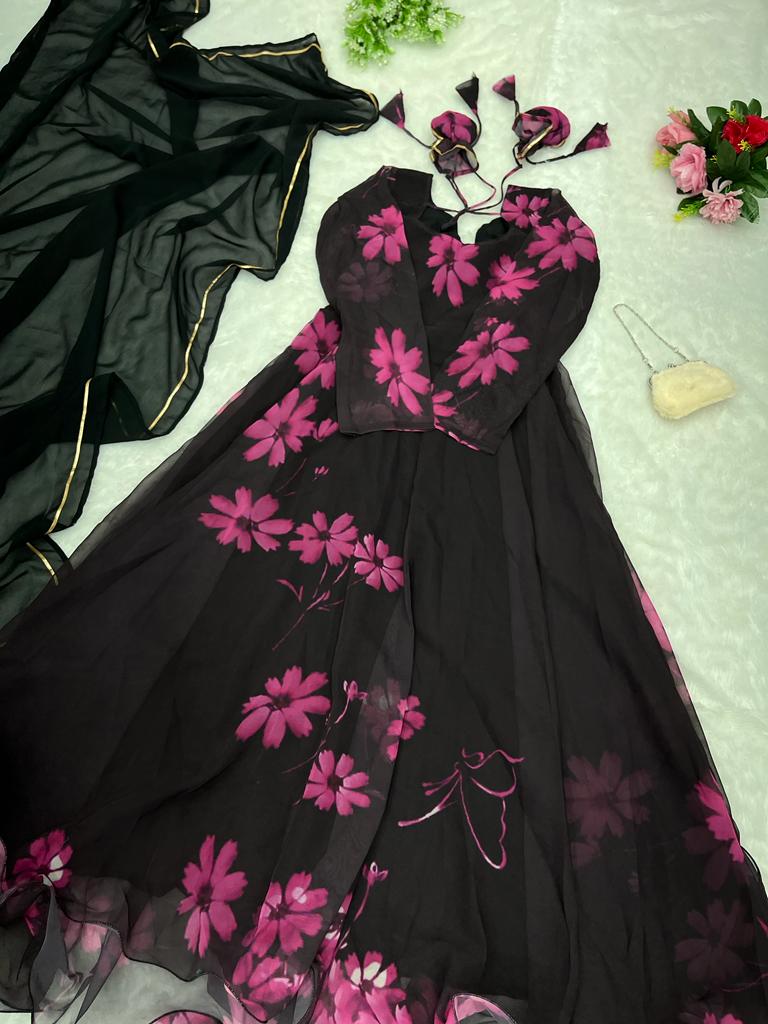 Digital printed pure Georgette fabric Anarkali Gown
