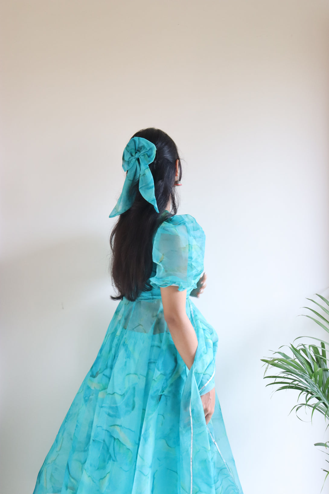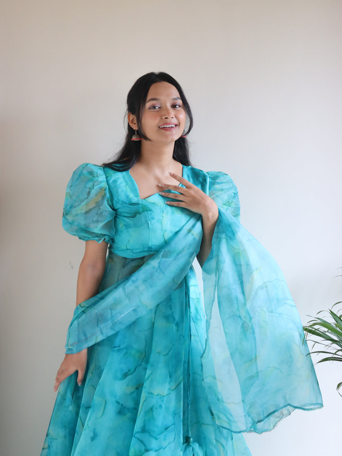 Anarkali - Digital printed pure organza silk Anarkali Front Slit suit of huge flair with Lace Border