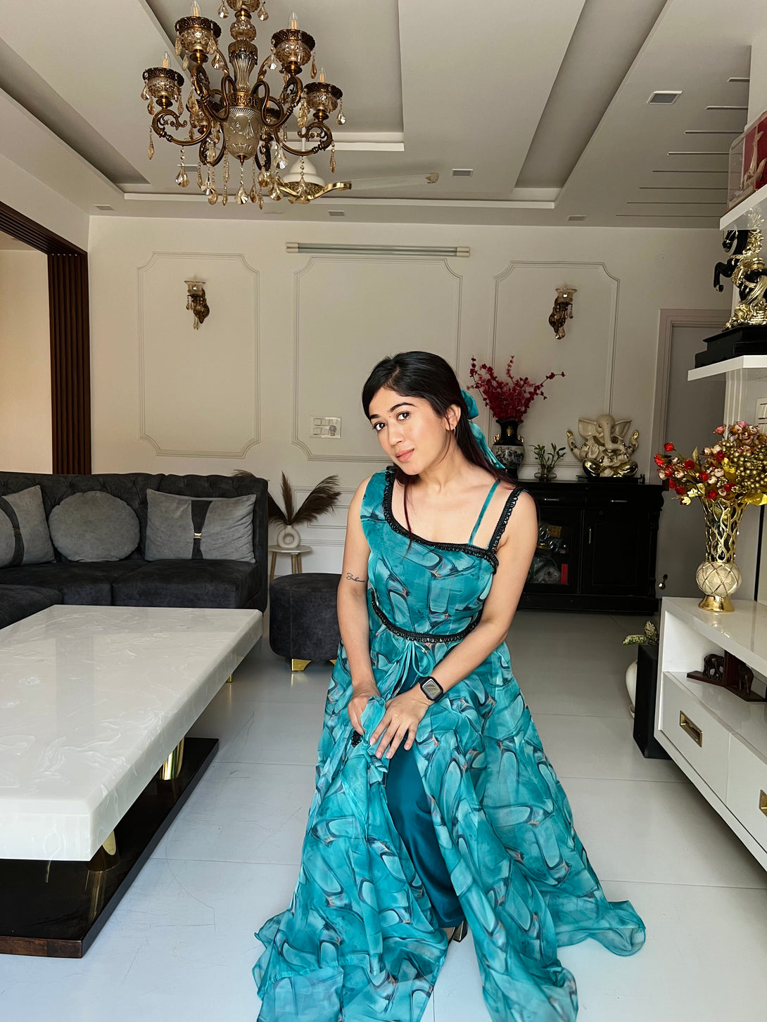 Anarkali - Digital printed pure organza silk Anarkali Front Slit suit of huge flair with Lace Border