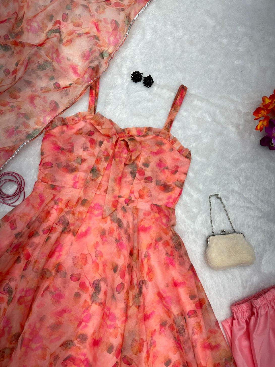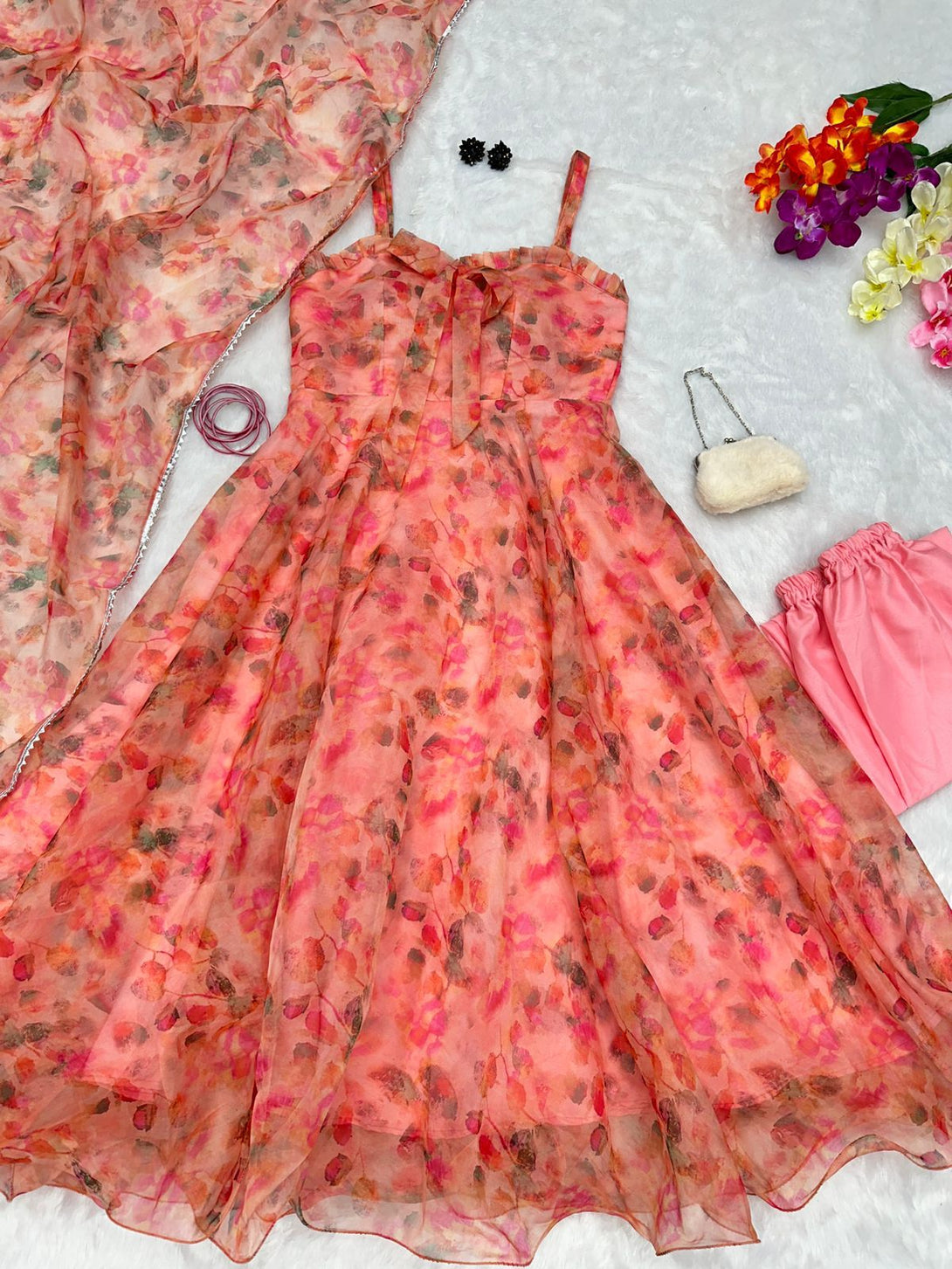 Digital printed pure organza silk Anarkali suit