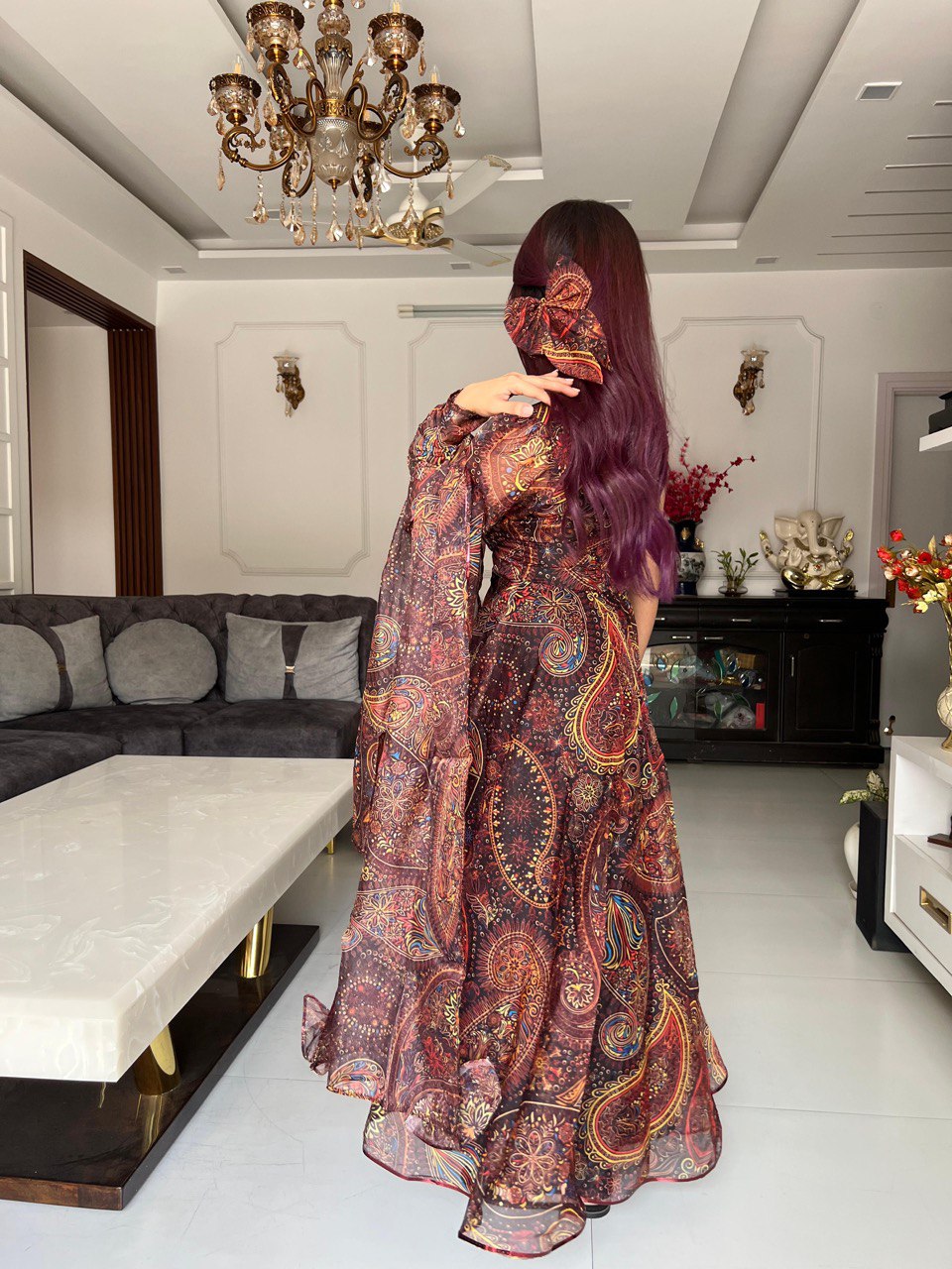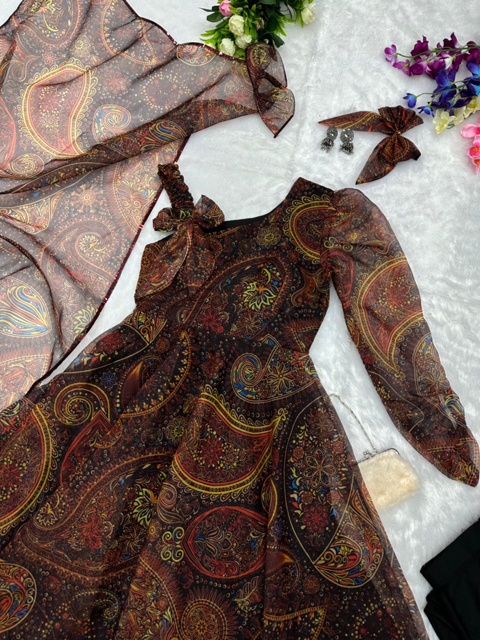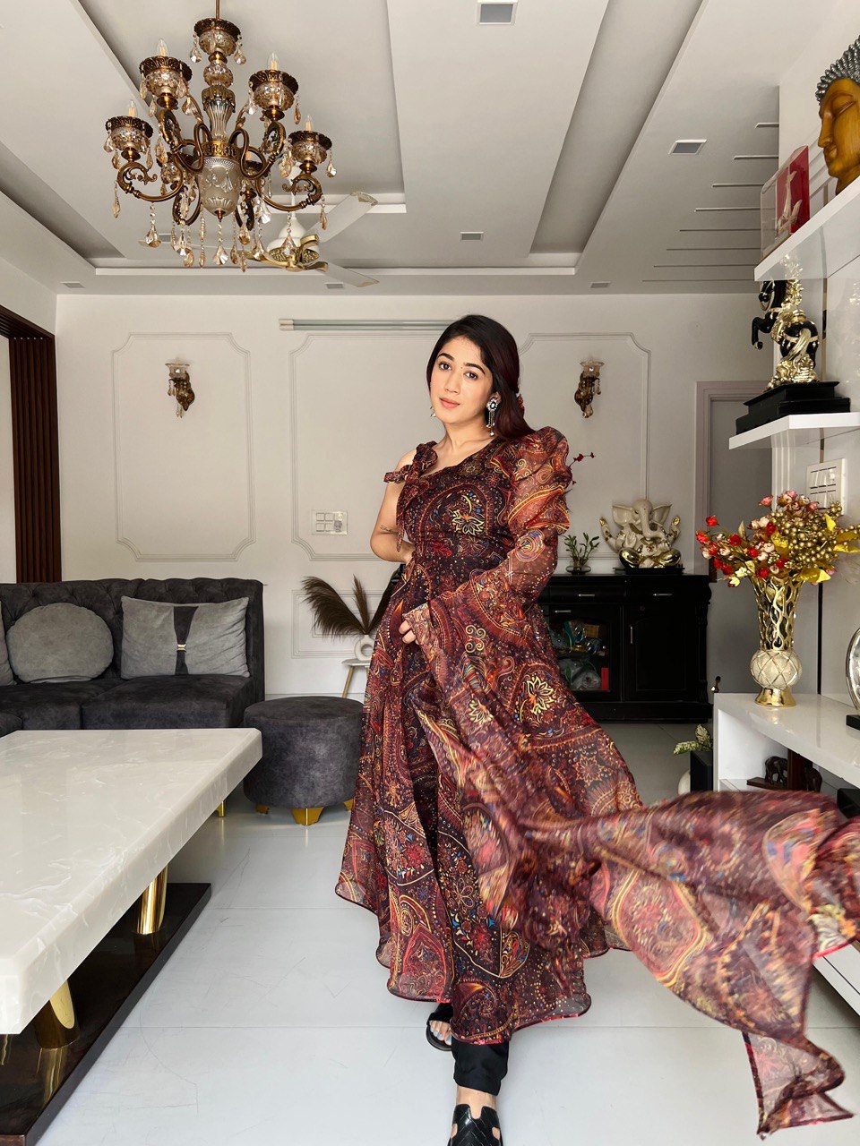*Anarkali* - Digital printed pure organza silk Anarkali suit of huge flair with Lace Border