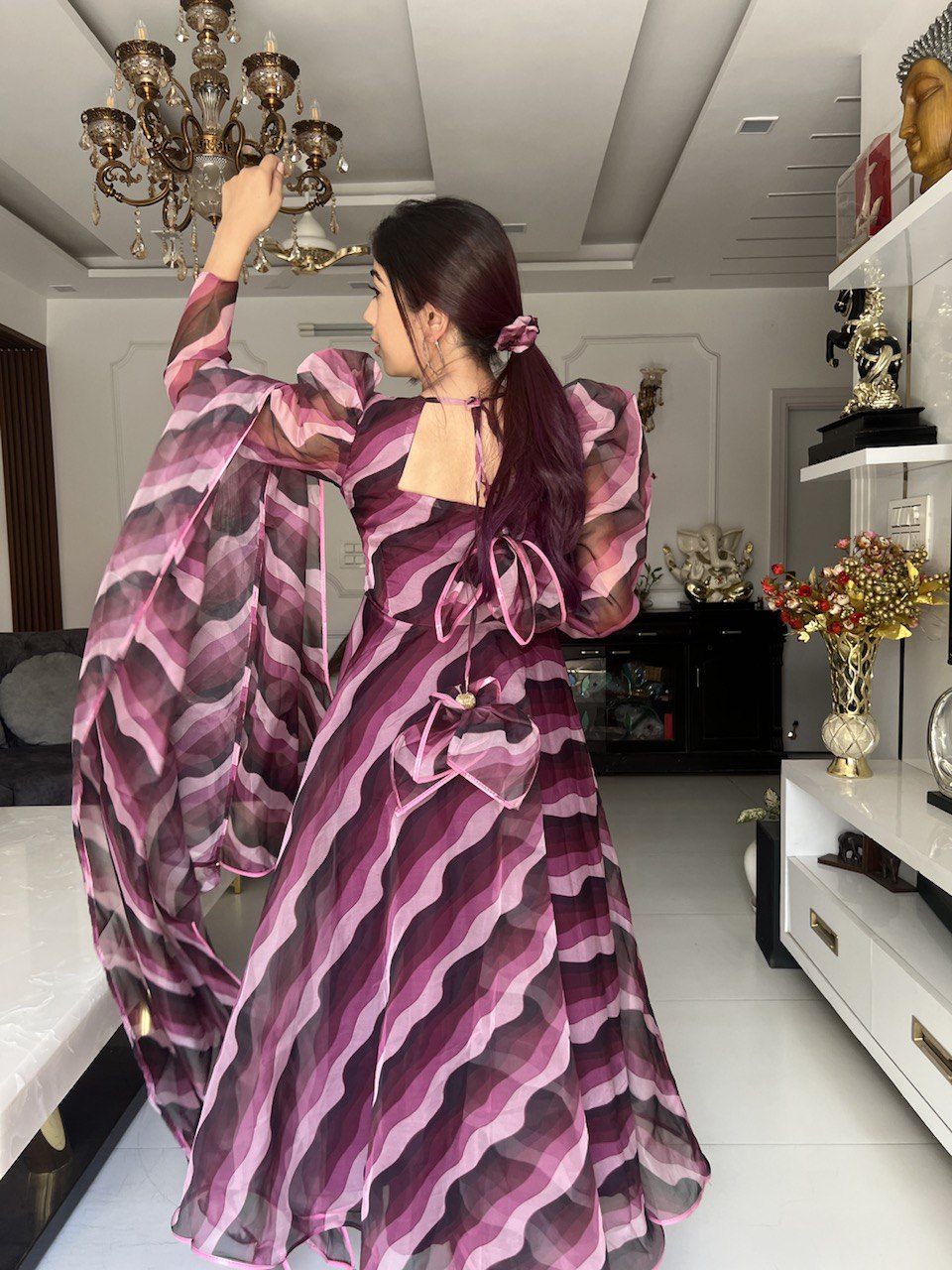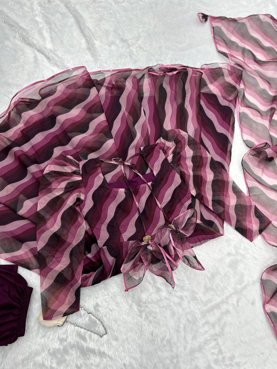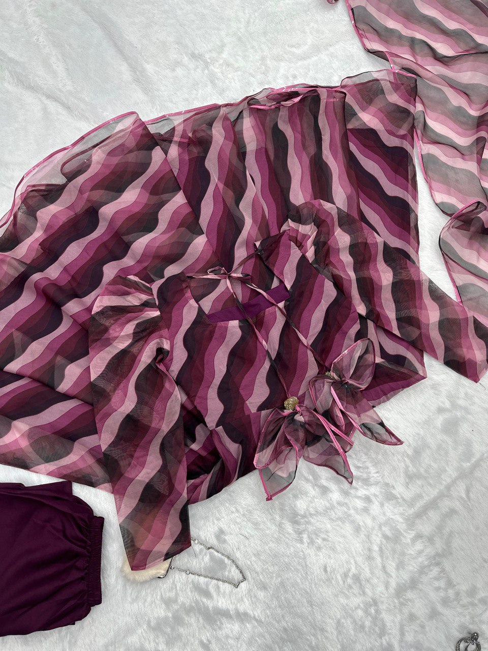 Introducing our captivating Digital Printed Pure Organza Silk Anarkali Suit, boasting a remarkable flair and adorned with a delicate Lace Border for added charm. Paired with fully stitched butter cotton pants, ensuring both comfort and style. Complete your ensemble with the Organza Dupatta, featuring digital prints and a Lace border, adding an elegant finishing touch to your attire.