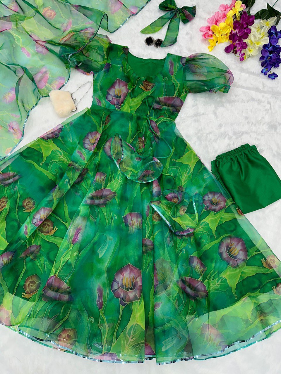 *Anarkali* - Digital printed pure organza silk Anarkali suit of huge flair with Lace Border ??
