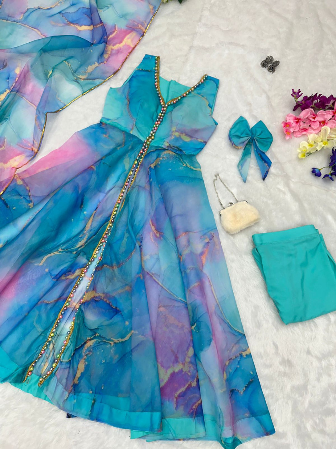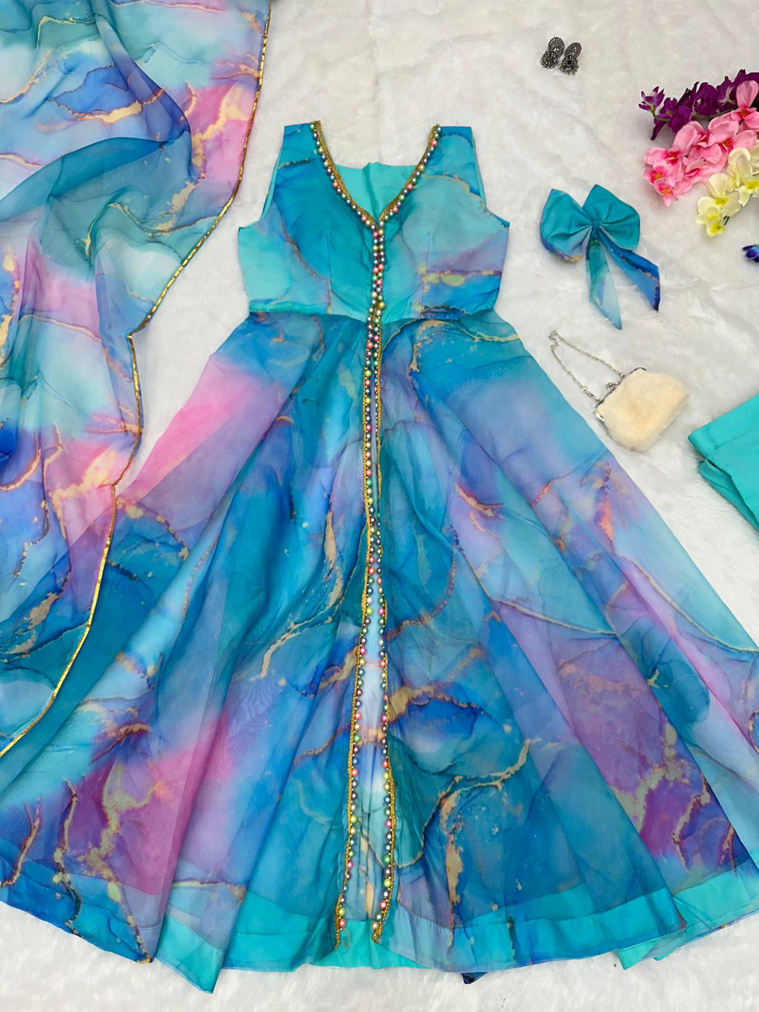 " Floral Organza Anarkali: Buttercotton Pant, Digital Dupatta – Fully Stitched