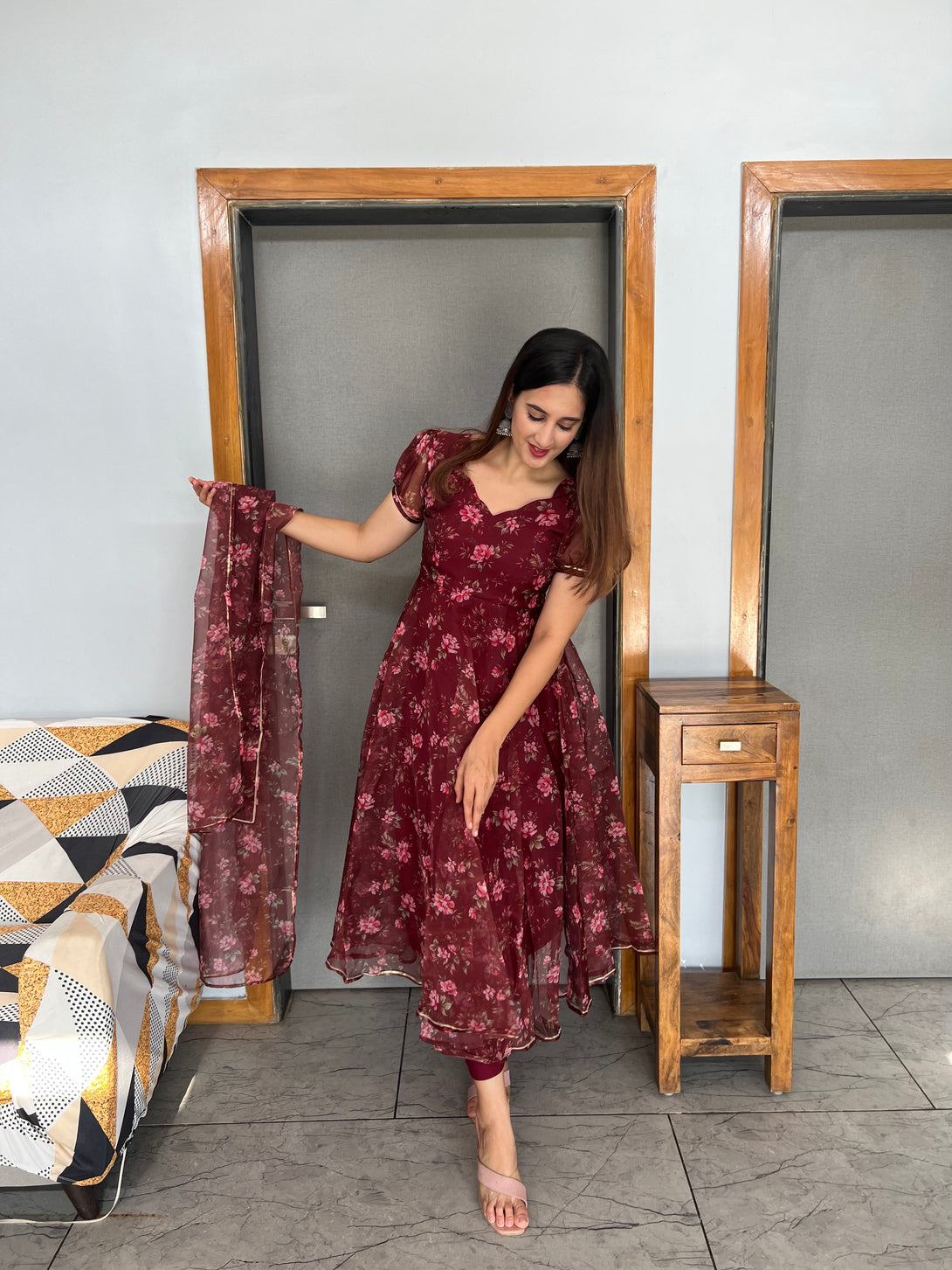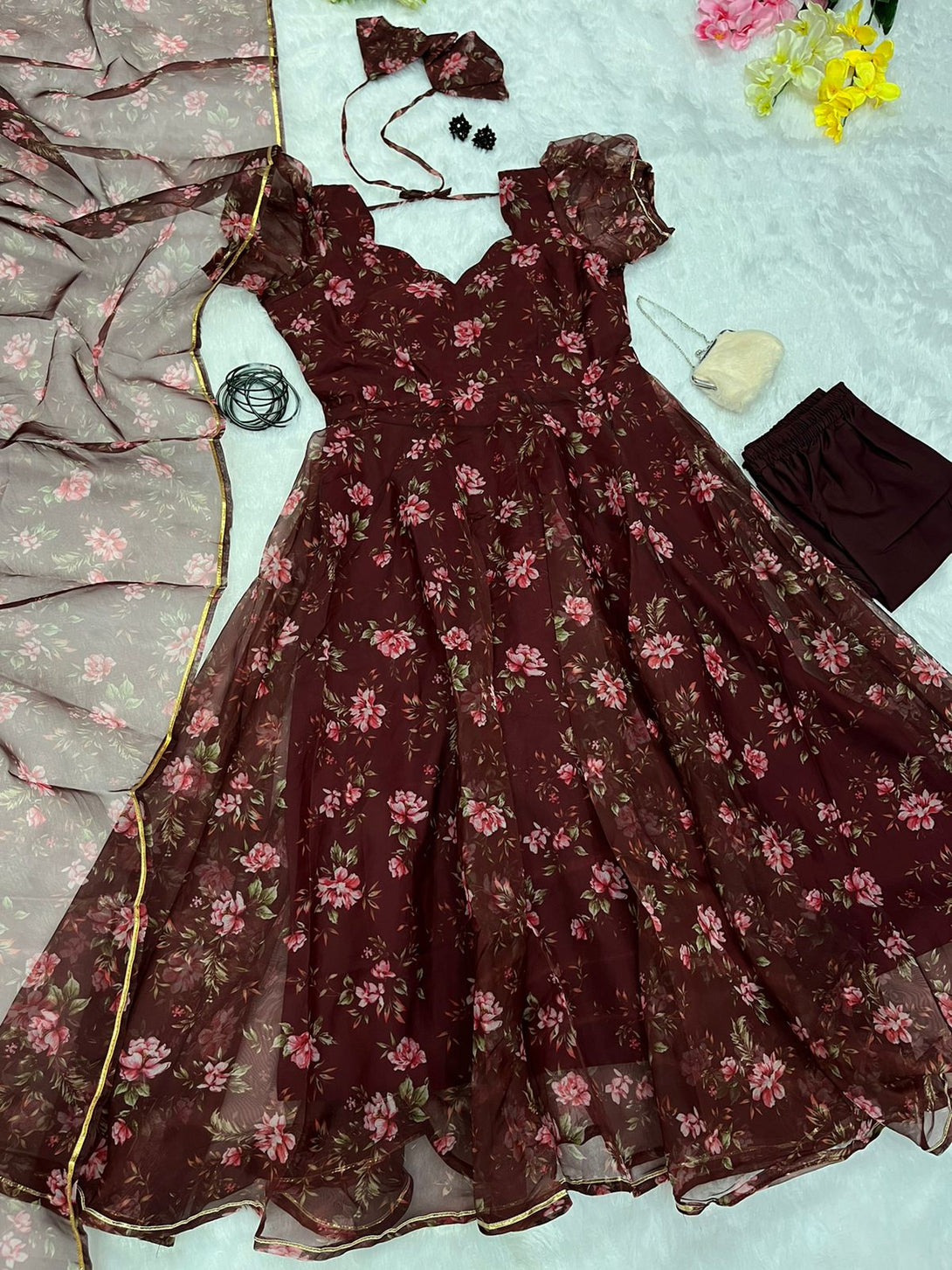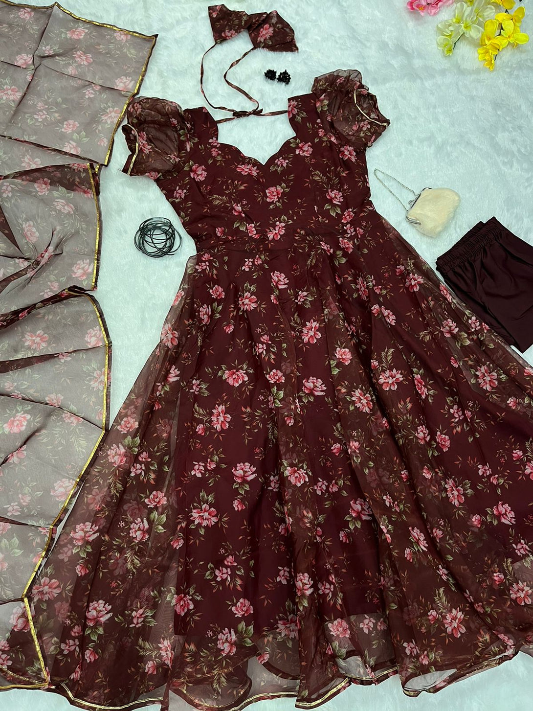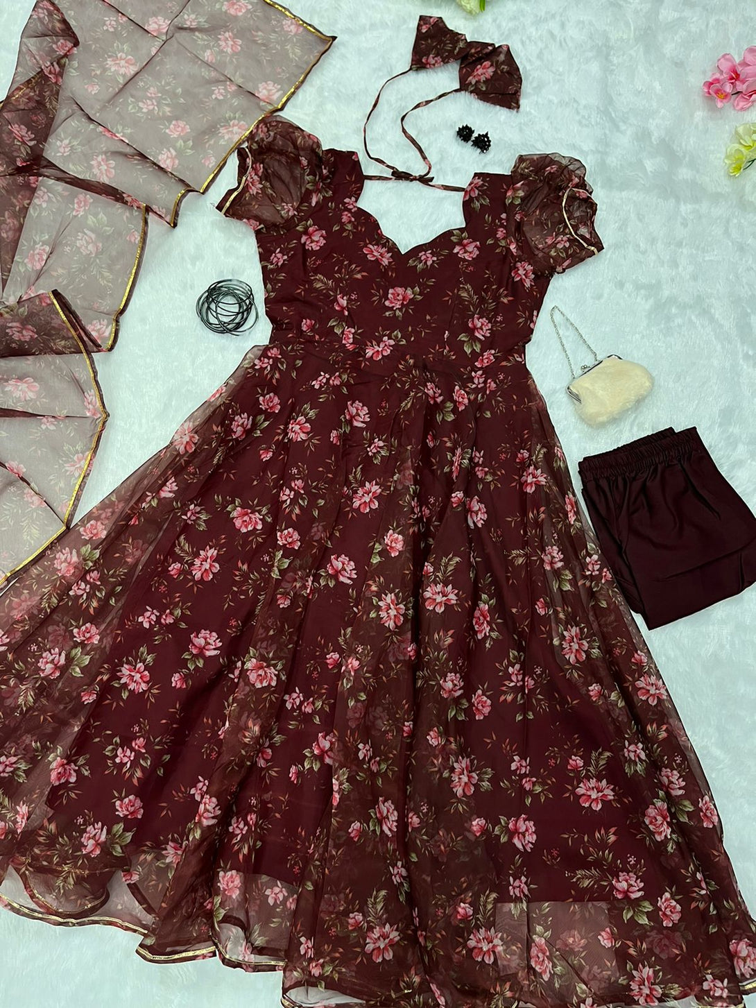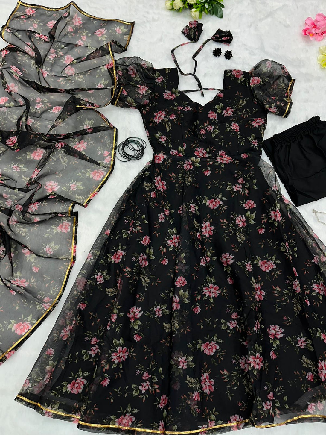 *Anarkali* - Digital printed pure silk organza Anarkali suit with huge flair