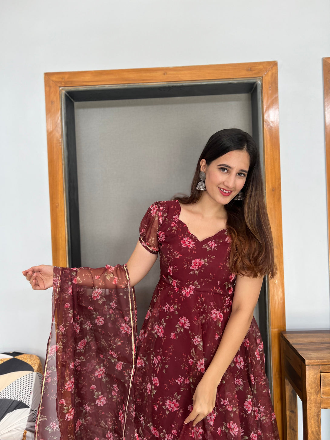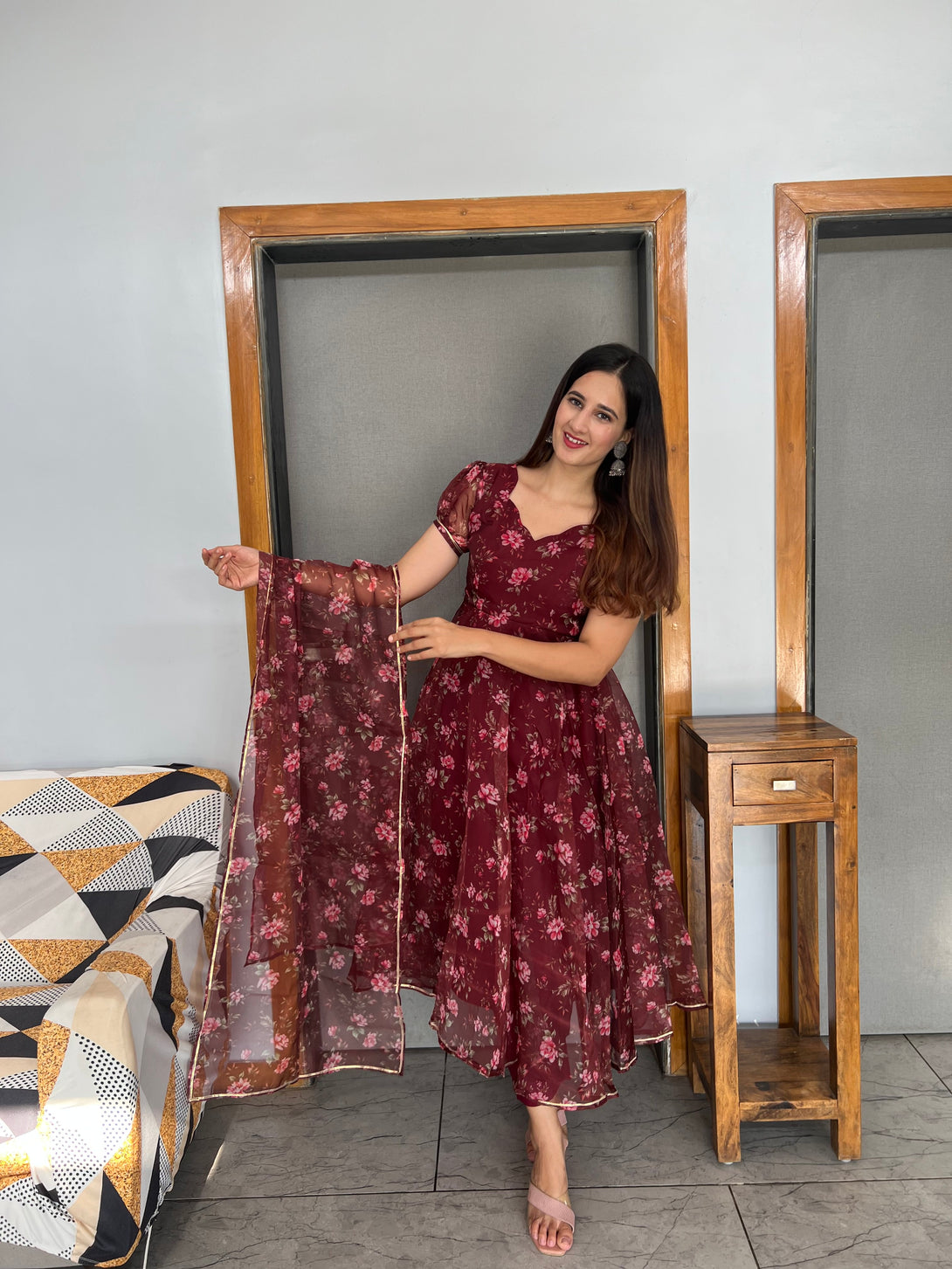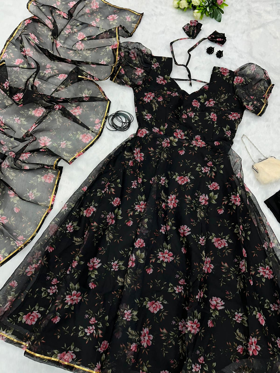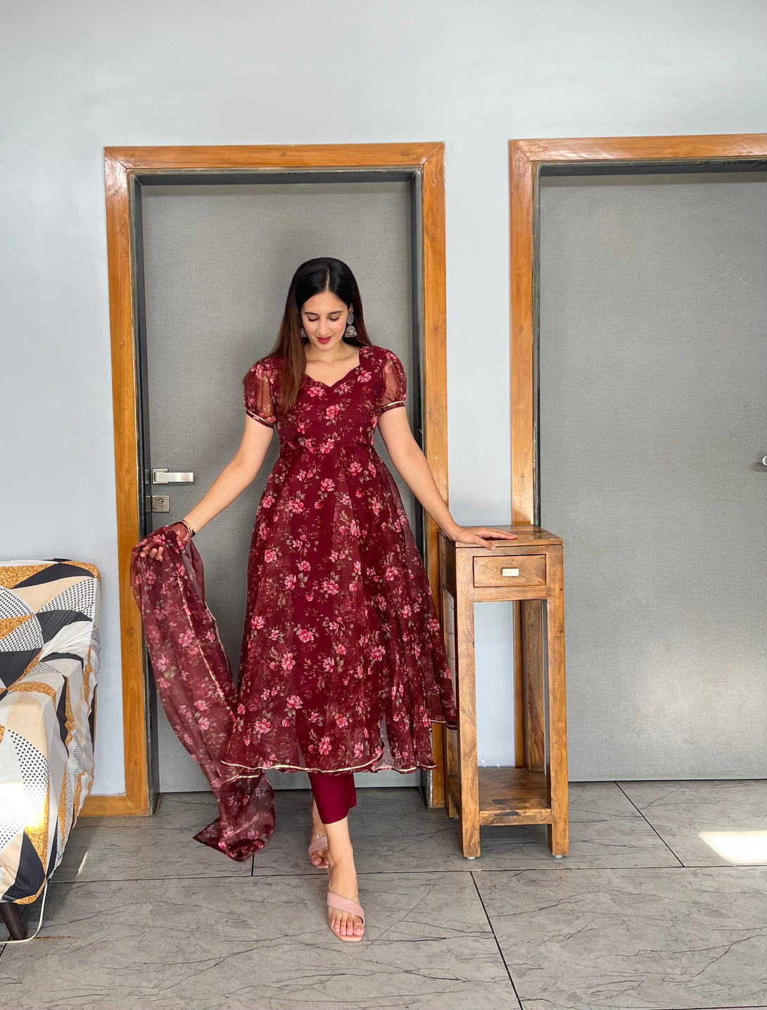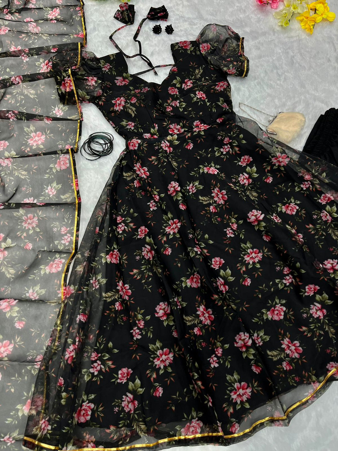 *Anarkali* - Digital printed pure silk organza Anarkali suit with huge flair