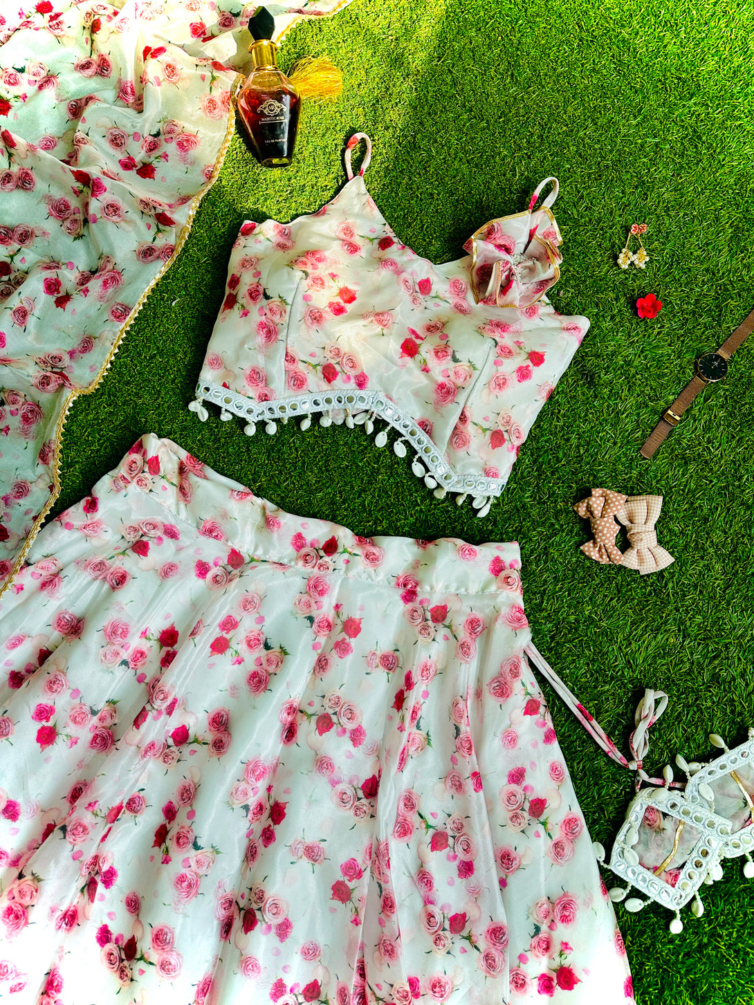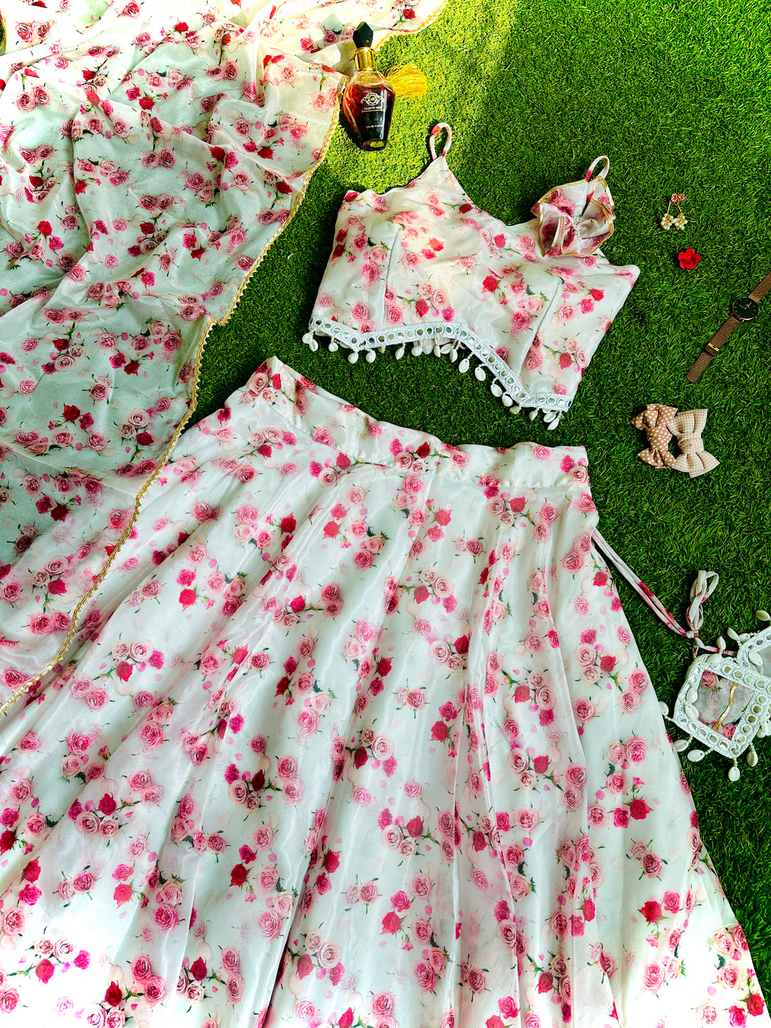 lehnga - Floral printed Pure Jimmy organza silk lehnga . 8mtr flair lehnga with canvas patta