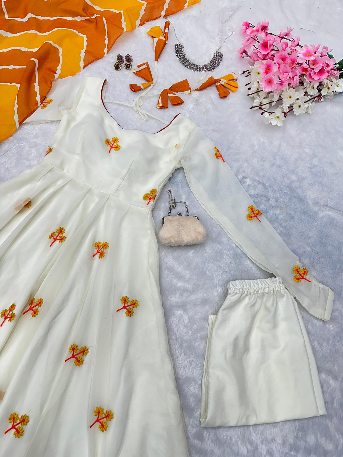 * Anarkali * - embroidery work butta Georgette Anarkali suit with huge flair, anarkali length 47+🌸