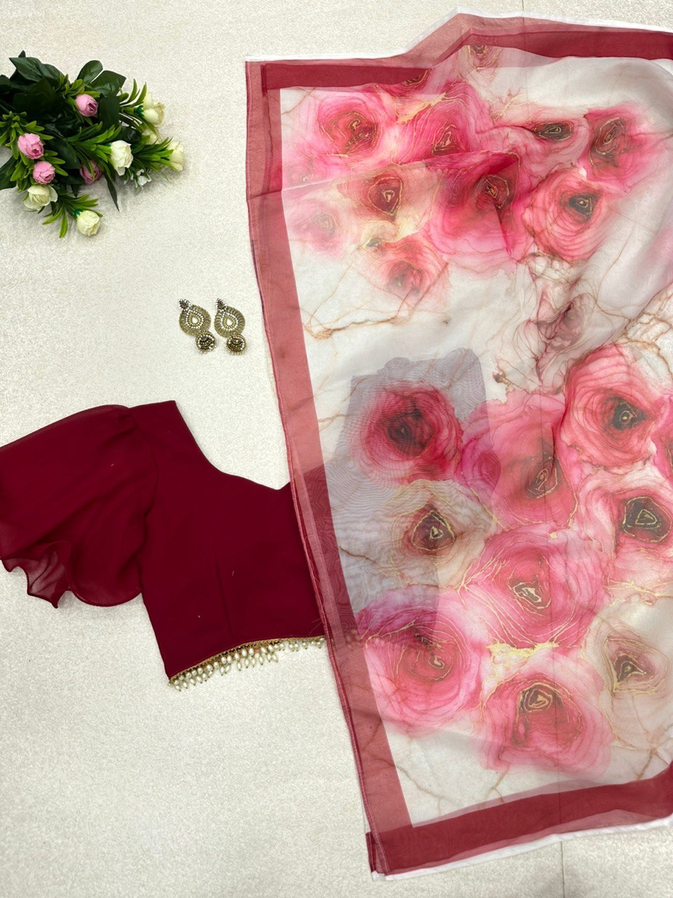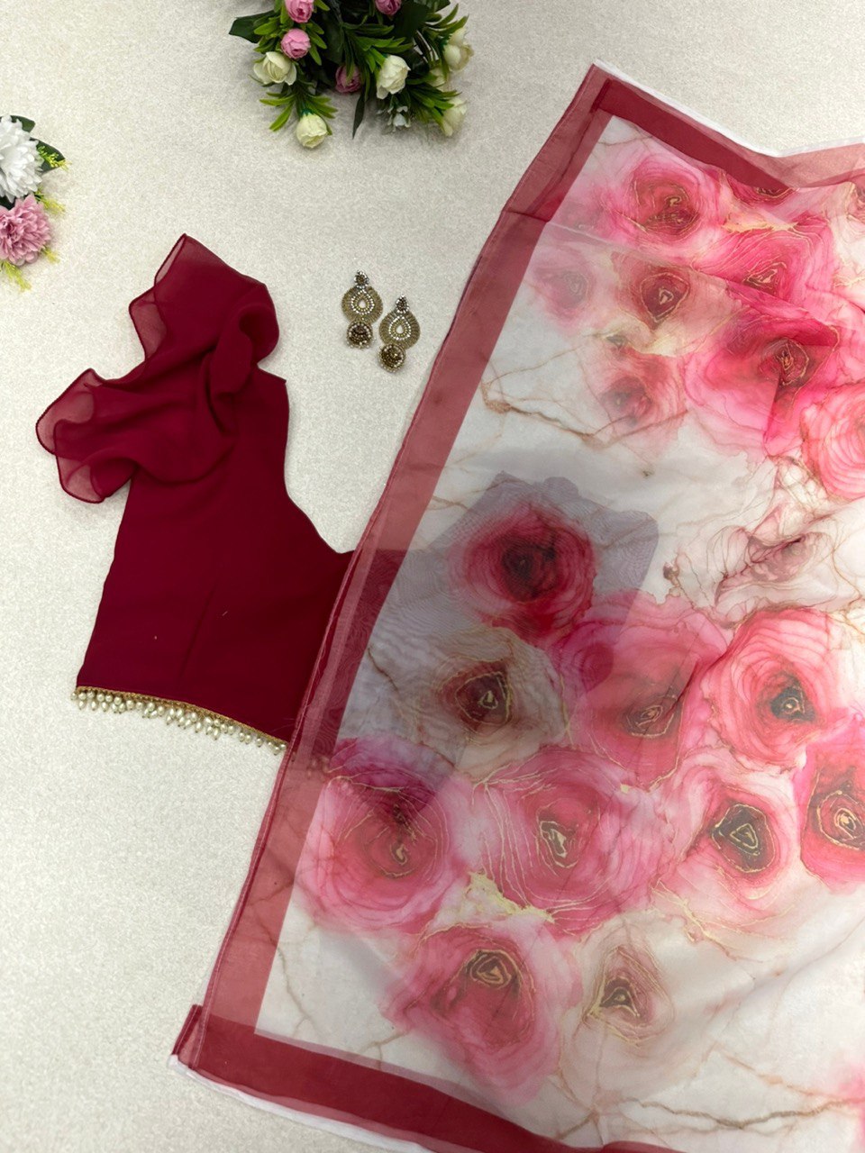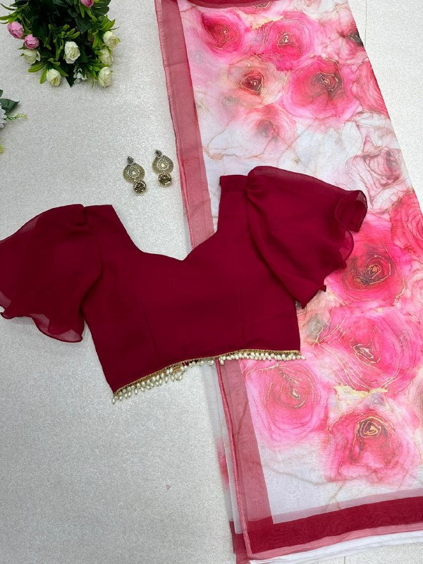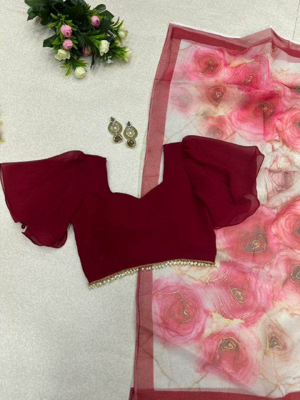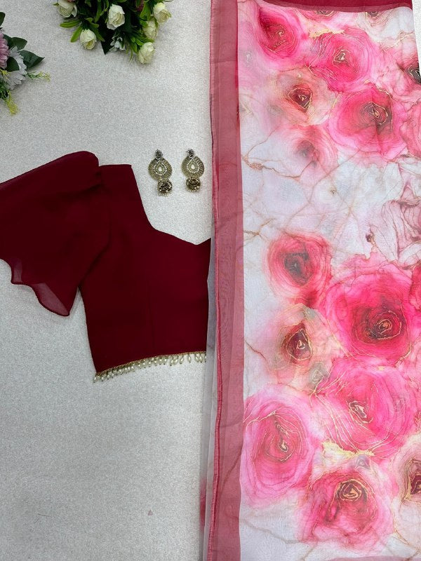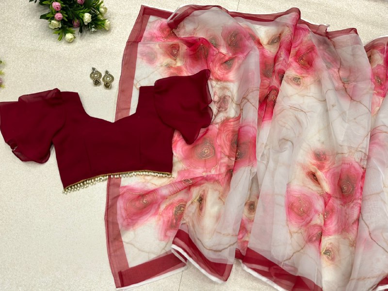 Saree- Pure organza silk floral printed saree