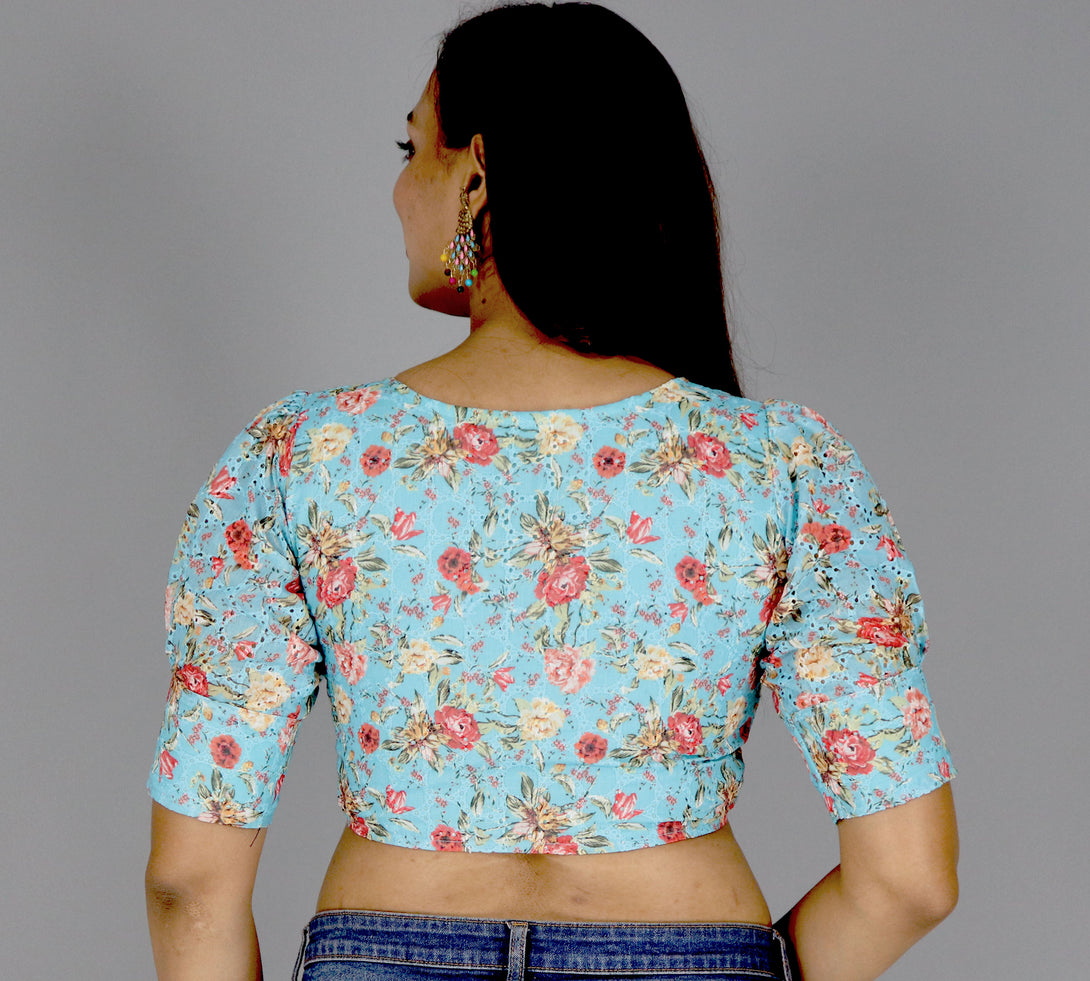 "Hakoba Harmony: Puff Sleeves with Digital Print Blouse"
