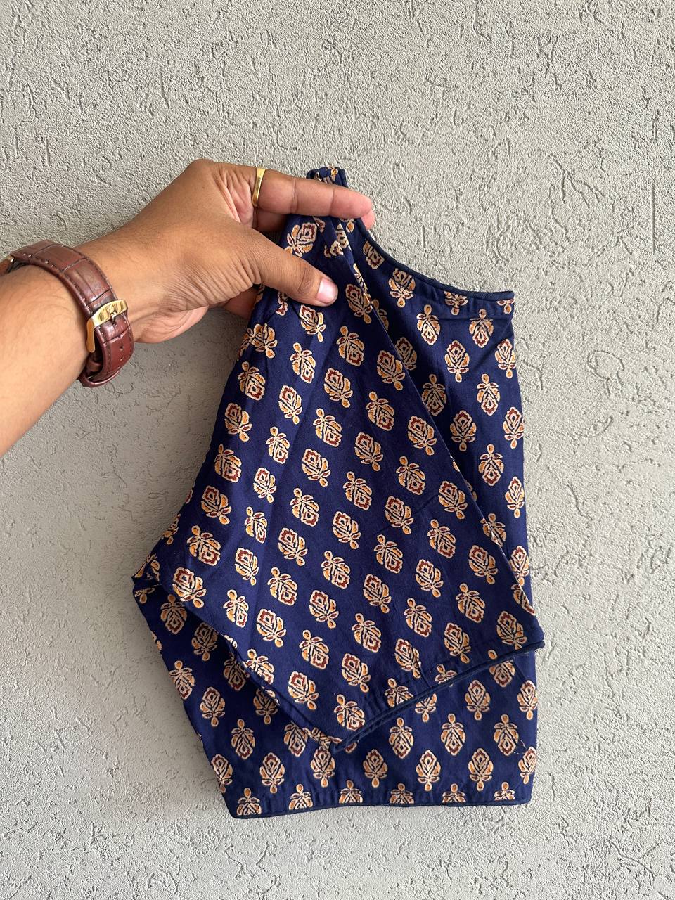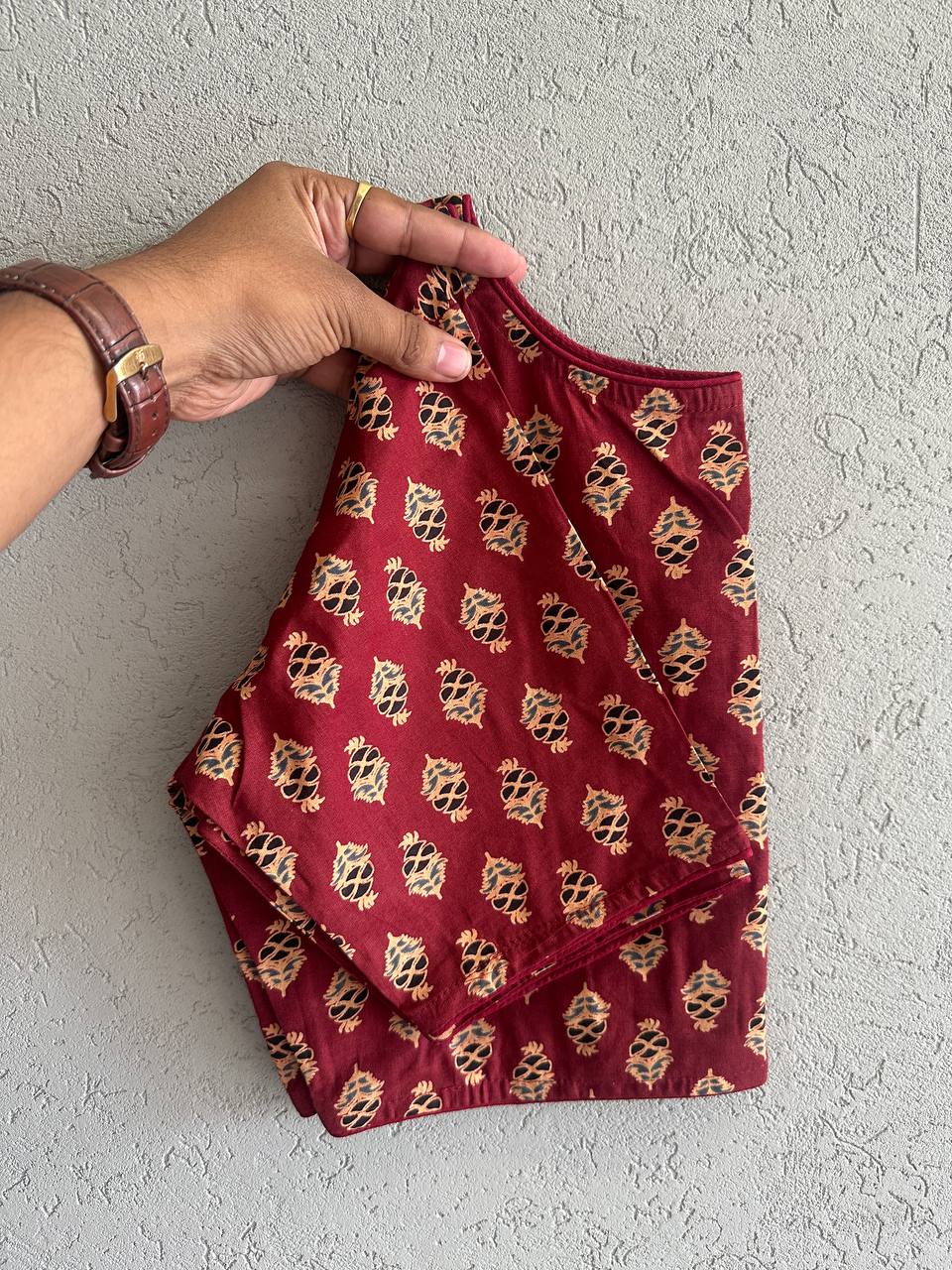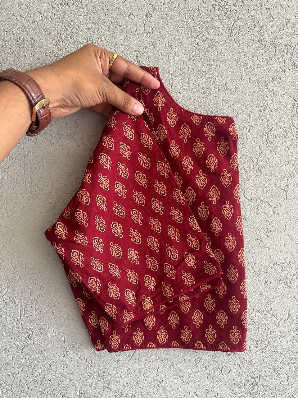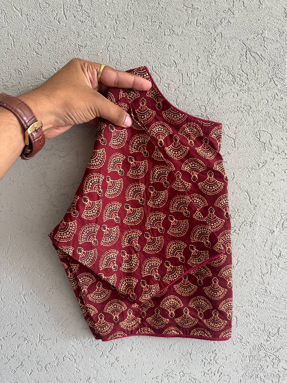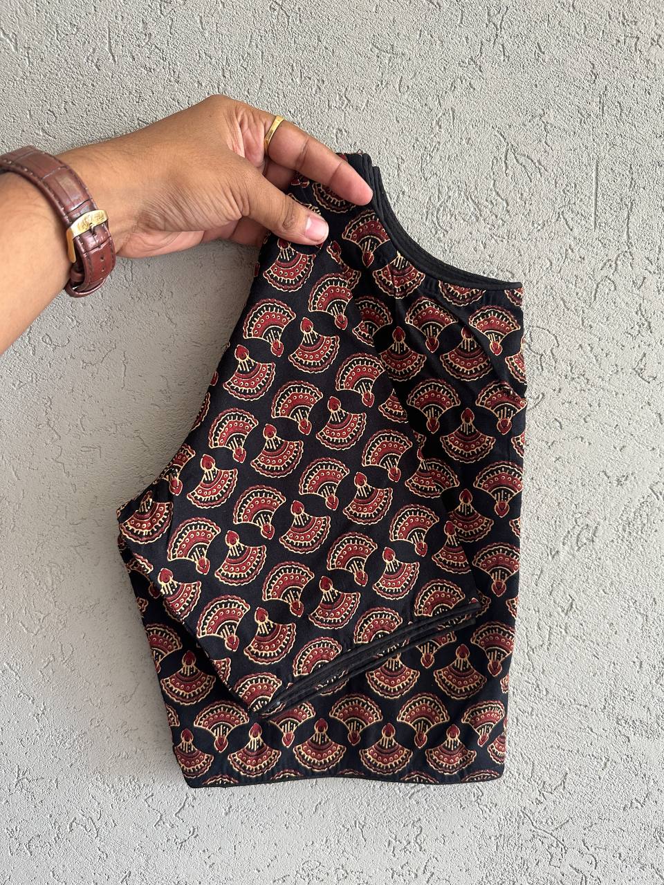 Ajrakh Cotton HandPrinted BoatNeck Blouse  Cotton Natural Dye Handblock Print BoatNeck Neck Blouse Length:- 15 Size:-32 to 42 Chest Size Making Size 38 Non Padded  Non Lining Hook front Open MOQ 1 Piece Also