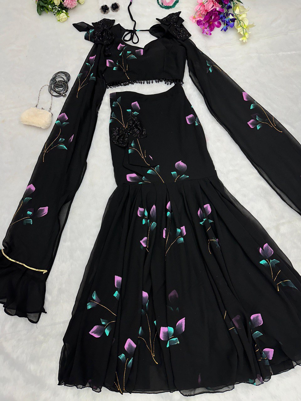 *lehnga* - Handpainted georgette lehnga with canvas patta and waist dori🌸 fully stitched