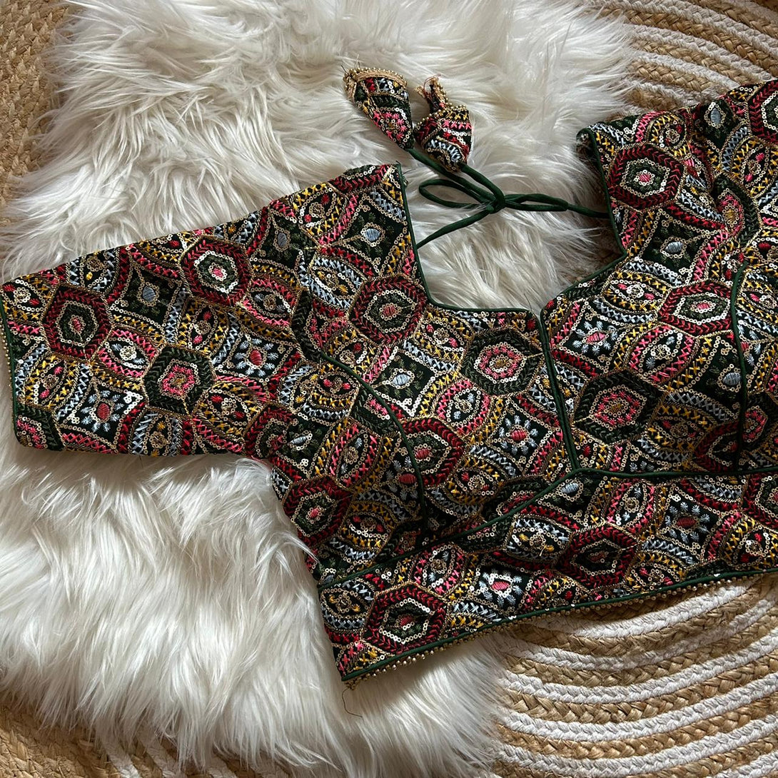 Presenting heavy georgette sequence and Multy work 10+ inch sleeves designer blouse