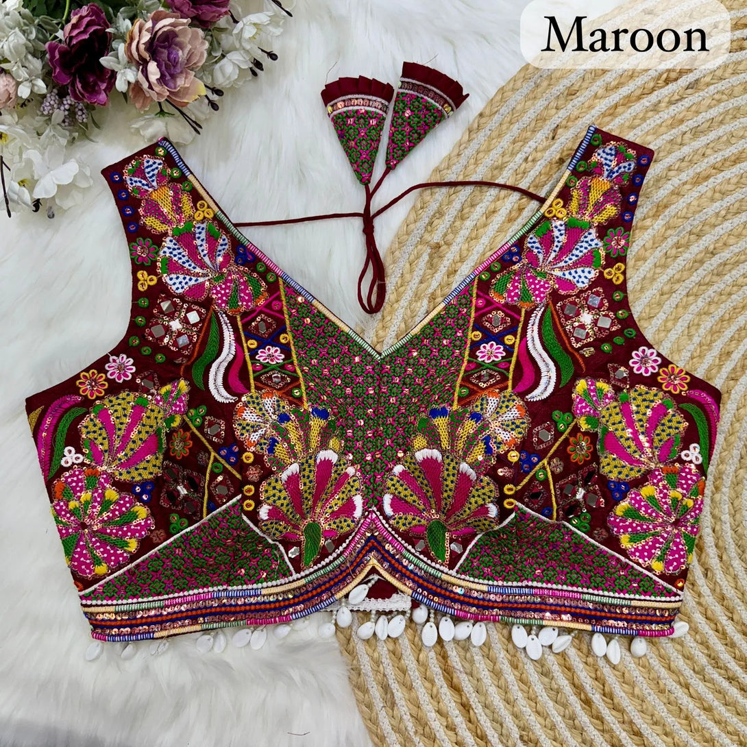 Heavy Embroidery+Sequence+Hand Mirror Work Blouse