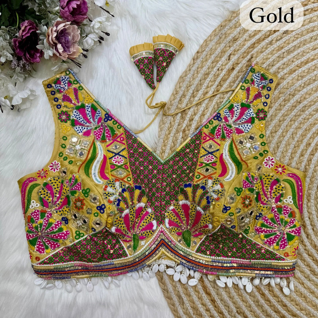 DESGINE:- Beautiful Traditional Blouse Heavy Stitching Heavy Padded With Beautiful Mirror Work BACK open Style