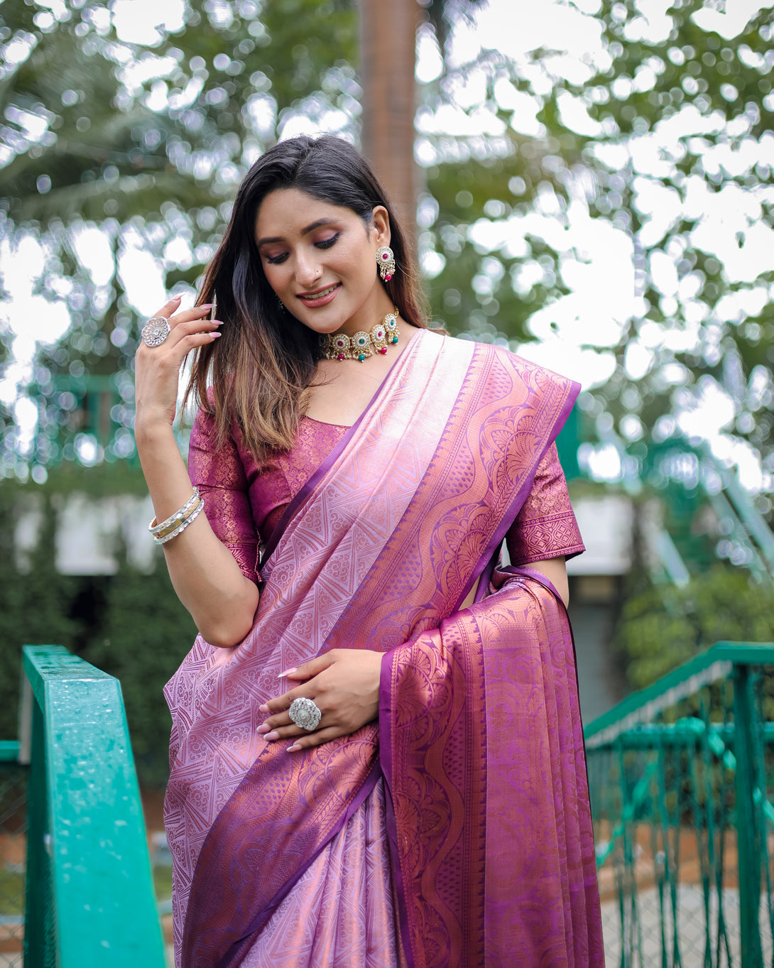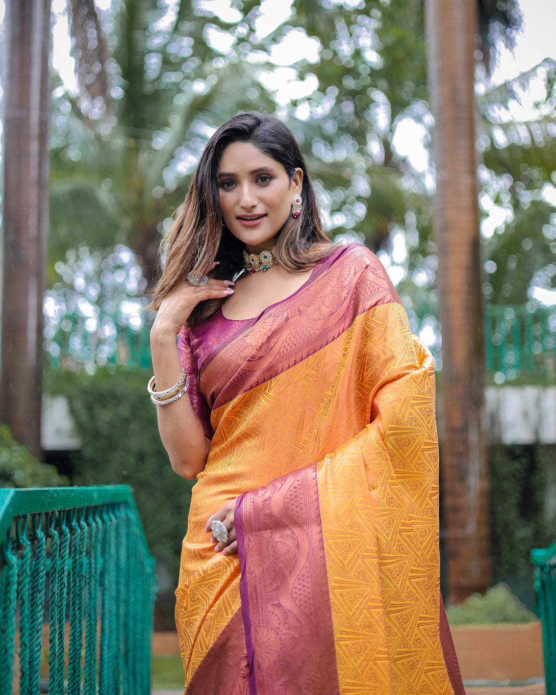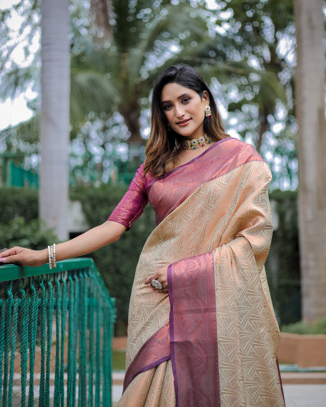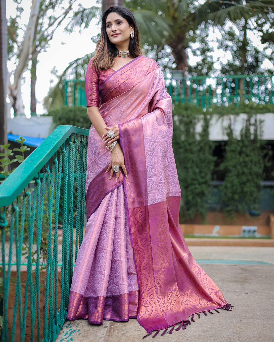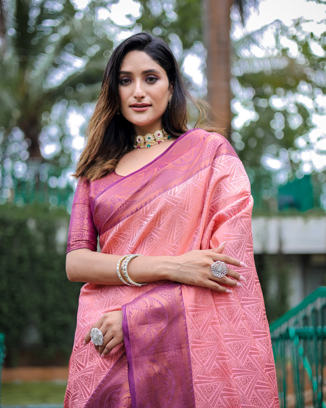 Kubera Pattu kanjivaram silk Chap dyeing copper zari Silk with two tone Border, contrast Rich Pallu And Brocade Blouse
