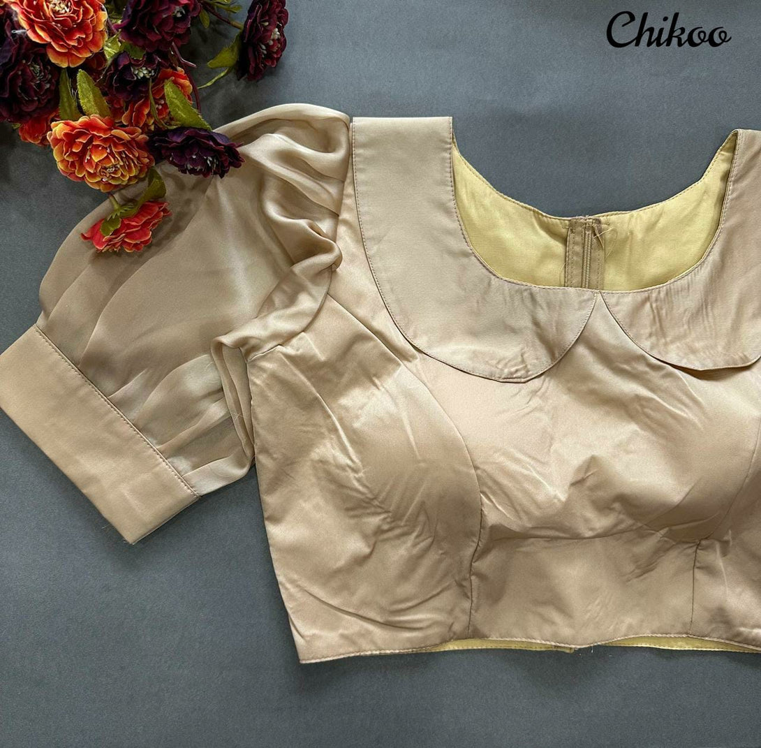 Introducing our Collar Mashru South Special Srivalli Blouse, a tribute to timeless elegance. Crafted from luxurious Mashru Silk, this Alterable Readymade Blouse is designed for sophistication and comfort. The Back With Chain opening adds a touch of allure, while the Cotton Lining and Padded Blouse ensure a perfect fit and silhouette. Embrace the charm of this unique piece inspired by South Special Srivalli fashion, where tradition meets contemporary style. Elevate your ensemble with the richness of Mashru Silk and make a statement that resonates with both grace and modernity. Redefine your fashion journey with this Collar Mashru Blouse, a true embodiment of timeless beauty.