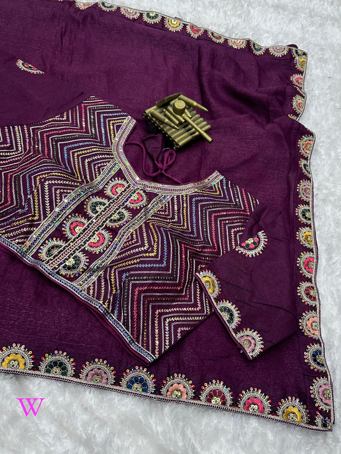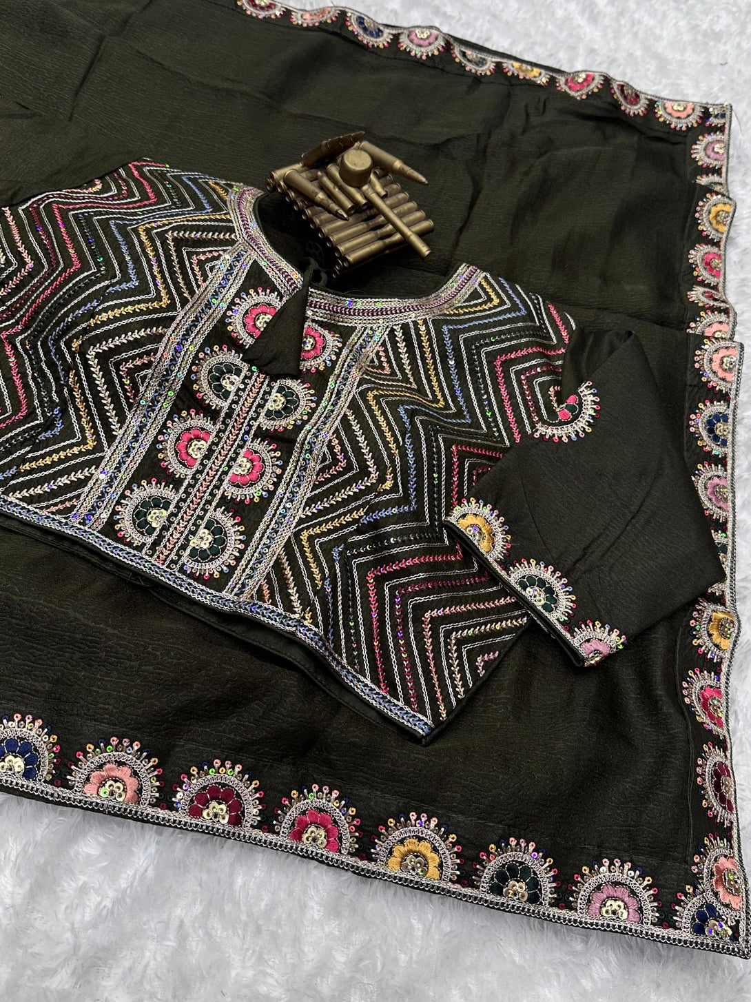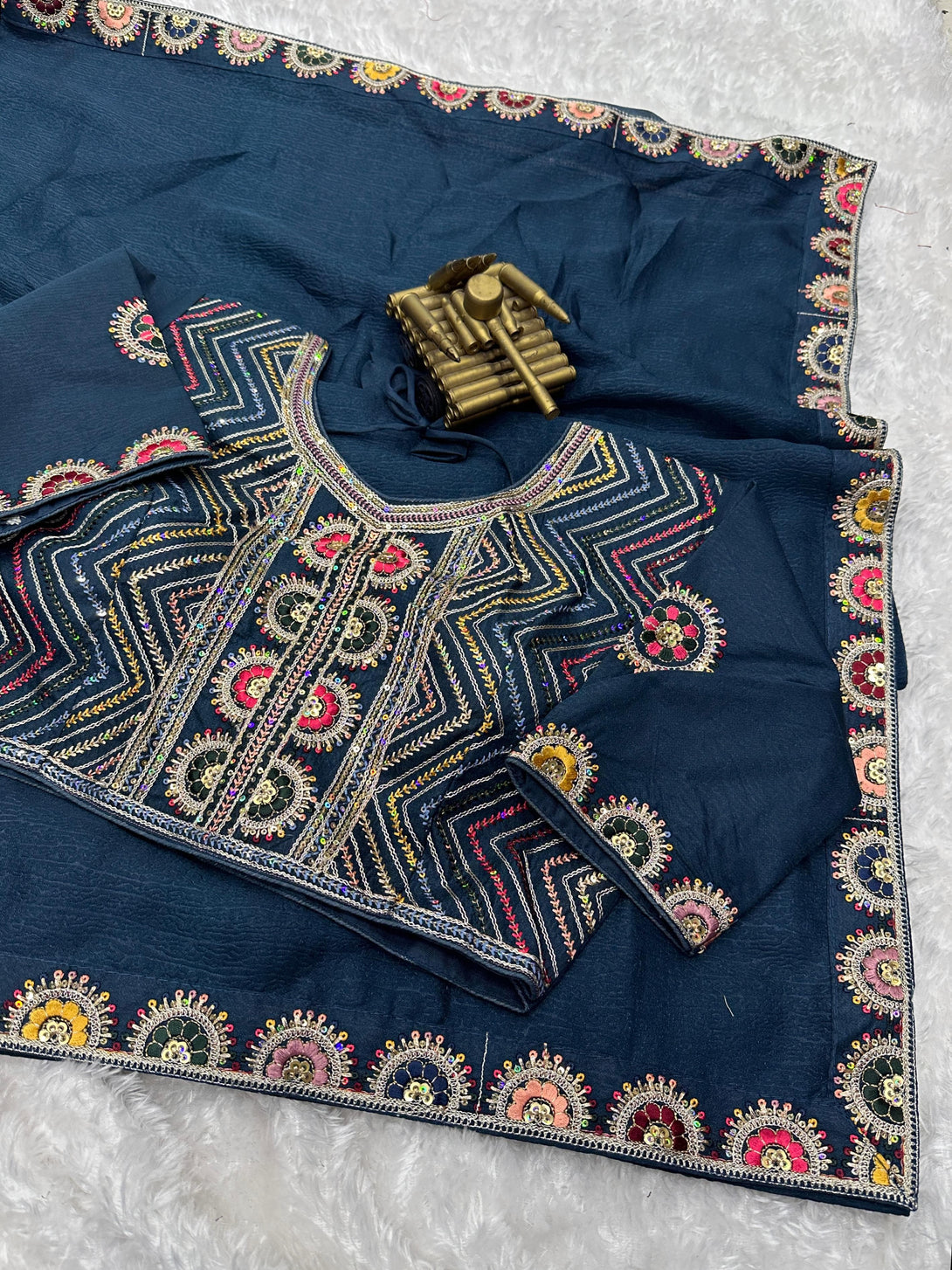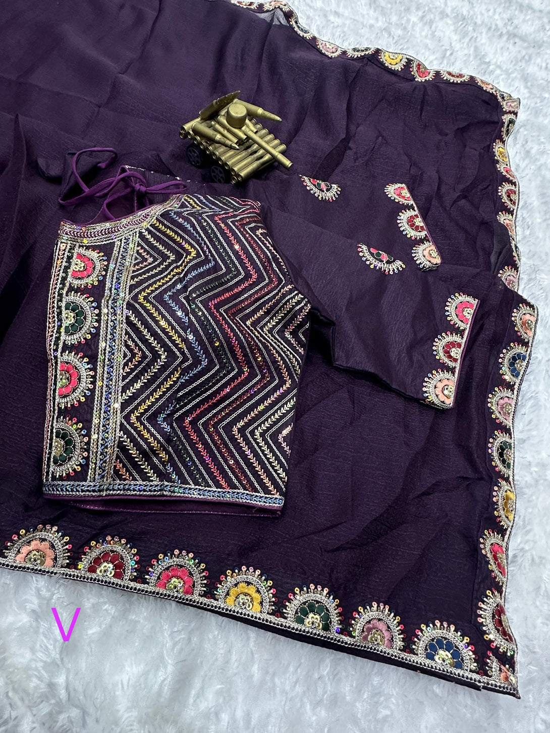 Pattern- 9 colored Multi thread Embroidered work with sequins work lace in saree with Work blouse