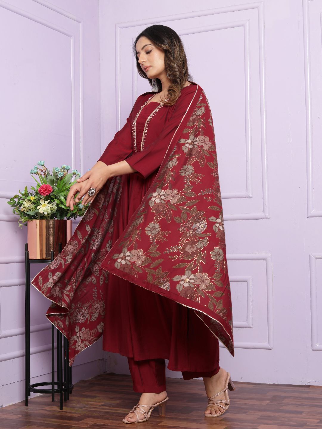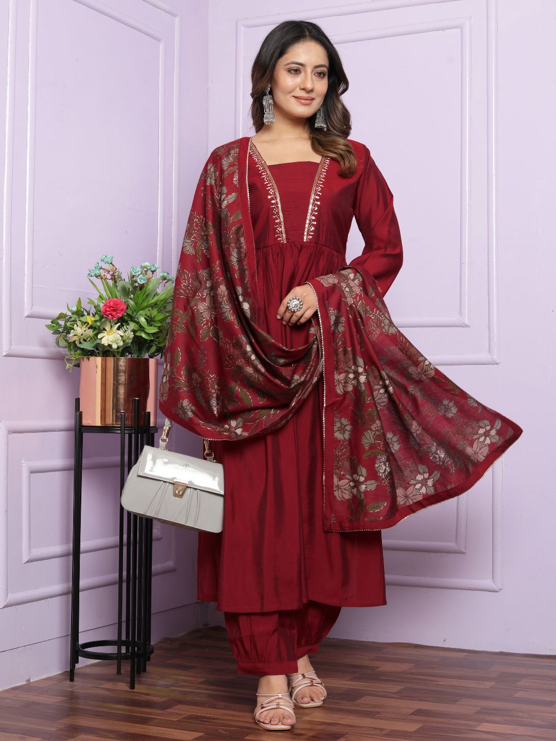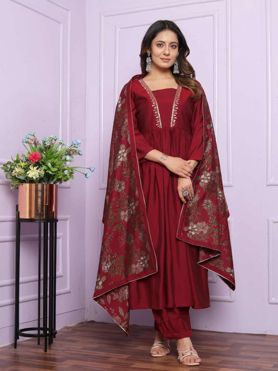 Style :- V Neck , Gher Kurti With Afghani Pent