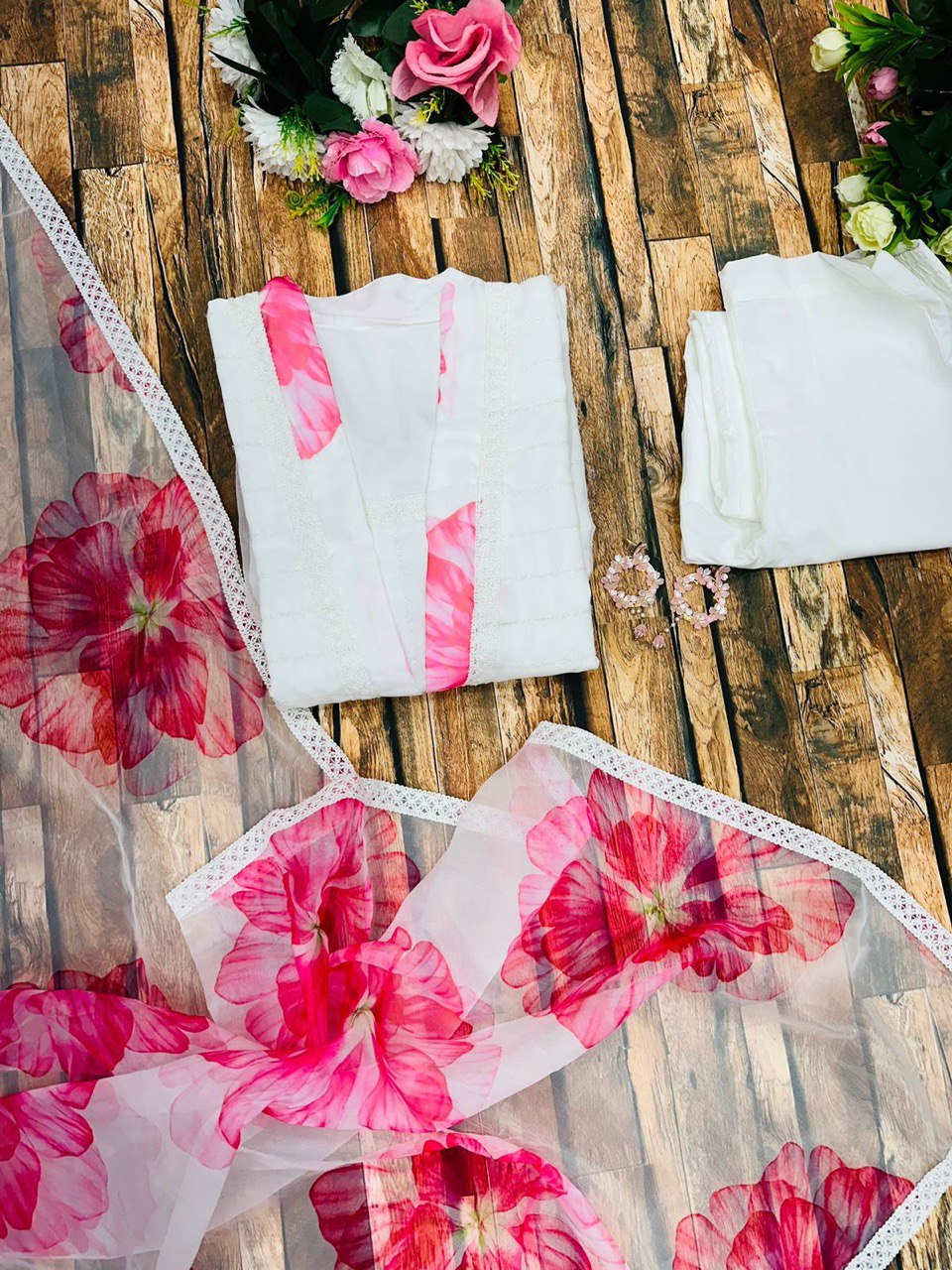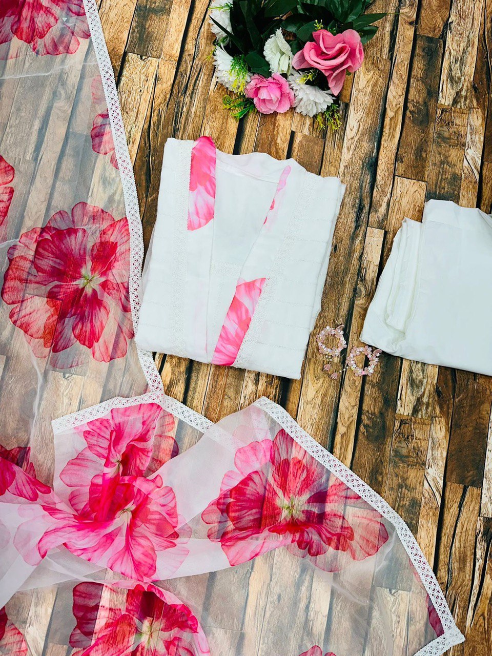Kurta - Organza furr fabric and organza printed kurta with lace border