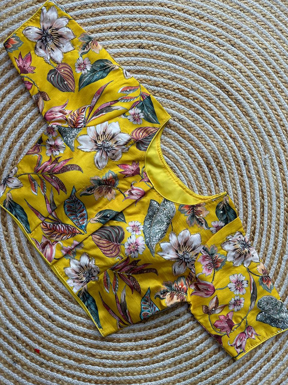 Elevate your attire with our Pure Silk With Hand Work Alterable Readymade Blouse, a true epitome of sophistication. Designed in a Front Hook Princess Style with an exquisite Cutwork Neck, this blouse seamlessly blends modernity with traditional craftsmanship. The luxurious Pure Silk fabric adorned with delicate Hand Work adds a touch of elegance to your ensemble. Crafted for comfort and style, this blouse is not only a versatile choice for various occasions but also an invitation to redefine your fashion statement. Enhance your wardrobe with this timeless piece that effortlessly complements your style and showcases the artistry of handcrafted details.