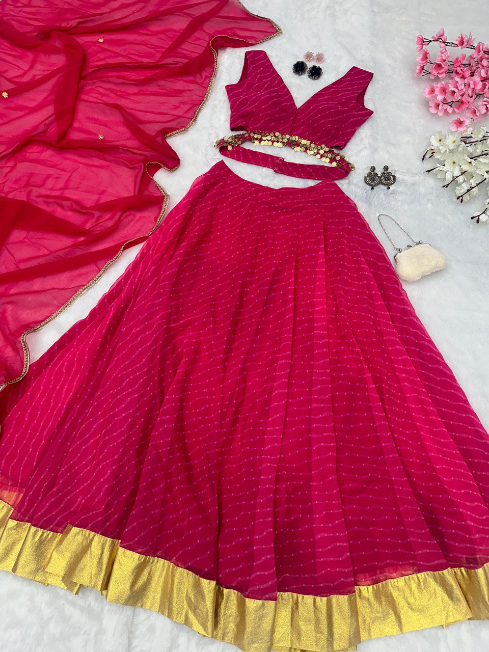 *lehnga* - Printed georgette lehnga with canvas patta and waist dori🌸 fully stitched