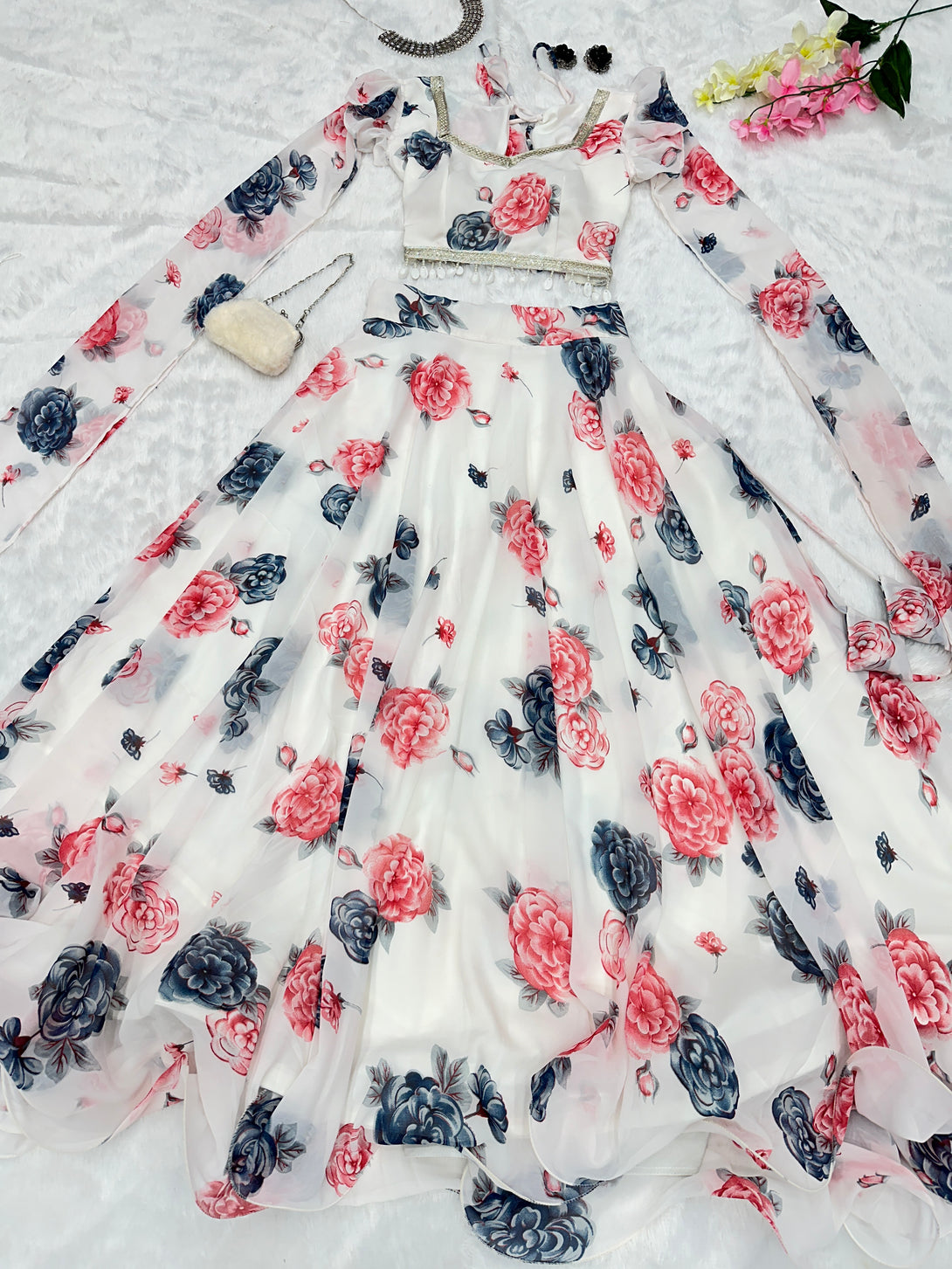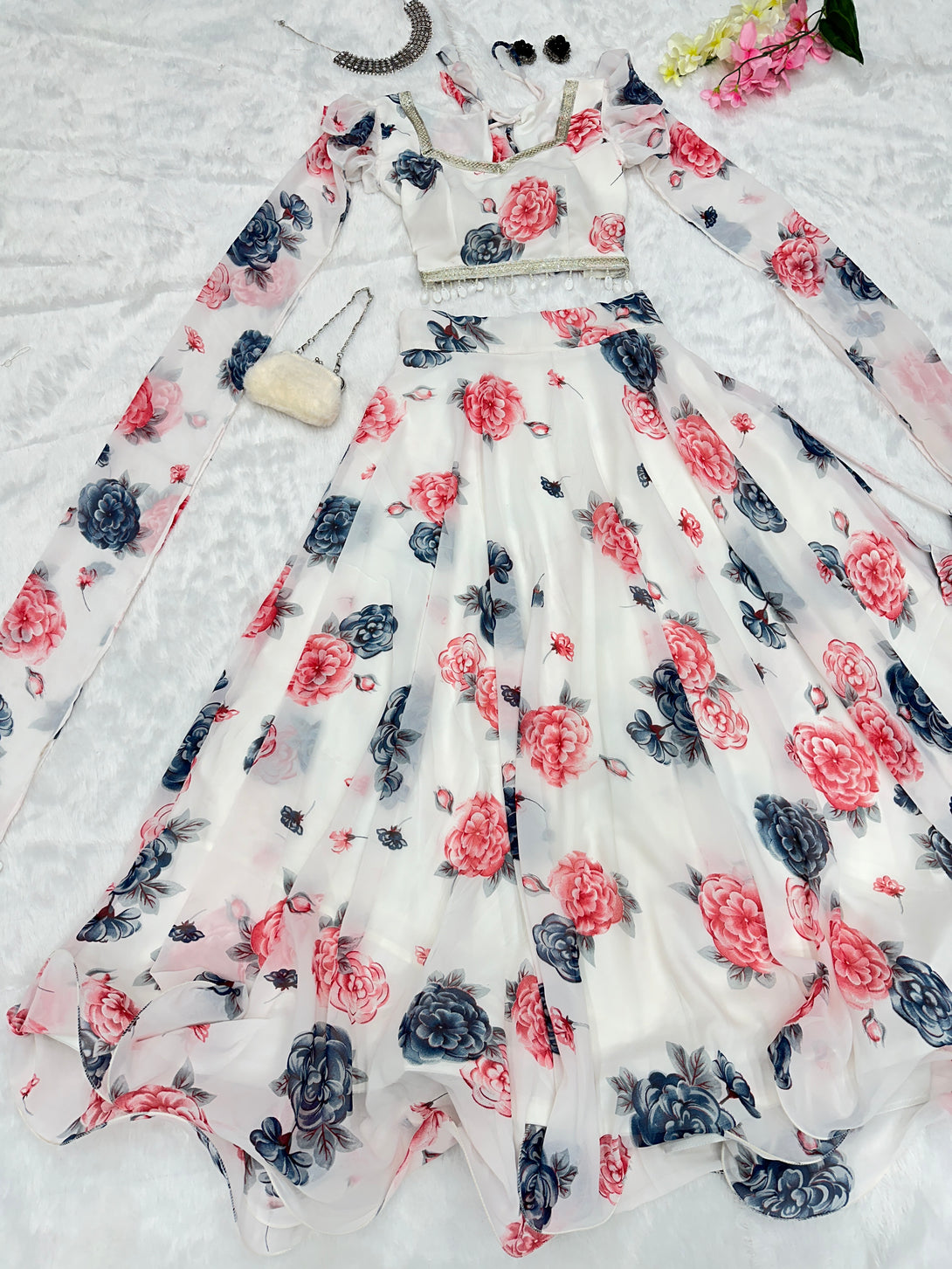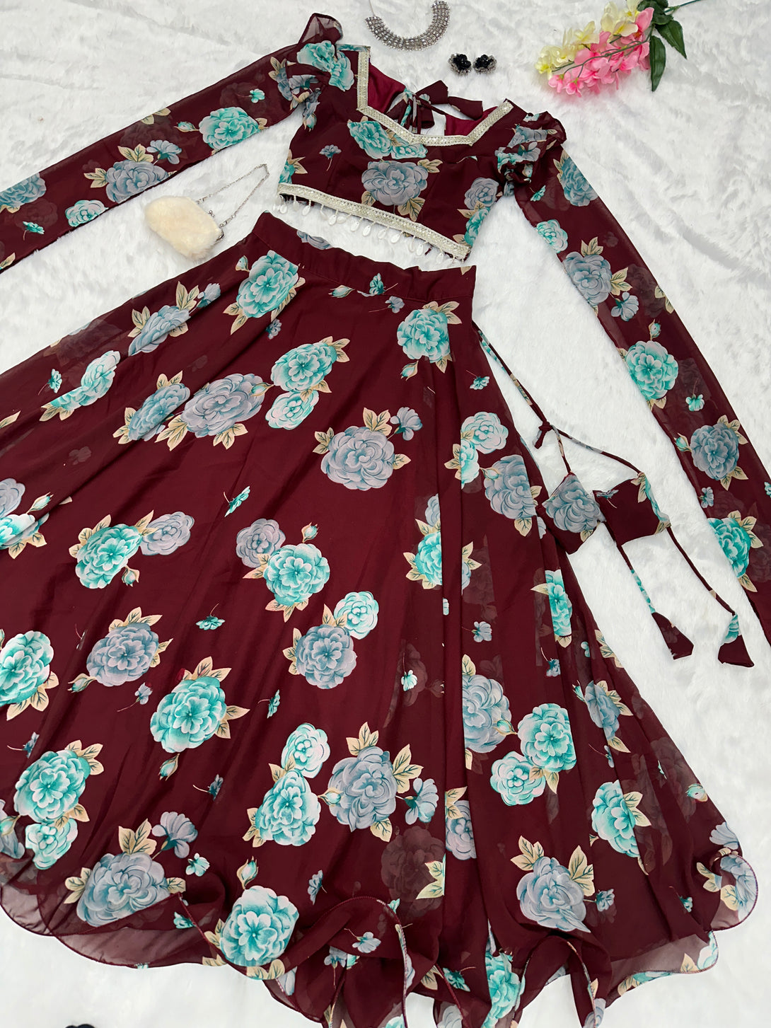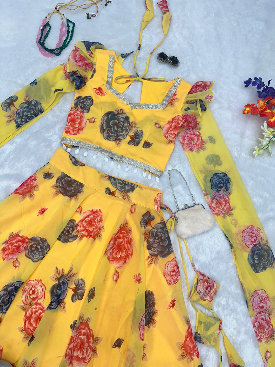lehnga - Printed georgette lehnga with canvas patta and waist dori fully stitched