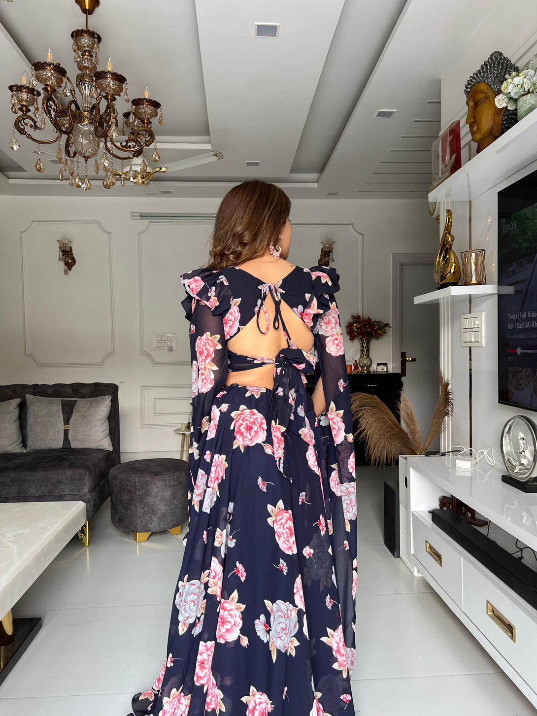 * Blouse * - Printed georgette blouse with handcrafted nd designer lace work ! Attached Dupatta pattern blouse fully stitched size 38 ( margin given )