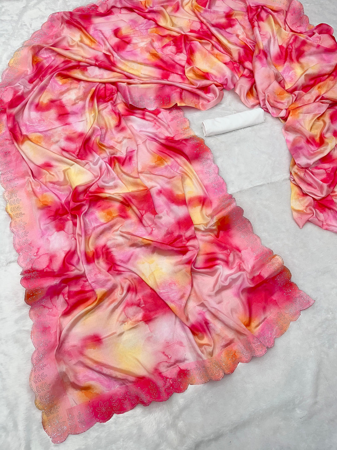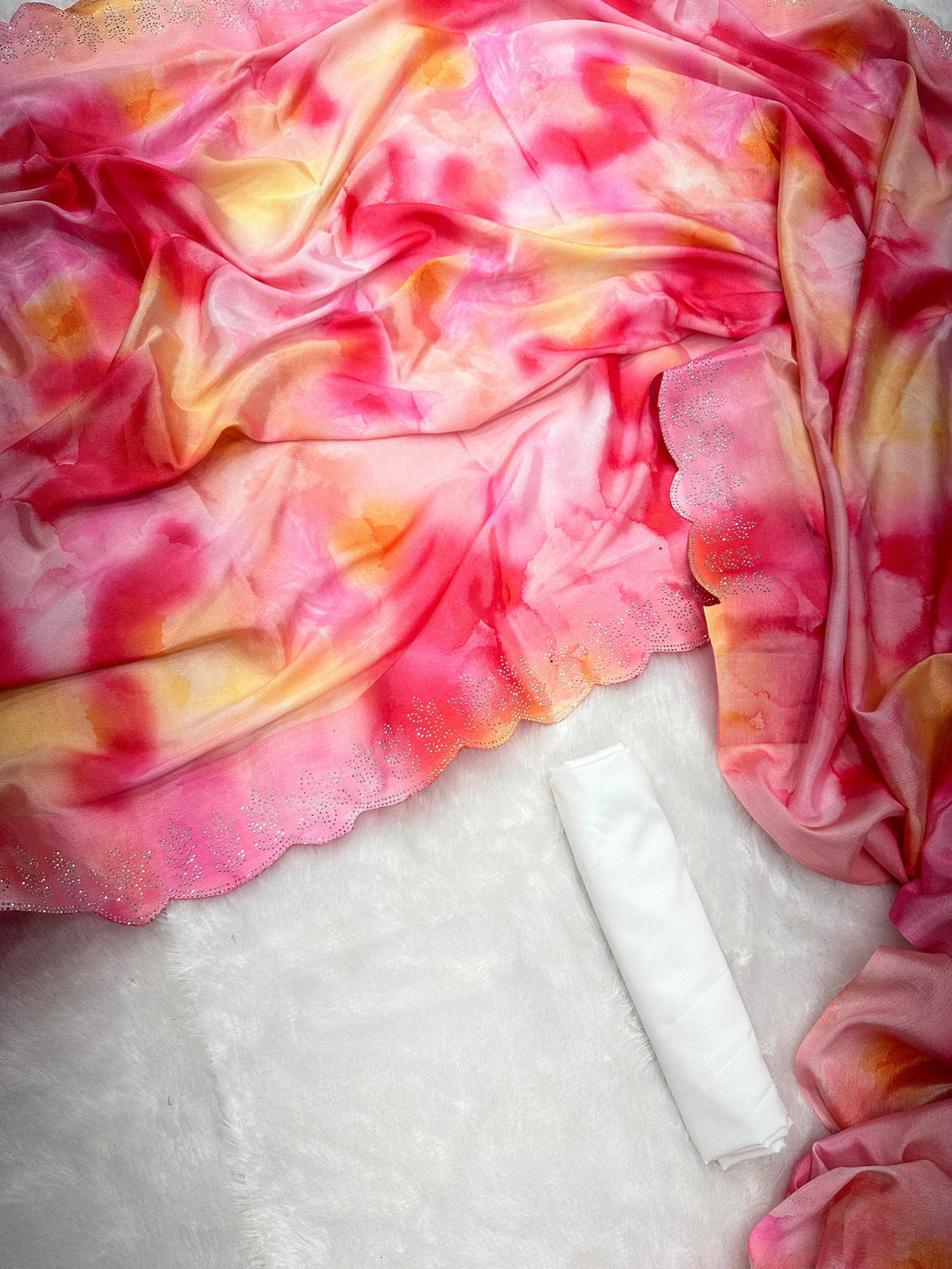 Saree - Pure Chinon digital printed saree with Swarovski Diamond work