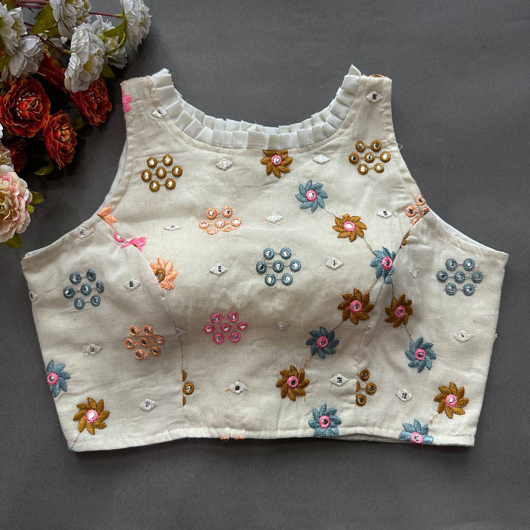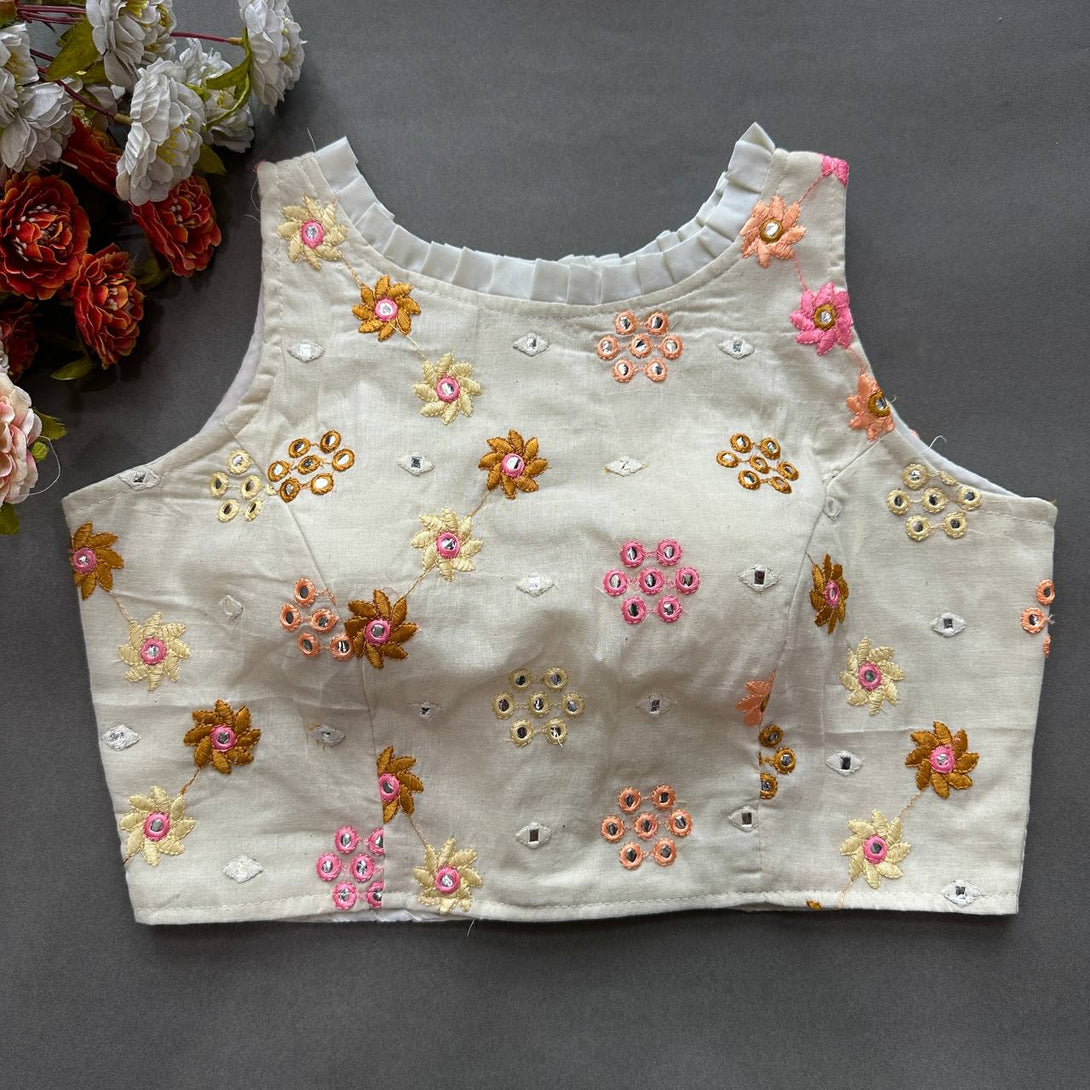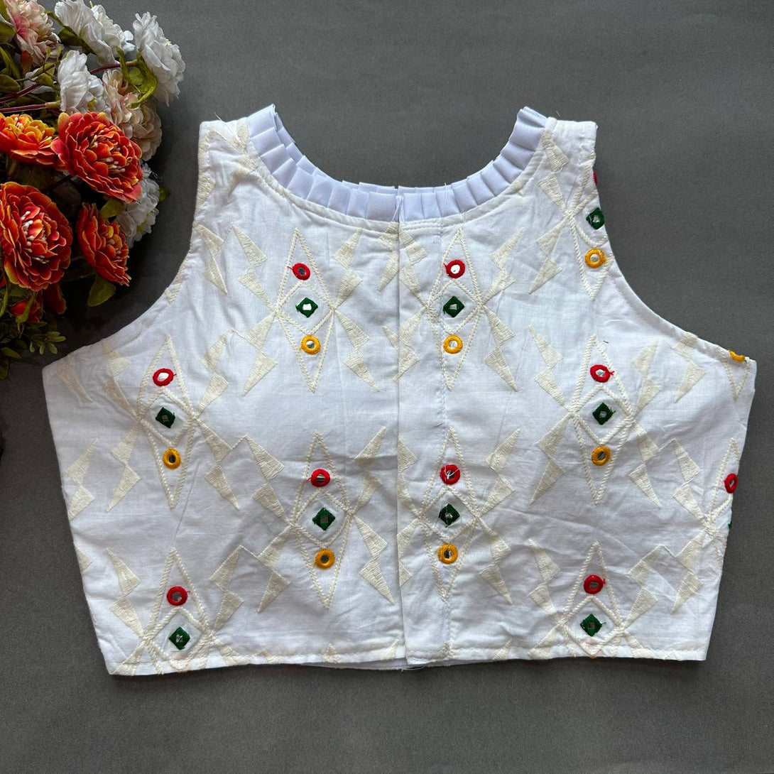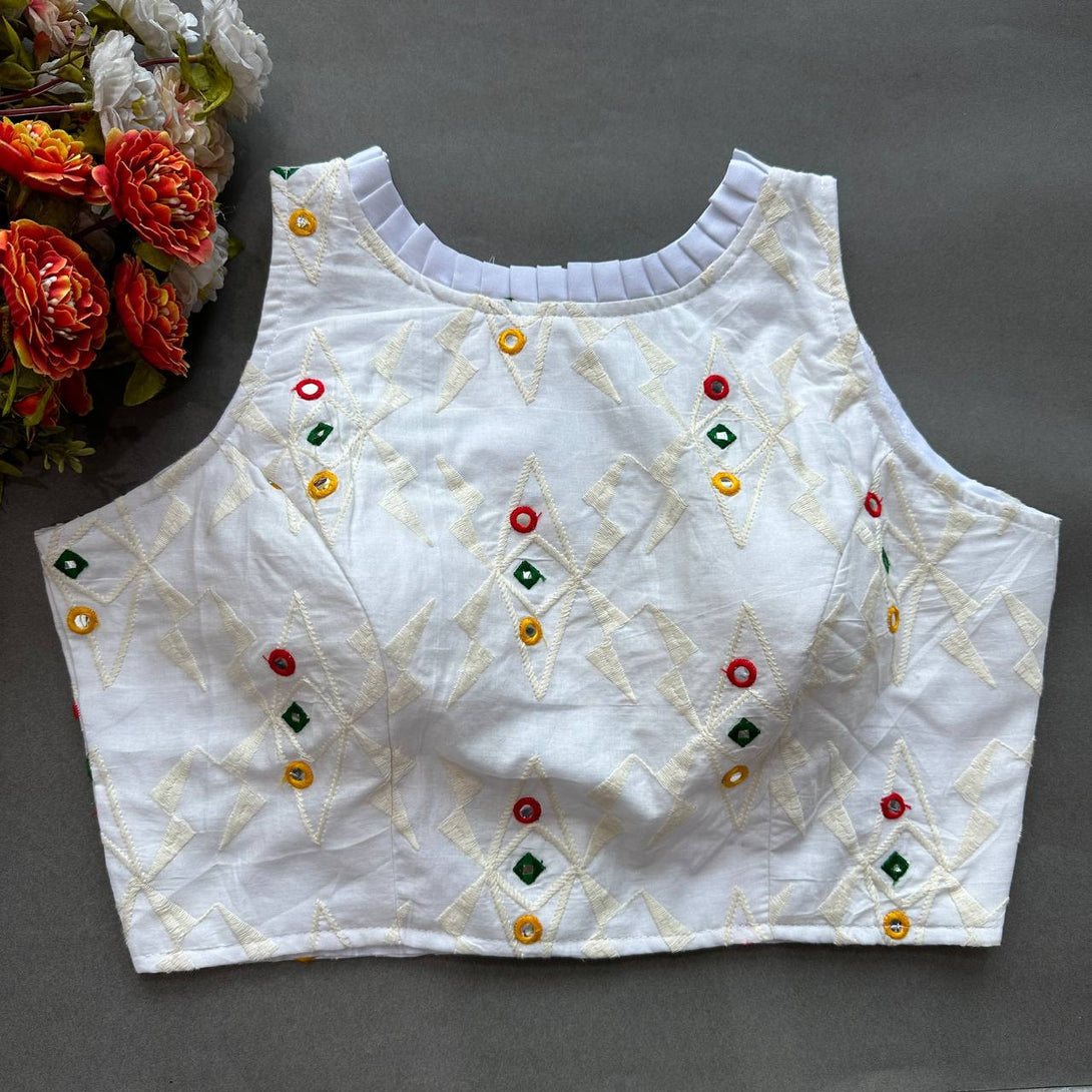 Explore timeless elegance with our Pure Cotton Alterable Readymade Blouse. Featuring exquisite Diable Work in Chifli Pure Cotton, this blouse offers a height of 14.5 inches and a Sleeveless design for a chic appeal. The inclusion of Padded and Double Cotton Lining ensures both comfort and a flattering silhouette. The Back with Hook opening adds a classic touch, making it a versatile choice for various occasions. Elevate your ensemble with the understated beauty of this Pure Cotton Blouse, designed for comfort and style that transcends trends.