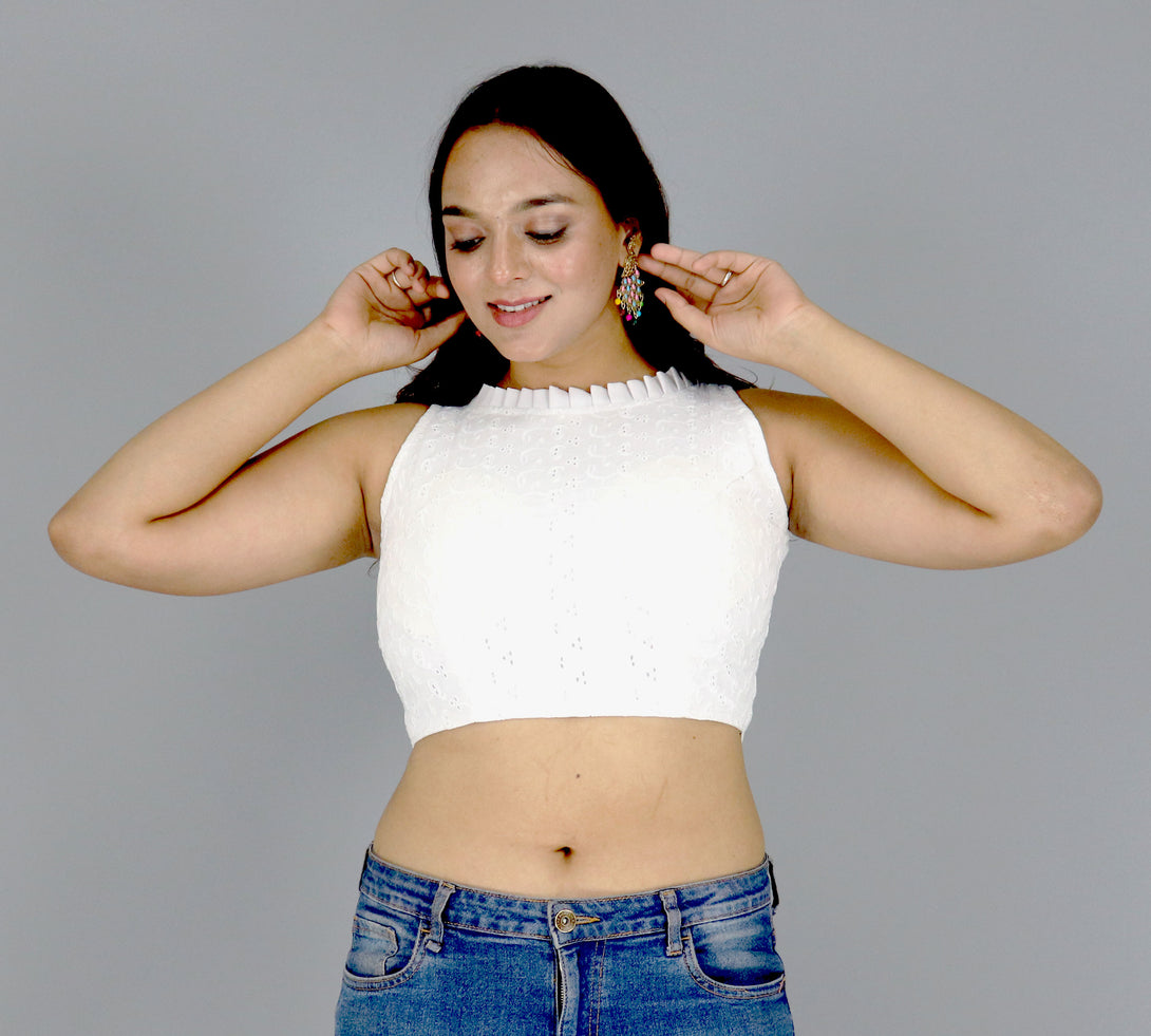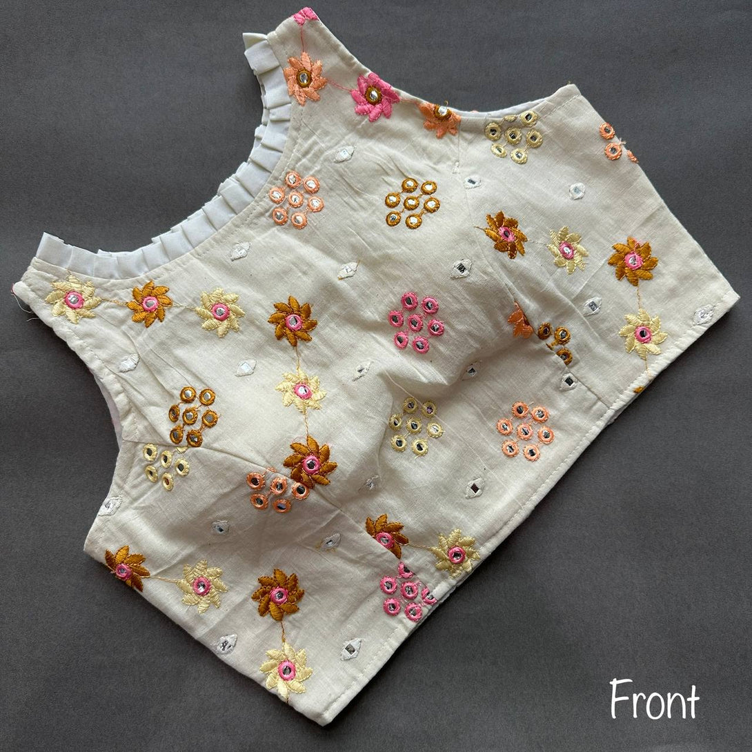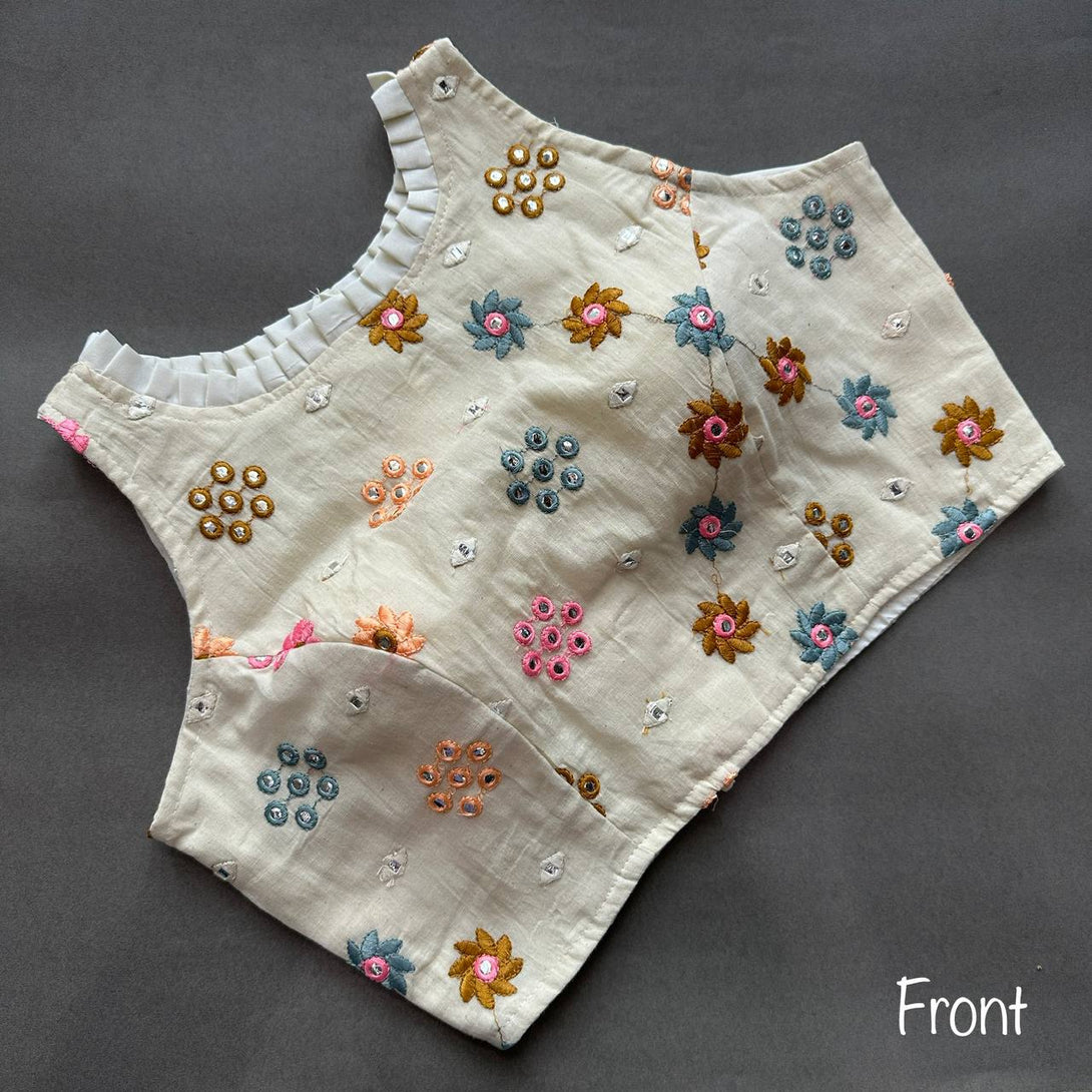 Explore timeless elegance with our Pure Cotton Alterable Readymade Blouse. Featuring exquisite Diable Work in Chifli Pure Cotton, this blouse offers a height of 14.5 inches and a Sleeveless design for a chic appeal. The inclusion of Padded and Double Cotton Lining ensures both comfort and a flattering silhouette. The Back with Hook opening adds a classic touch, making it a versatile choice for various occasions. Elevate your ensemble with the understated beauty of this Pure Cotton Blouse, designed for comfort and style that transcends trends.