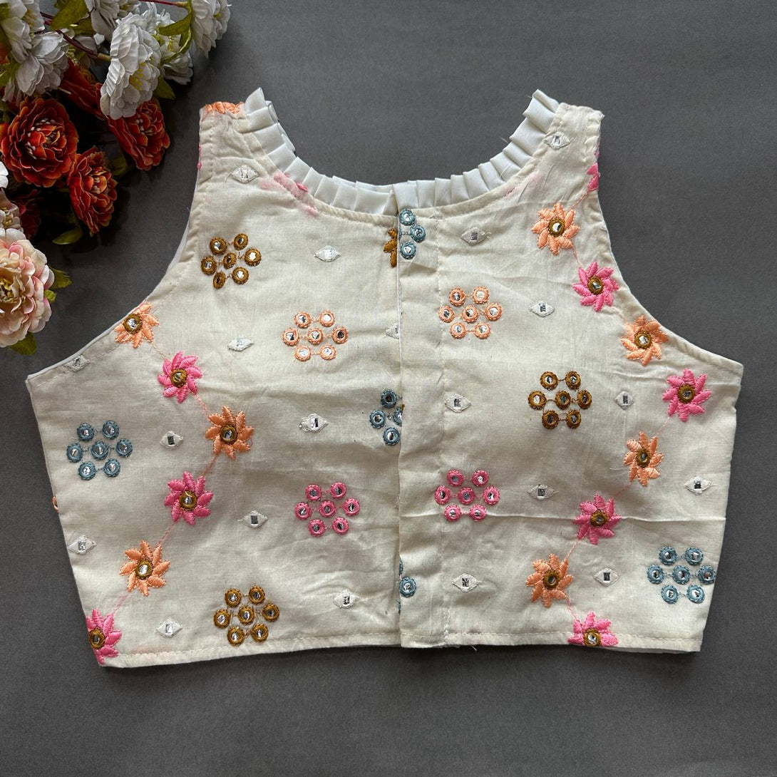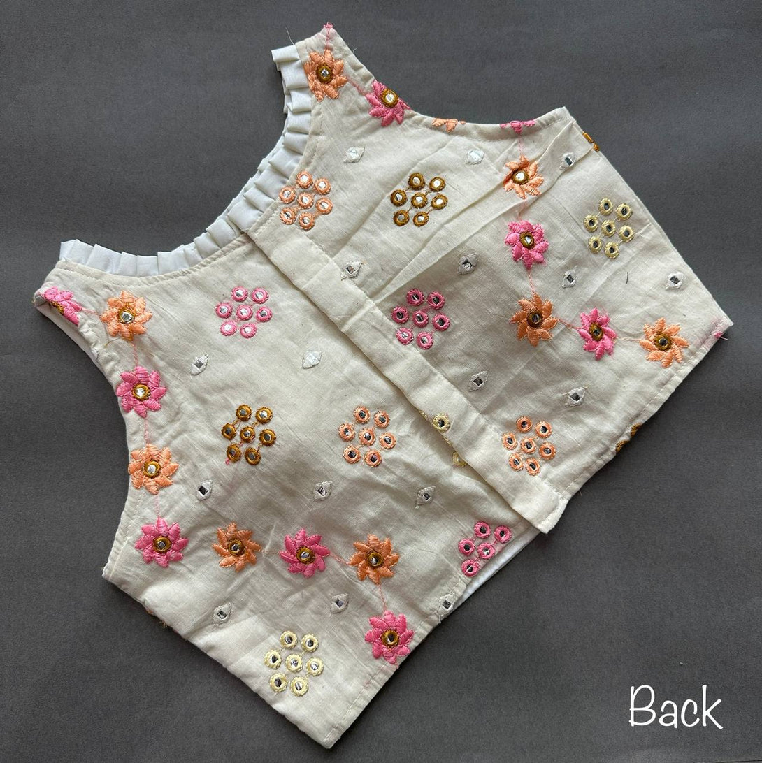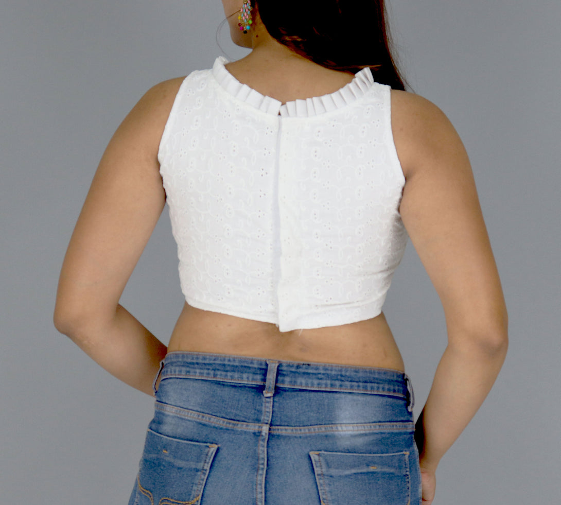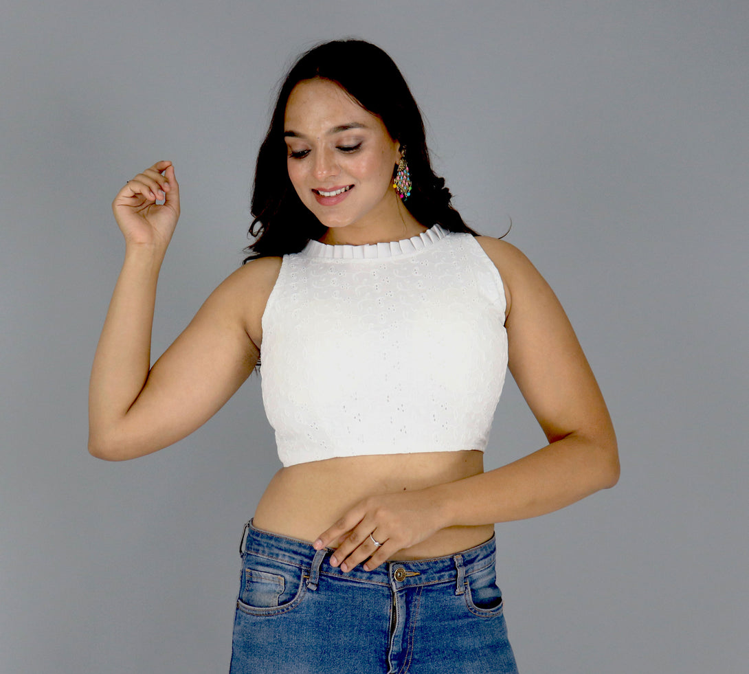 Explore timeless elegance with our Pure Cotton Alterable Readymade Blouse. Featuring exquisite Diable Work in Chifli Pure Cotton, this blouse offers a height of 14.5 inches and a Sleeveless design for a chic appeal. The inclusion of Padded and Double Cotton Lining ensures both comfort and a flattering silhouette. The Back with Hook opening adds a classic touch, making it a versatile choice for various occasions. Elevate your ensemble with the understated beauty of this Pure Cotton Blouse, designed for comfort and style that transcends trends.