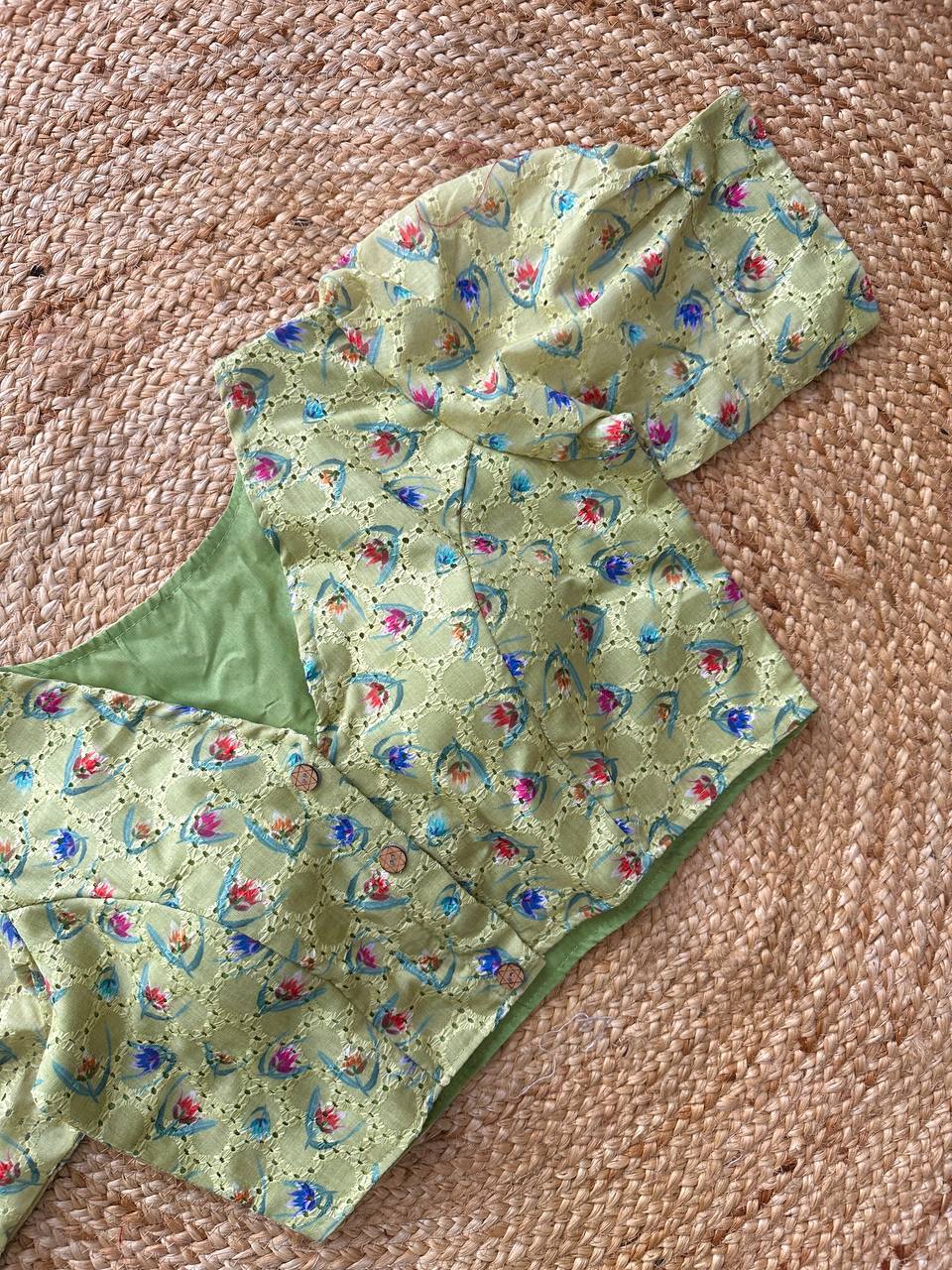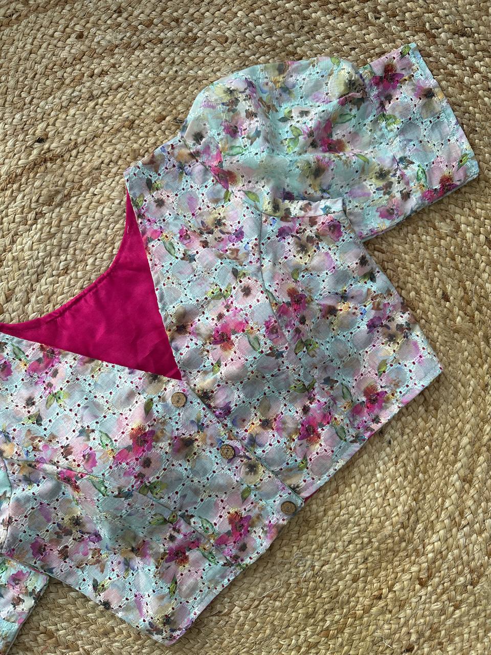 Indulge in the allure of Pure Cotton Hakoba with our captivating 12-inch elbow sleeves and a chic 15-inch height, adorned with a playful Football design. Elevate your style effortlessly with a touch of sophistication in every detail. This distinctive piece features a front open design, enhanced by Hook n Fancy Buttons for a trendy appeal. Embrace comfort and style with the convenience of padded support. The unique pattern of Puff Sleeves adds a charming twist to your ensemble, making it a fashion-forward choice. Unveil a new level of elegance and make a statement with this exquisite and meticulously crafted wardrobe essential.