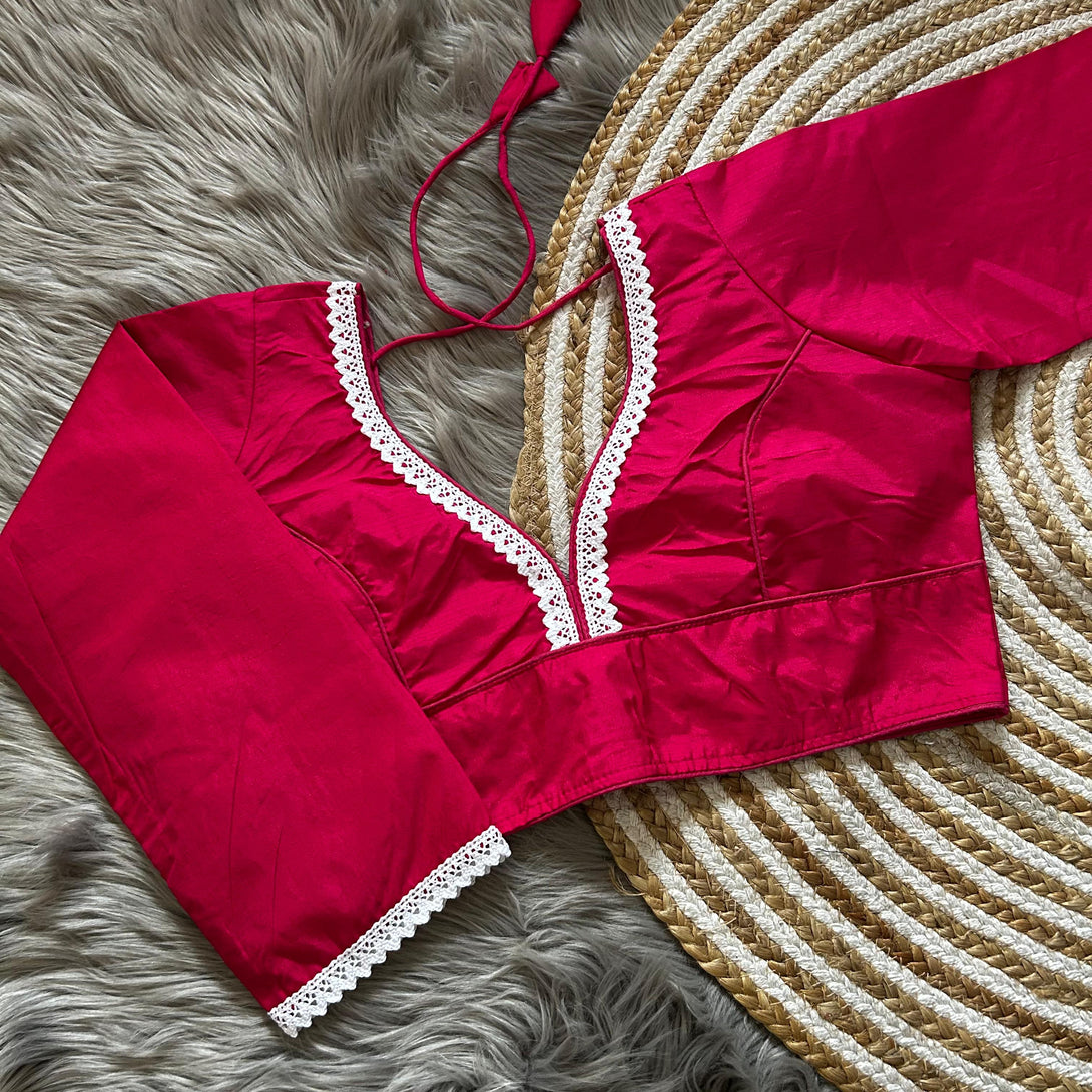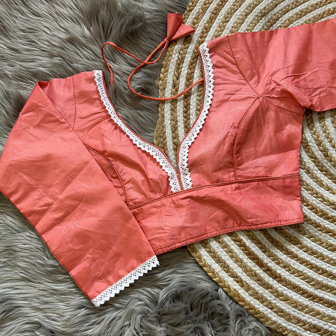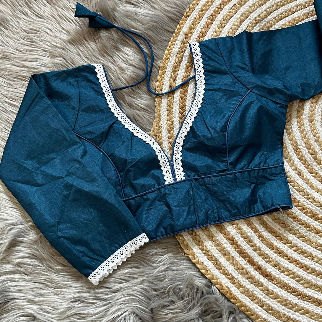 Presenting Non pad with 21+ inch sleeves with allover lace designer blouse