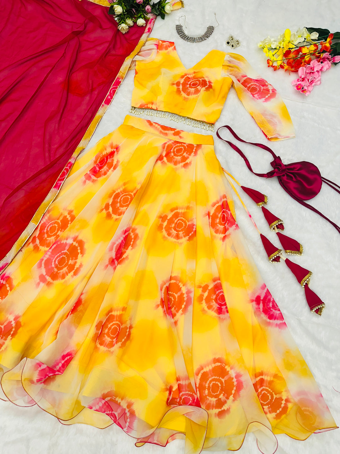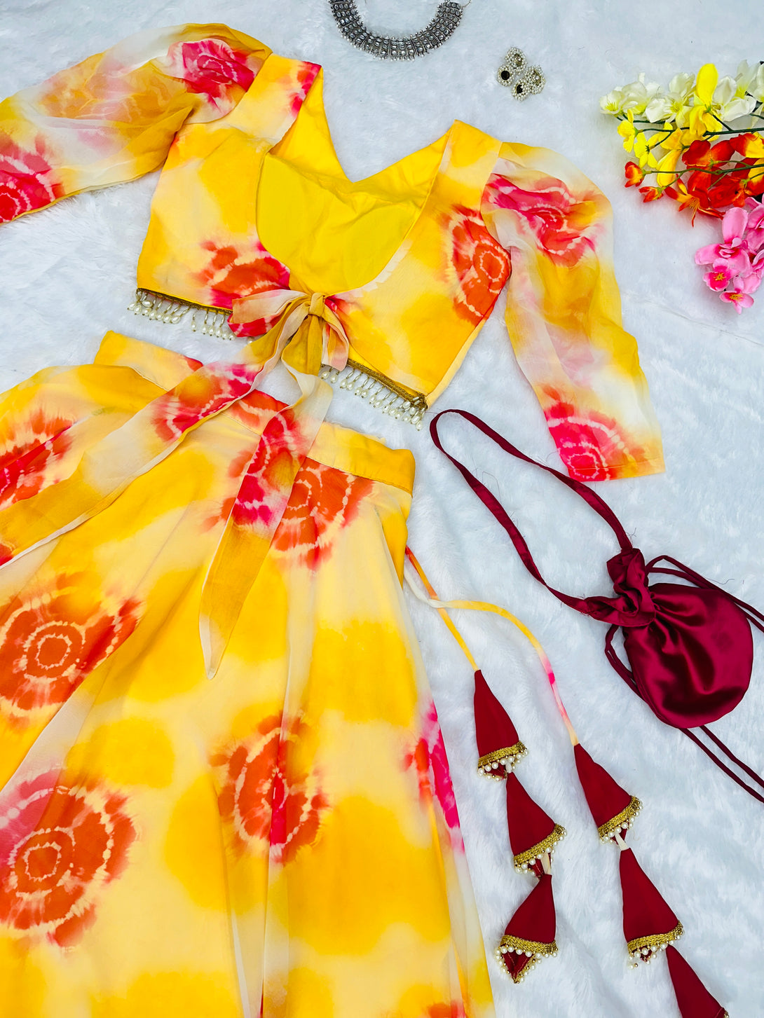 Pure Georgette digital printed lehenga with Designer Handcrafted Waist Dori