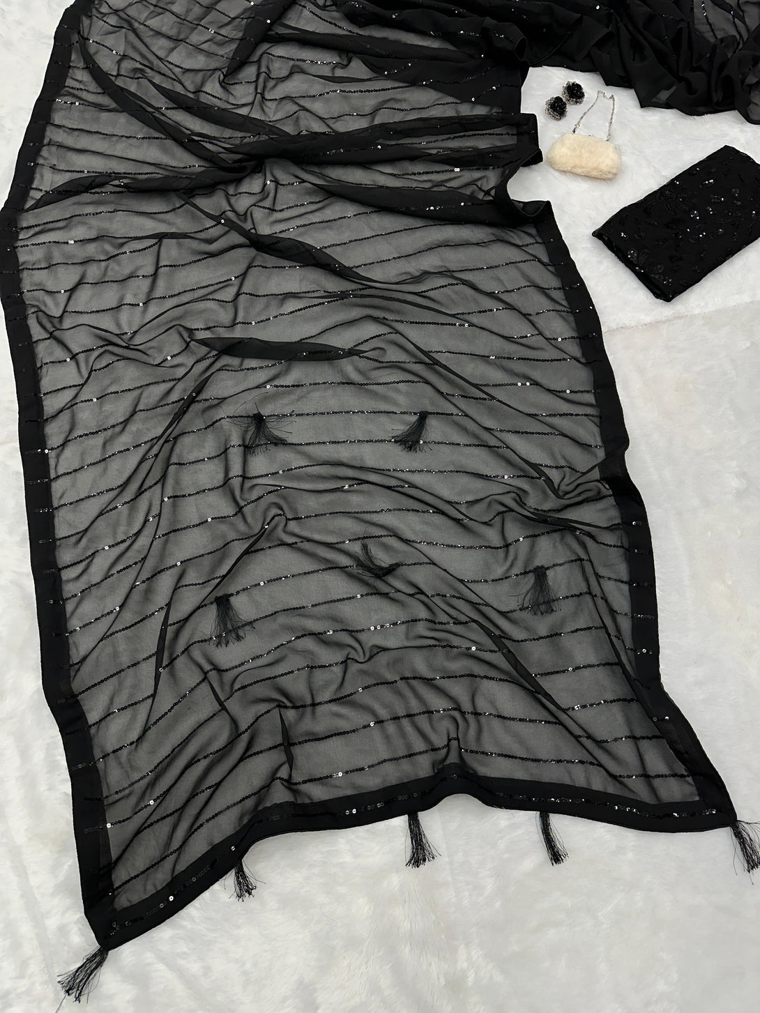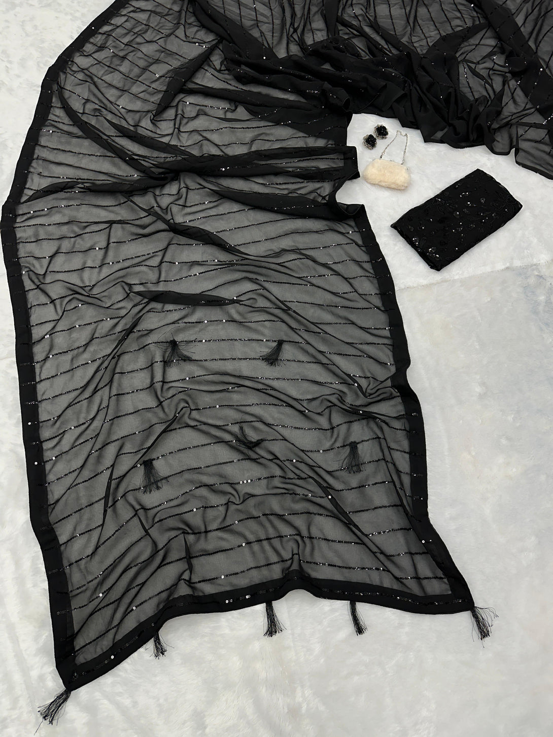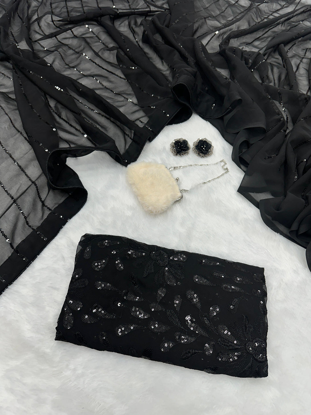 Saree - Pure Georgette fabric with Embroidery Sequins work saree
