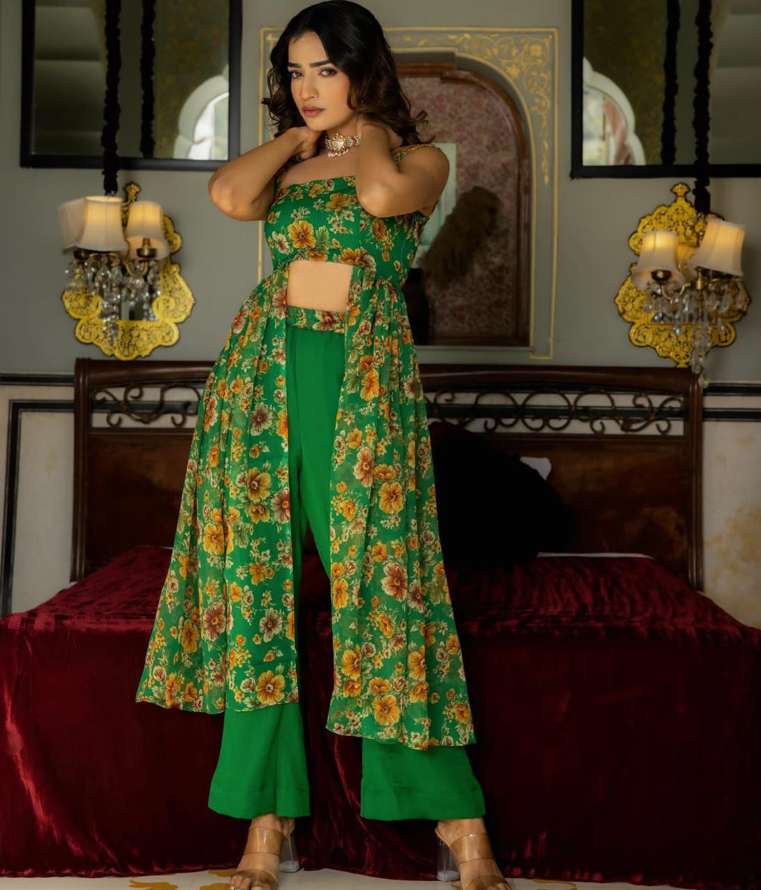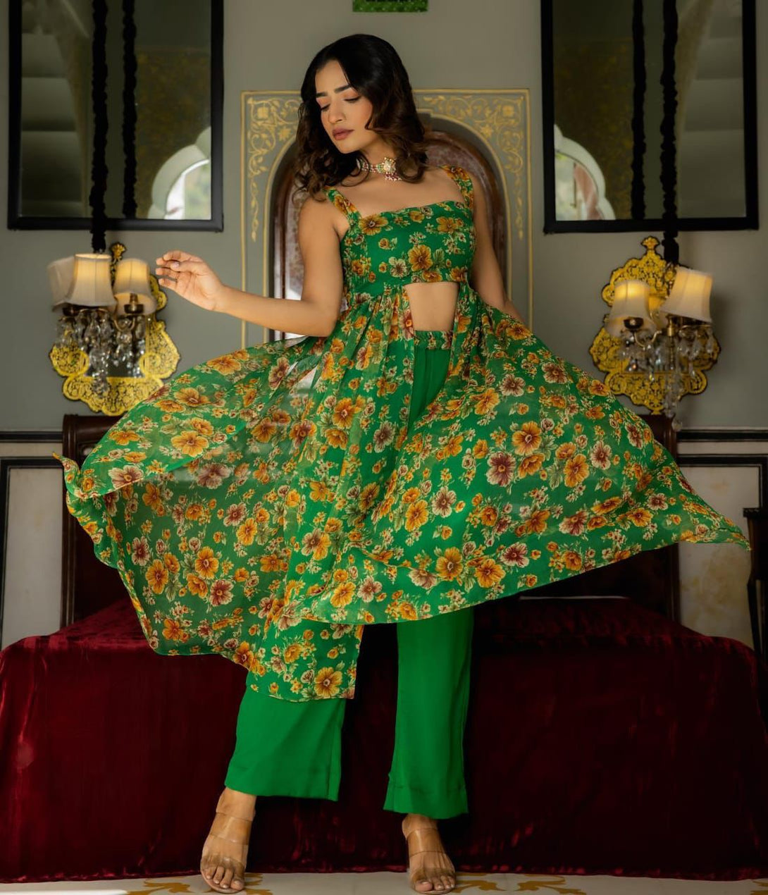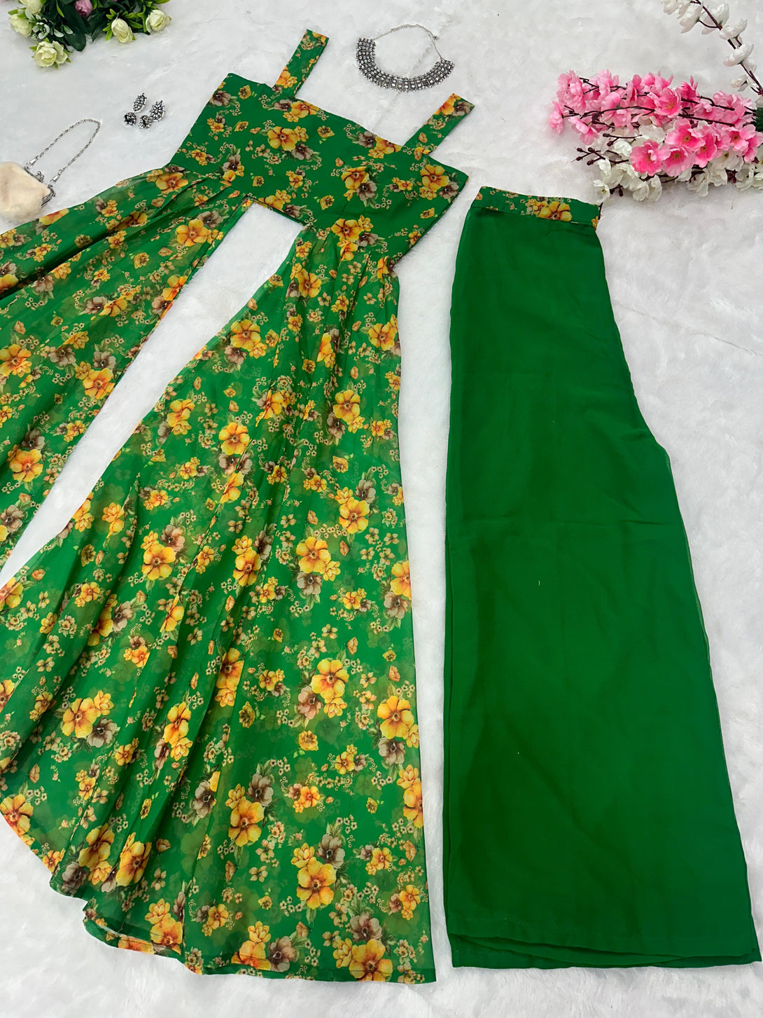 Top - Pure Georgette Digital Printed Front Slit suit with 7 mtr huge Flair
